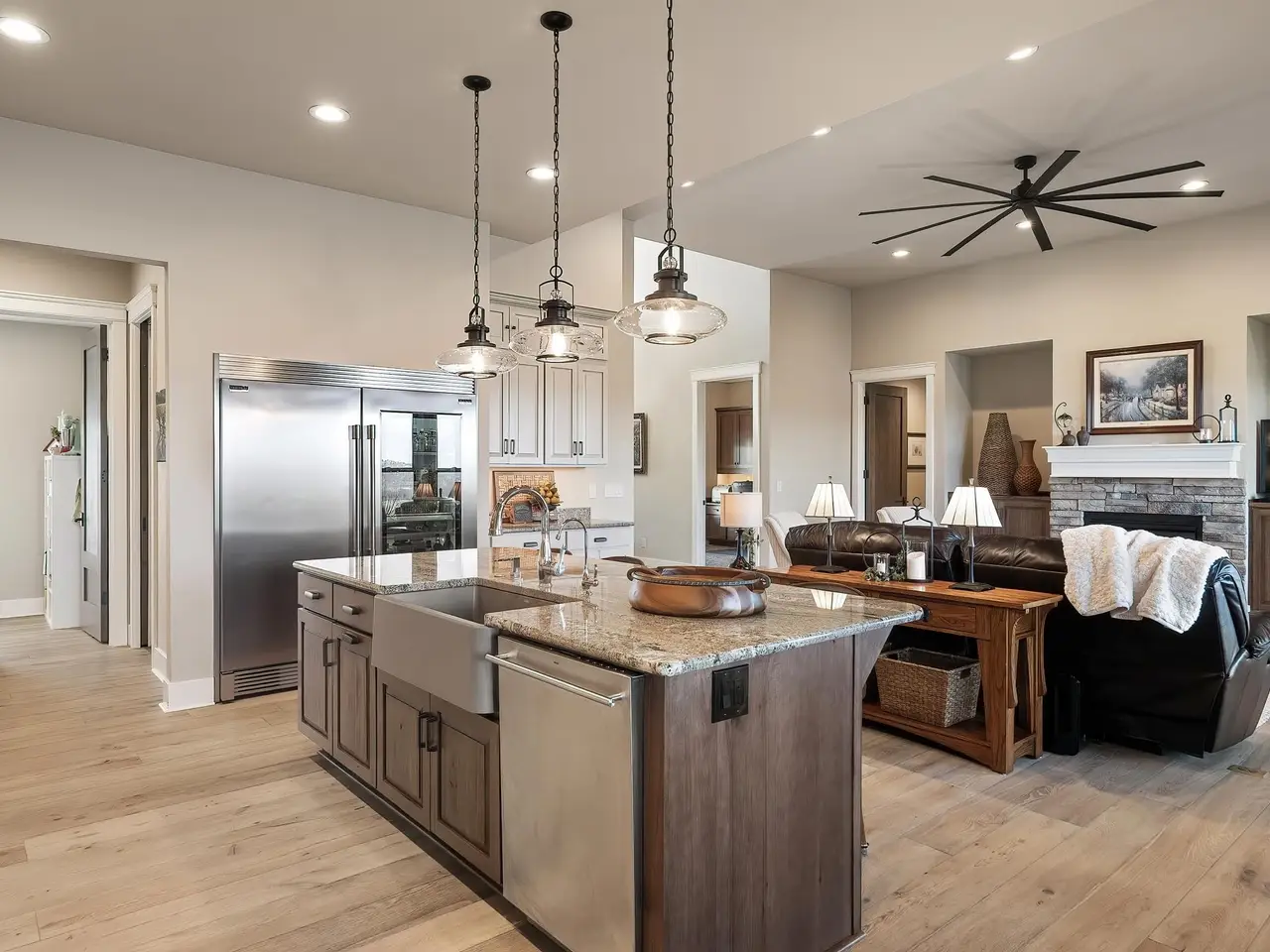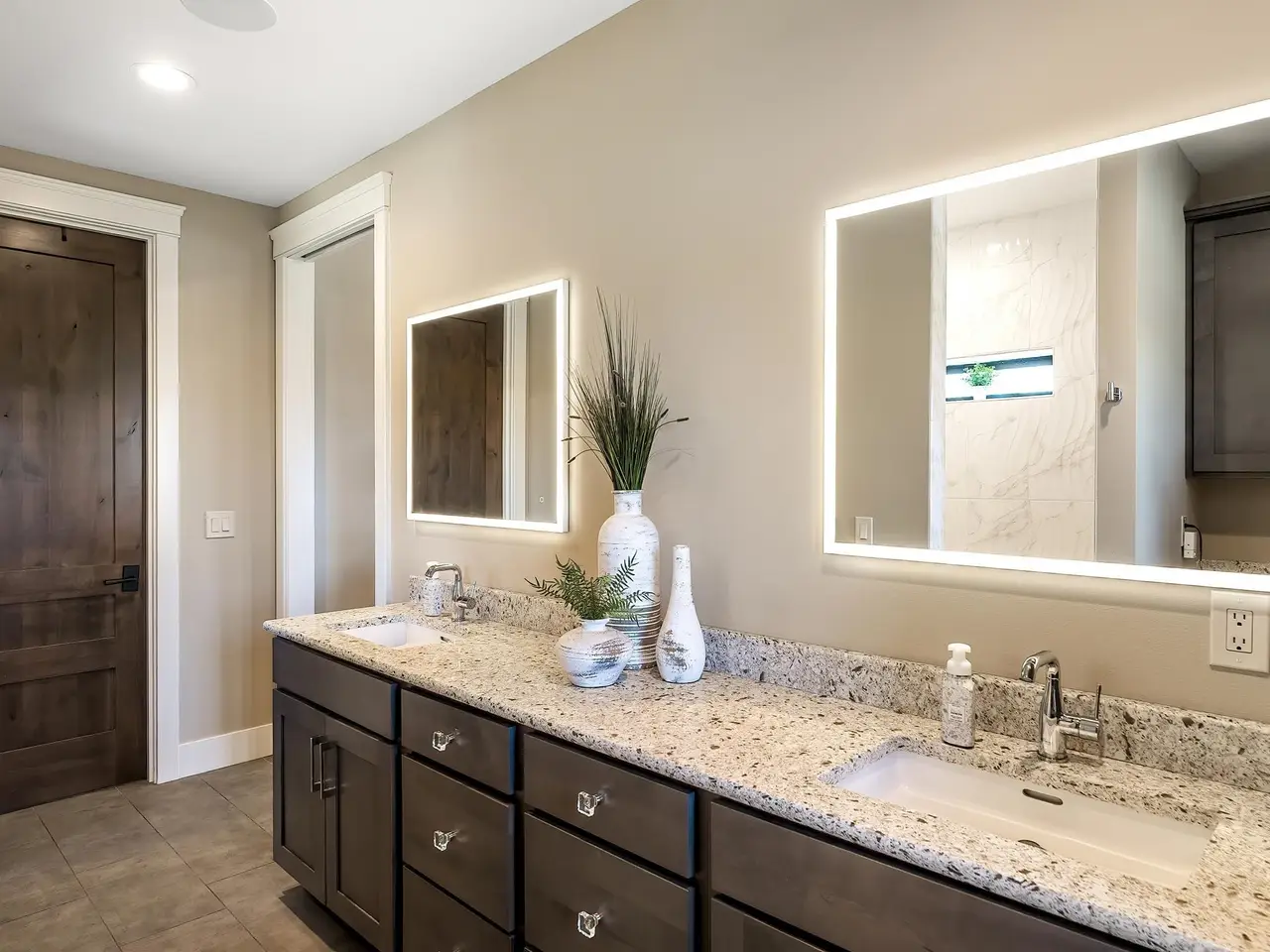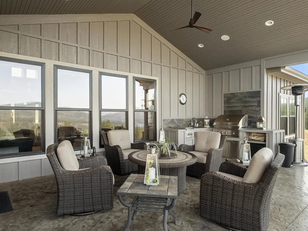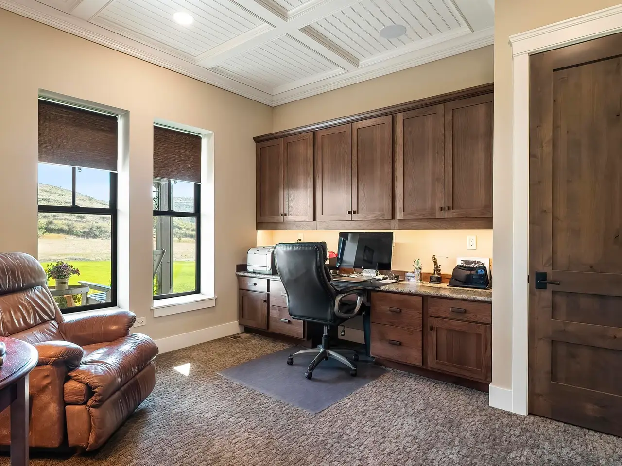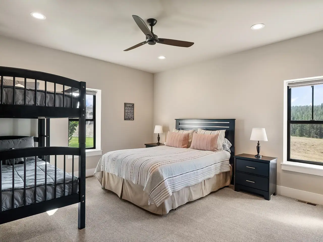 There is so much to love about this stunning property with sweeping views of Lake Spokane & Mt. Spokane. This home features the BEST of everything with 4-bedrooms and 5 bathrooms. Enjoy 1-level living in this thoughtfully designed home with the primary suite and two additional en-suite bedrooms on the main floor, plus a stylish half bath for guests. Upstairs you'll find a spacious 416 sq ft retreat with its own half bath, perfect for a home office, art space, or guest suite. Featuring engineered wood floors, 8-foot knotty alder doors, 10 ft vaulted ceilings, hard surface counters throughout and high-end appliances including a Frigidaire Professional Series refrigerator/freezer, GE Monogram induction cooktop, convection oven/microwave & warming drawer. The chef's kitchen moves outdoors with a 36' built-in DCS barbecue grill, 2-burner gas cooktop & a large covered patio with stamped concrete. An oversized 2-car attached garage is complemented by a massive 40x60 shop w/ a 14-ft center door w/ space for a 35' RV.