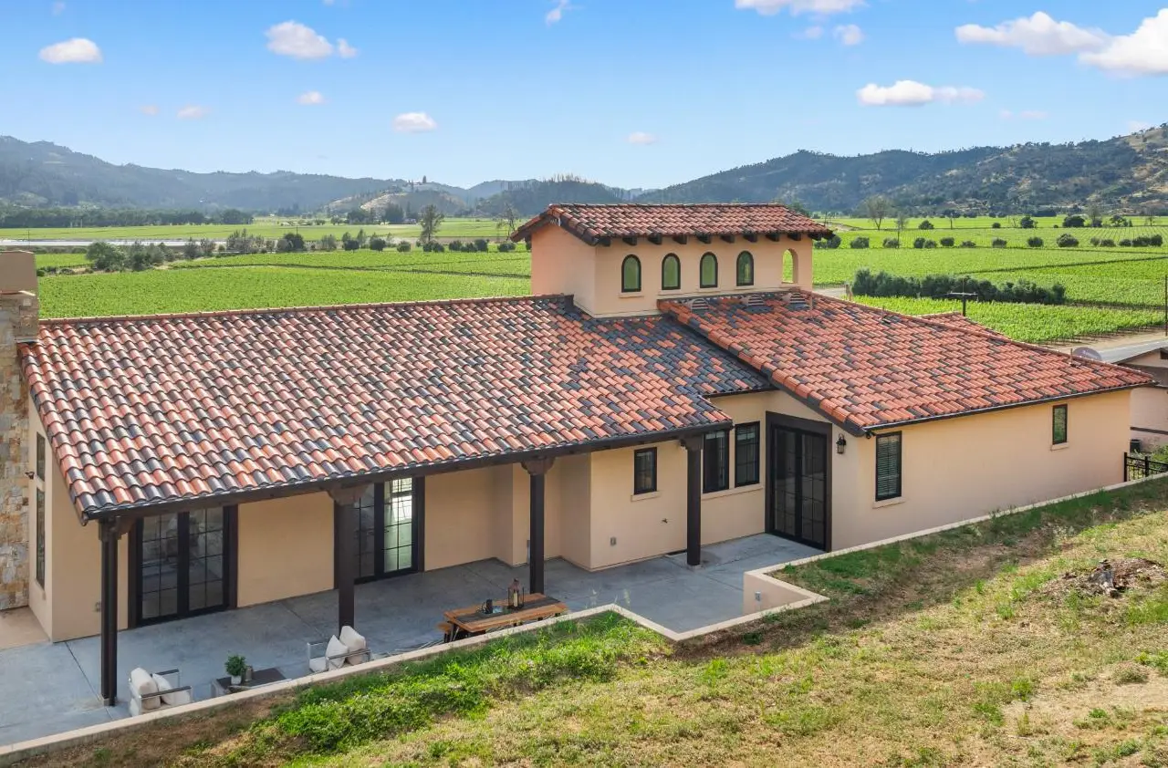 Nestled along the iconic Silverado Trail between St. Helena and Calistoga, this Tuscan-style estate blends old-world charm with modern luxury. Built in 2020 on approximately 4 private acres, the property offers sweeping southwest views over Duckhorn Vineyards and the Mayacamas Mountains beyond. The main residence features three spacious en-suite bedrooms, each showcasing high-end finishes. A spacious great room opens seamlessly to the outdoors through five custom Andersen French doors, perfect for entertaining or relaxation. Additional interior highlights include a dedicated office, a wine room, and a 3-car garage. The expansive terrace invites al fresco dining and lounging in complete privacy. A beautifully updated one-bedroom ADU offers added versatility, complete with a full kitchen, generous living and dining areas, a private yard, and vineyard views. Located just minutes from world-renowned wineries and restaurants, this exceptional property embodies the best of Napa Valley living.