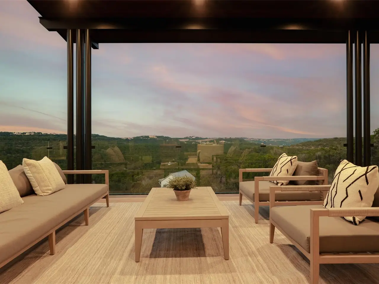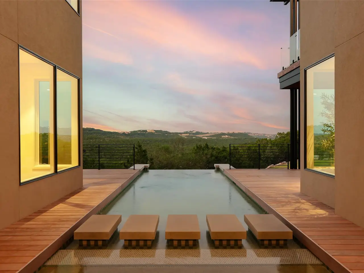 Perched in a tranquil Hill Country setting with sweeping views of the iconic 360 Bridge, 4315 City Park Road is a striking newly completed residence by Next Custom Homes, in partnership with A New Hope Home Builders. Offering 8.1 acres and +/- 5,500 square feet of thoughtfully designed living space, this home is an architectural blend of elegance and functionality, with seamless indoor-outdoor living. Expansive windows frame the natural vistas from nearly every room, while multiple living spaces create flexibility for entertaining, relaxation, and family life. The home features five bedrooms, a study, and a media room. The fifth bedroom can also serve as an at-home gym and is equipped with a sauna, steam shower, and dedicated power for a cold plunge. The chef's kitchen is a showpiece, outfitted with built-in Wolf appliances including a steam oven, wall oven, and coffee system, as well as two dishwashers, a Sub-Zero refrigerator, wine storage, and a freezer with ice maker. The primary suite offers exceptional convenience with a stackable washer/dryer in the closet, complementing the home's main laundry room. Expansive outdoor living is a hallmark of the property, with 1,697 square feet of decking that captures the breathtaking panoramas. The infinity pool and jacuzzi, with WiFi-enabled controls, offer an unparalleled setting to unwind while watching the sun set over Austin's hilltops. A fully equipped kitchenette, outdoor grill, and three-car garage further enhance the home's livability. Every detail--from the outdoor entertaining spaces to the media room and wellness amenities--has been curated for a lifestyle that is both elevated and deeply connected to its serene surroundings. Tax and assessed values are estimates for illustration purposes only. Square footage is per builder plans and any interested party should confirm and not exclusively rely on the information contained herein. All figures should be independently verified.