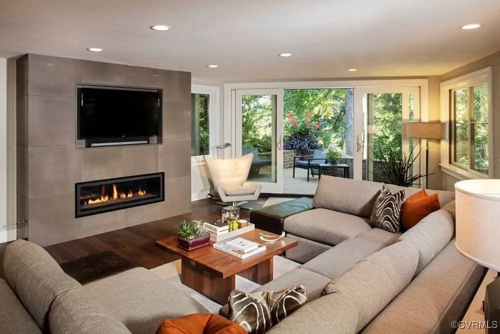 Perched high above Riverside Drive, the Tower House is a striking glass and steel home designed by Richmond architect David Johannas, with interiors reimagined by custom builder Mark Franko. This four-story modern residence offers sweeping views, magazine-worthy design, and a rare connection to nature in the heart of the city. Floor-to-ceiling windows flood the home with natural light, illuminating three bedrooms, two full and two half baths, and elegant living spaces with gas fireplaces. The main-level primary suite is a true retreat with a spa-inspired bath, soaking tub, and built-in TV. A chef's dream kitchen features Wolf and Sub-Zero appliances, quartzite counters, and gorgeous views over a serene rear patio. The lower-level hosts two bedrooms, granite bar with seating, beverage center and wine locker, and a walk-out family room with private access to the hillside gardens. Several outdoor entertaining areas include a dramatic wrap-around deck from the living and dining room, and a graceful stairway of Pennsylvania Bluestone that leads you down to the Buttermilk Trails. The tower's upper floors offer a commanding view of the Carillon, and seasonal views of the James River and downtown skyline. A rear carport and off street parking, complete with multiple attached and detached areas for outdoor storage. A celebrated property, featured in several publications and a stop on the 2024 Historic Garden Tour. This is a rare opportunity to own one of Richmond's architectural treasures. Owner Agent.