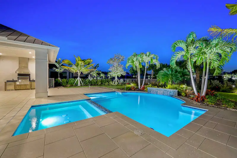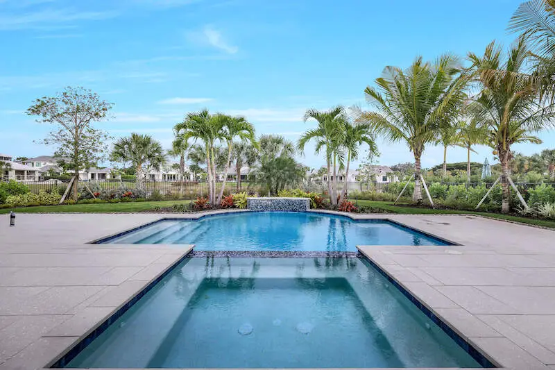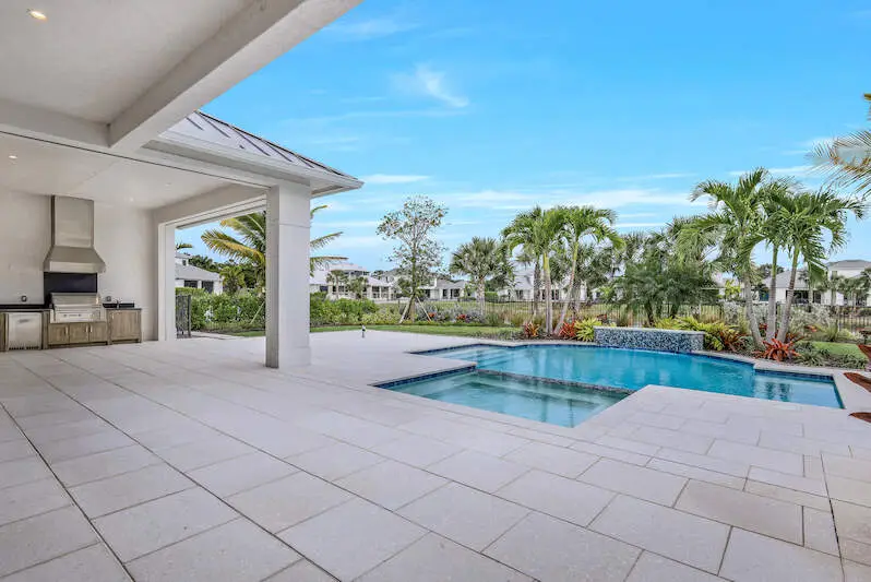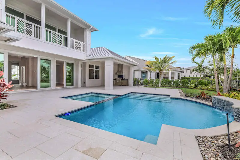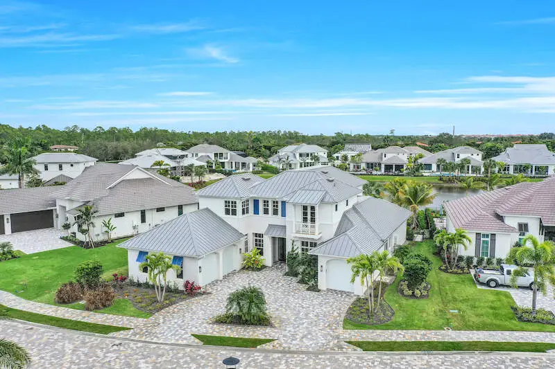 New construction, completed November 2023. The oasis is a four bedroom, den, and loft home with four bathrooms plus two half-baths. Built by Distinctive Communities in the gated North Naples community of The Enclave of Distinction. A private boutique neighborhood of 27 homes, the Oasis is situated on a beautiful SE homesite with a water view. This 4,869 square foot home boasts views as soon as you walk through the front door, through the living room, to the resort-style pool with an outdoor cook center and fire pit. The gourmet-inspired kitchen features Viking appliances, custom wood cabinetry, and Pompeii quartz countertops. It flows into the family room, accented with a gas fireplace. The main suite on the first floor features volume ceilings, a private sitting area, a luxurious bathroom with a freestanding soaking tub, a walk-in shower, dual vanities, and two oversized walk-in closets. Also located on the first floor is a den, en-suite guest bedroom, formal dining room, and butlers pantry. The second floor includes two on-suite guest rooms and a lounge/media room with an open balcony—minutes to shopping, gulf beaches, Mercato, SW FL International Airport, and fine dining.