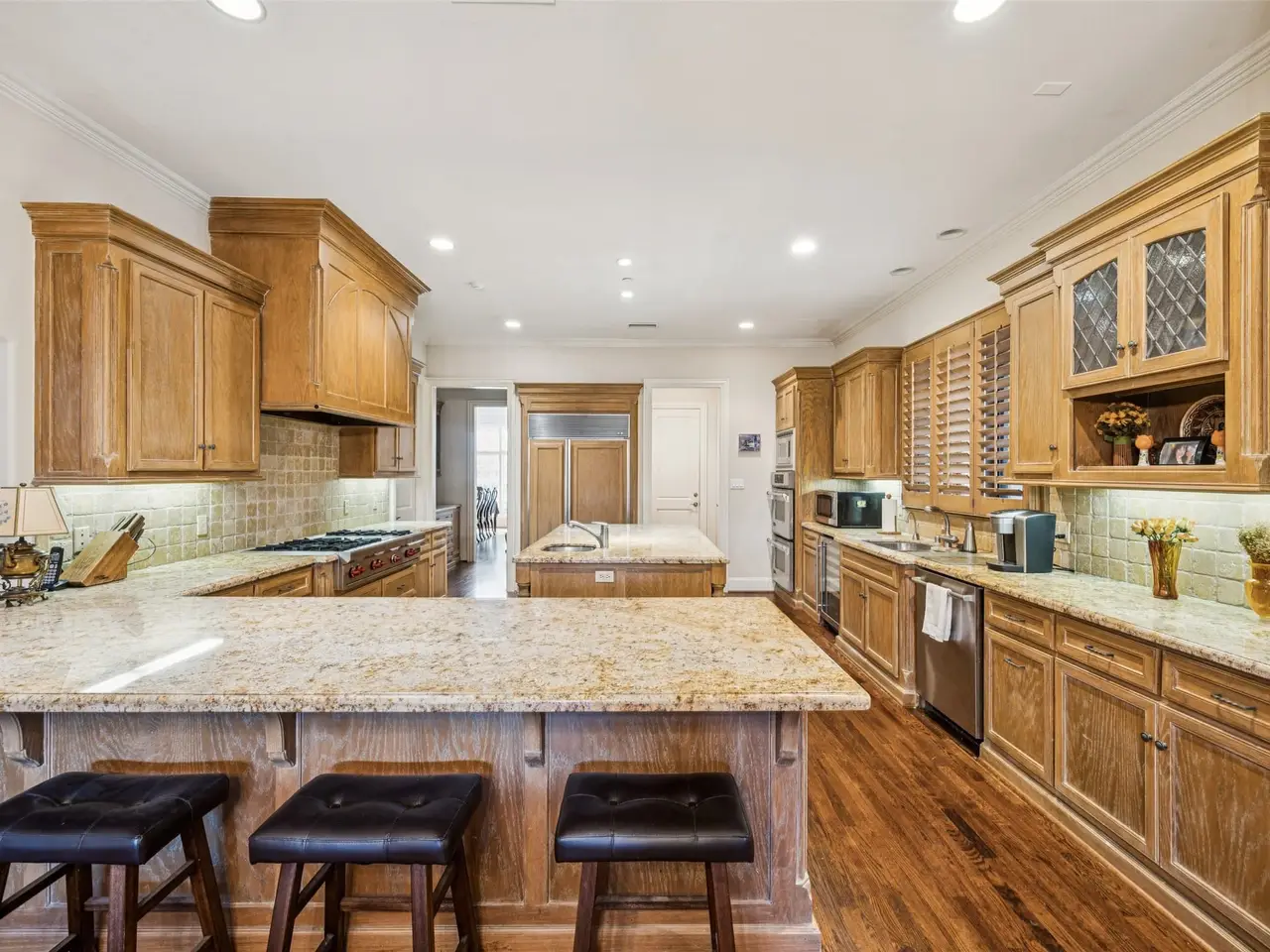Prestigious living on Park Lane in the heart of Preston Hollow. This transitional home reveals warmth & comforting living with its many custom details, & conveniences, ELEVATOR! SECOND full bath and closet in Master Suite.! The high-end kitchen opens to a large family room with vaulted ceilings, overlooking backyard pool & porch with built-in grill & fire pit. Extensive outdoor lighting makes the home shine in the evening. The floor plan is conducive to many different arrangements. Downstairs formal living & dining, study & master suite, High ceilings throughout the upstairs as well. The 4 oversized bedrooms are all En Suite with Large game room, family room, can we turned into a media room, plus 3rd floor Bonus room! Truly a Gem in Preston Hollow, sitting on almost .5 acre. Family & Friends will just enjoy all the amenities of this fine property.