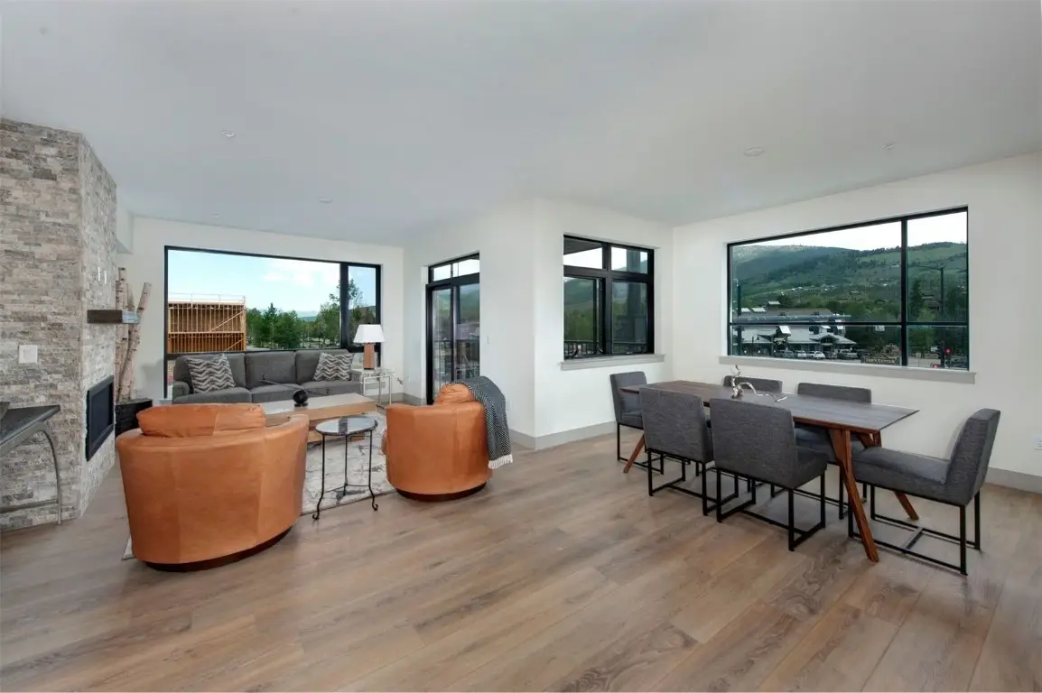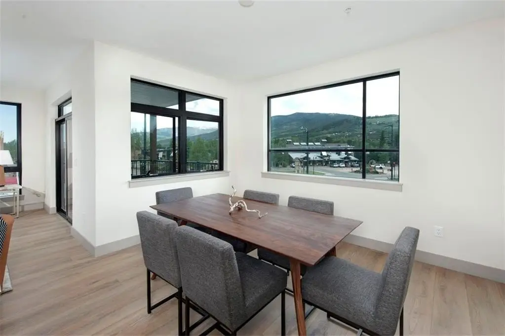 Welcome to Skywalk Flats at 4th Street Crossing. This spacious 3-bedroom / 2-bath offers awe inspiring views of the Williams Fork Mountains and beyond. Enjoy and entertain in the open living along with the private deck. New construction, never occupied residence includes a common area elevator, 2 dedicated parking spaces and a private large lockable storage unit. The community Skydeck overlooks the 4th Street promenade with hot tubs, fire pit, lounge areas and panoramic views. Walk to restaurants and easily access the Blue River and bike path just across the road. Professionally designed with care and intention, every room flows with a cohesive, stylish aesthetic. Short-term rentals are allowed, and for buyers seeking a seamless move-in or investment, a thoughtfully curated furnishings package is available for separate purchase. Buy this turnkey-furnished unit and start renting—or relaxing—right away.