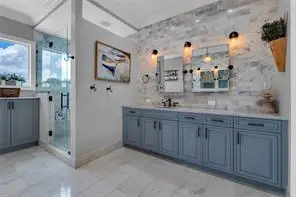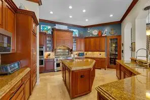 Stunning Home! This house sits on a point lot and has 210' of waterfront in beautiful Lighthouse Point. Deep water, ocean access, NO FIXED BRIDGE. Beautifully updated 6 bedroom, 6.5 bathroom home with a heated salt water pool that includes a lap lane, outdoor kitchen area, artificial turf and 3 car garage, heated salt water pool with a lap lane, outdoor kitchen area, artificial turf. Inside this home the kitchen features beautiful high end appliances with a 6 burner range, two dishwashers, two refrigerators and freezers along with a warming drawer. All bedrooms have beautiful wood flooring. Master bathroom has been completely remodeled. This home also includes a whole-house generator with a dedicated propane tank and so much more.