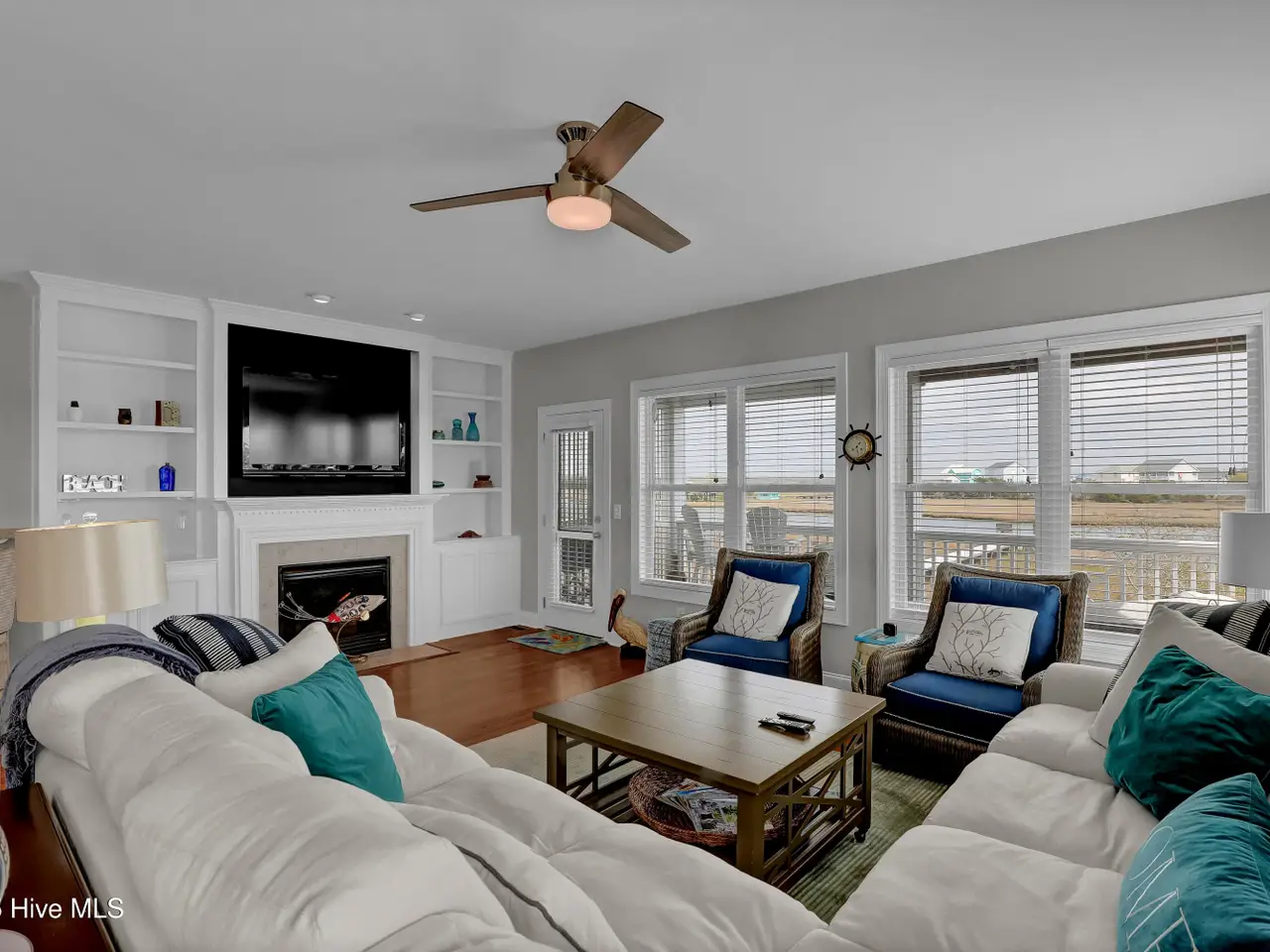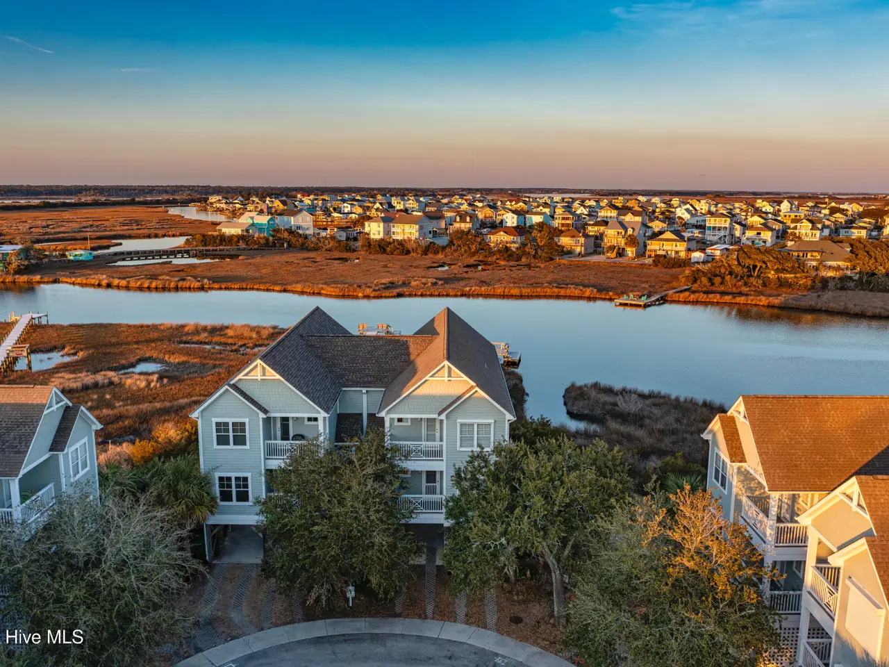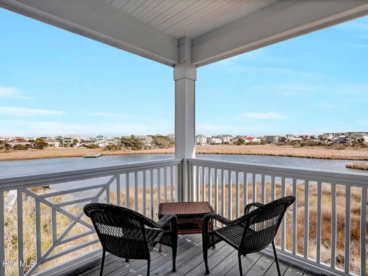 Stunning 4-bedroom, 4-bathroom Sound side waterfront townhome with 2,656 square feet of open living space. Standout features of this home are the incredible views from multiple decks and every room throughout the home, along with the expansive private dock with a spacious sun deck ideal for enjoying sunsets & hosting gatherings by the water. Inside, you'll find luxurious details such as custom living area built-in cabinetry installed in March 2025, 9-ft ceilings, wood flooring, a gas fireplace, and large windows that enhance the natural light. The gourmet kitchen area features granite countertops & bar with seating, stainless steel appliances, and a pantry. The living room and dining room are blended into one, and a large table makes it the perfect place to host. The primary suite is a true sanctuary, with amazing water views from inside & the private balcony. With a walk-in closet and an updated bath complete with a stand-alone tub, tiled shower, and dual vanity, this room is truly exquisite. The additional two upstairs bedrooms include an en-suite bathroom, and the first-floor bedroom/office offers additional versatility.Designed with coastal living in mind, there are new custom hurricane shutters providing peace of mind and protection throughout the year. The home also includes an outdoor shower, and access to a community pool/clubhouse with more fantastic marsh and water views. Located in a cul-de-sac setting, the property is close to public beach accesses, local dining, and shopping, which offers both privacy and convenience. Sold furnished with some exceptions. No short-term rentals allowed.