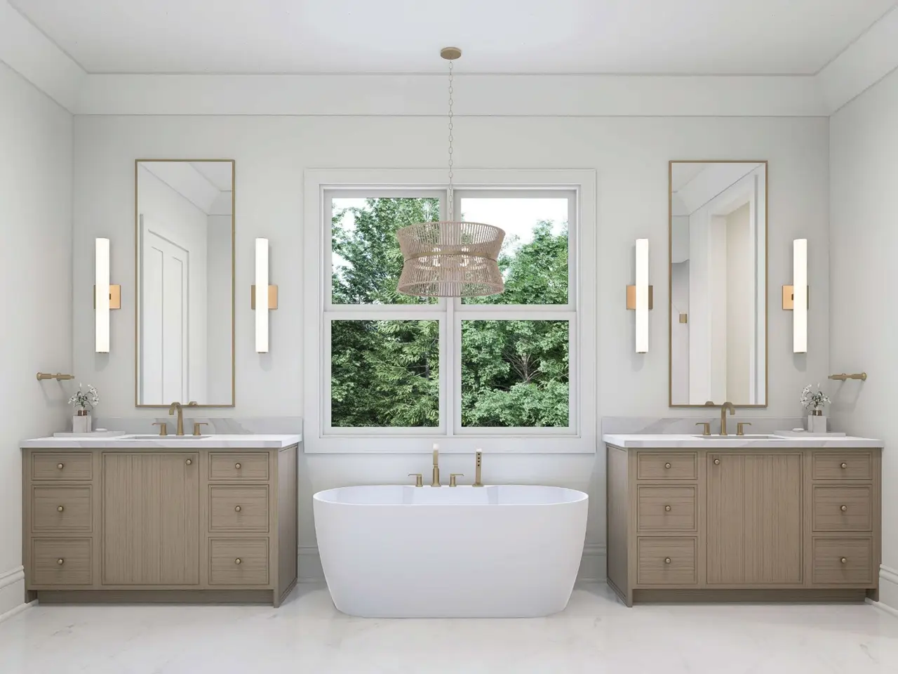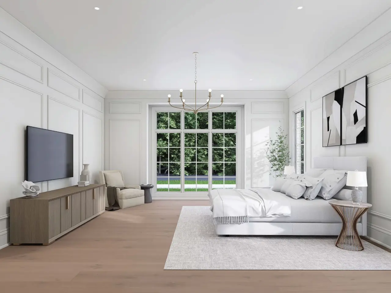 The main level features two spacious bedrooms, including the serene primary suite with floor-to-ceiling windows and a spa-like bath complete with a large walk-in shower, soaking tub, and dual vanities. Three additional bedrooms--each with en suite baths and walk-in closets--are located upstairs, along with a generous bonus room perfect for additional living space or entertaining.