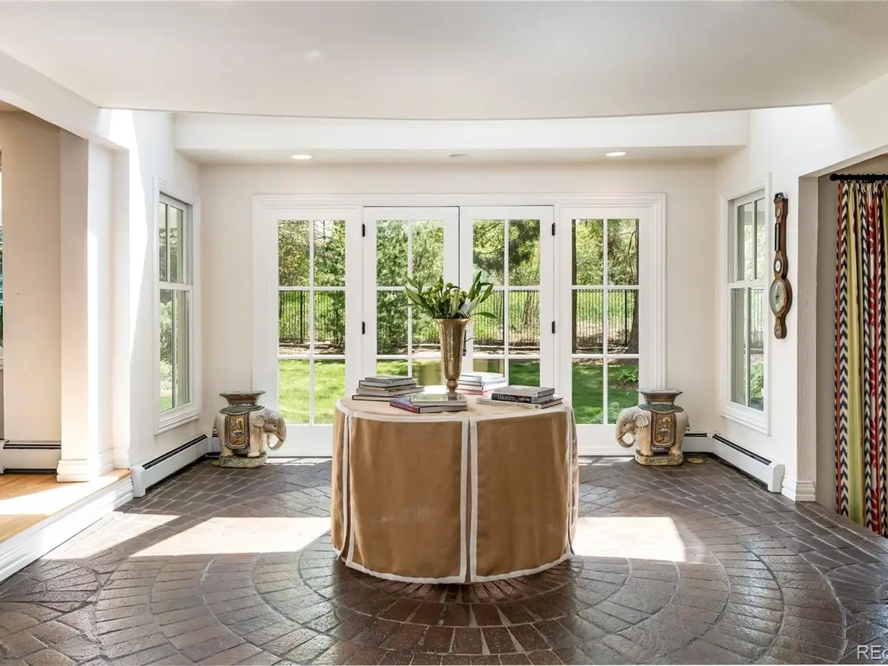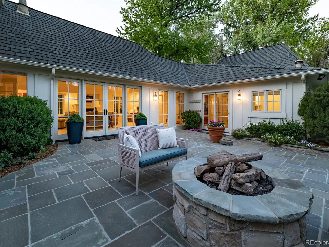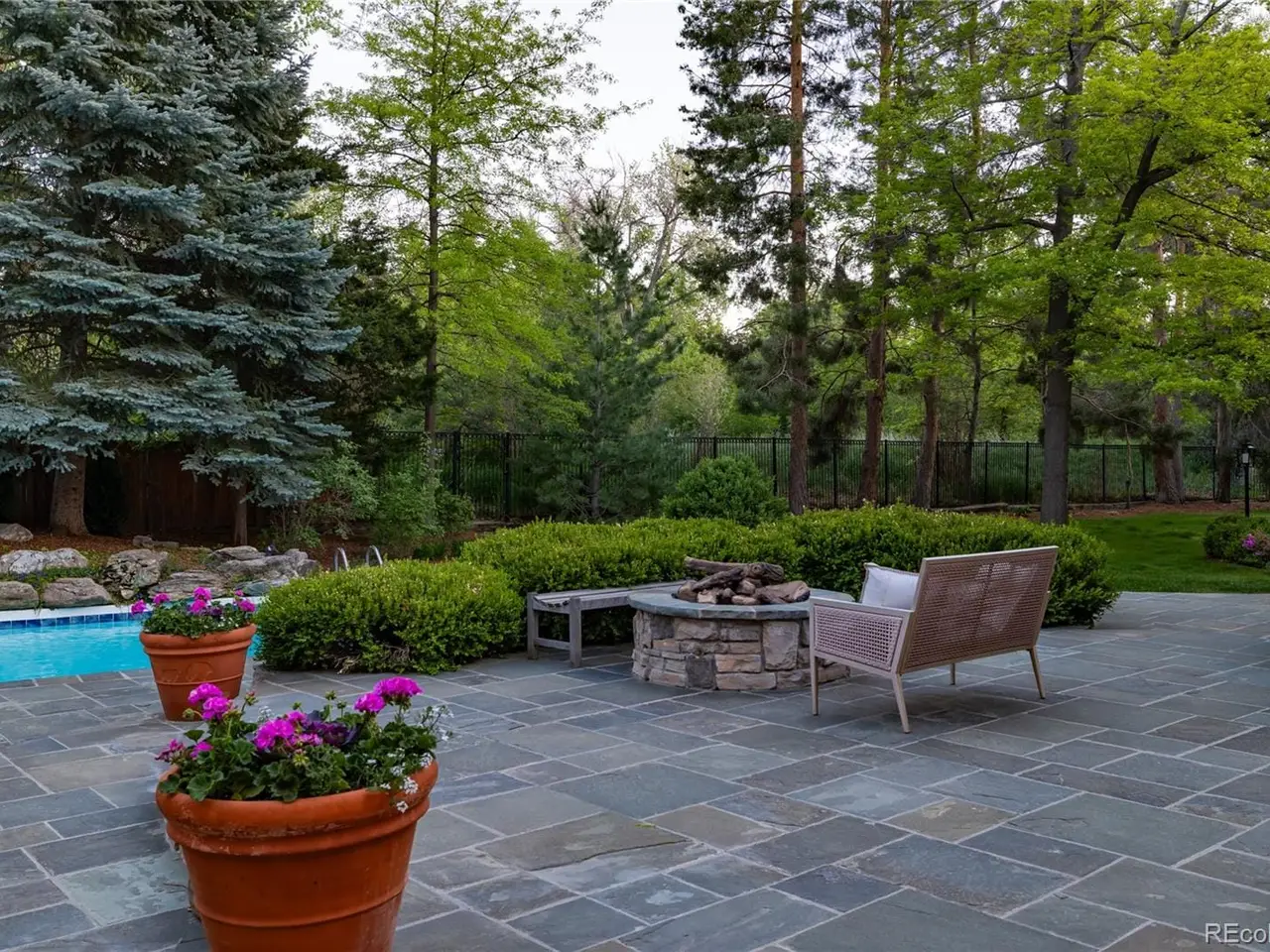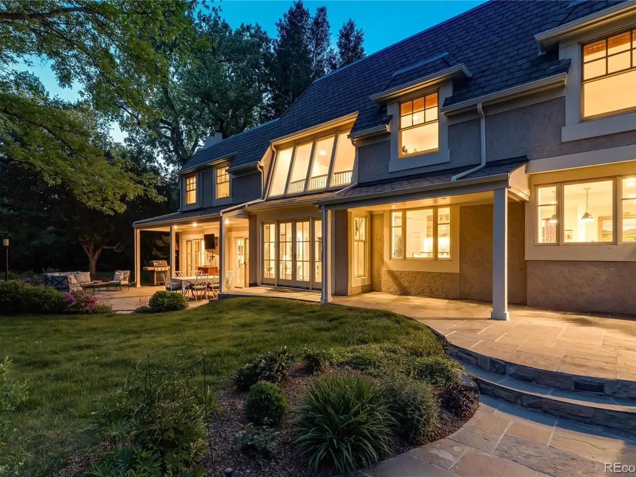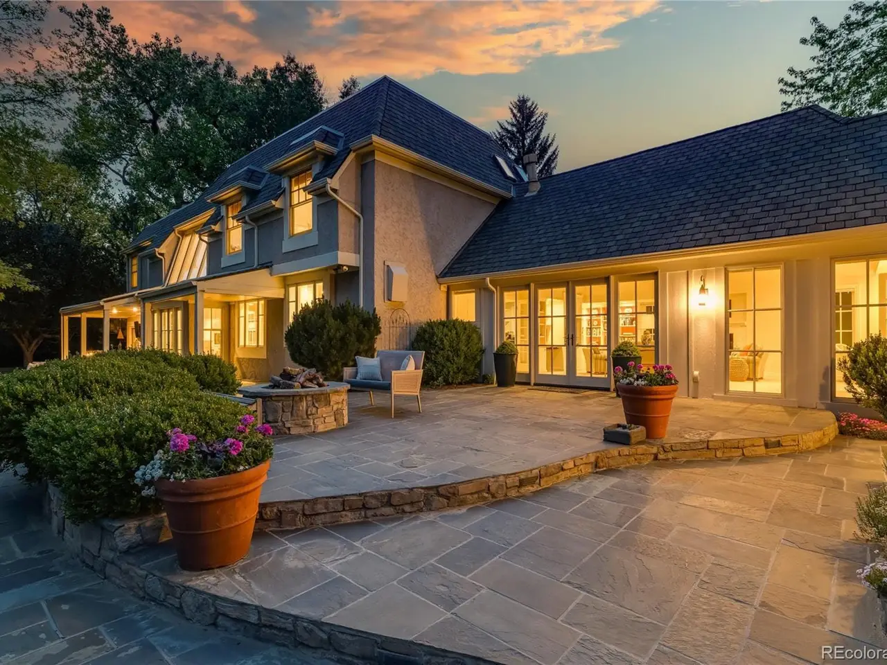 Located on an expansive, verdant one-acre lot, this sophisticated residence offers complete privacy on exclusive Cottonwood Lane. A thoughtful layout enables easy entertaining and great family space. The interior is illuminated by natural light and features hardwood floors, beamed ceilings, plus numerous windows and French doors throughout. A handsome study is found through custom French doors just off the entry foyer, including floor-to-ceiling bookshelves. The spacious country kitchen is equipped with stainless steel Viking and Sub-Zero appliances, catering to culinary enthusiasts. The kitchen opens to a large breakfast room, walk-in pantry, and expansive living room boasting a beautiful fireplace and built-ins. The opposite side of the kitchen adjoins a huge, beamed family room with fireplace, built-in bench and bookshelves. This central area of the home accommodates both casual and formal gatherings seamlessly. Both main living areas feature French doors leading outside to a covered stone patio, providing a tranquil view of the sparkling pool, meticulously maintained lawn and beautifully landscaped gardens. The main floor is completed by a large laundry/mud room, three-quarter bath with easy access to the pool area, and 3-car attached garage. The upper level comprises a private primary suite with luxurious five-piece bath and large walk-in closet, along with an en suite bedroom with three-quarter bath, plus two bedrooms, a three-quarter bath and loft area. Retreat to the lower level with rec room, bedroom, three-quarter bath and storage/mechanical room. This property is the perfect mix of modern comfort and traditional elegance, situated on the High Line Canal and within the Cherry Creek School District, offering a prime location for exceptional Colorado living.