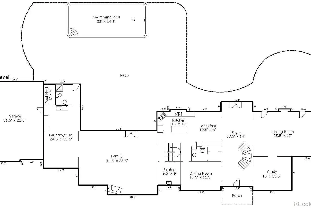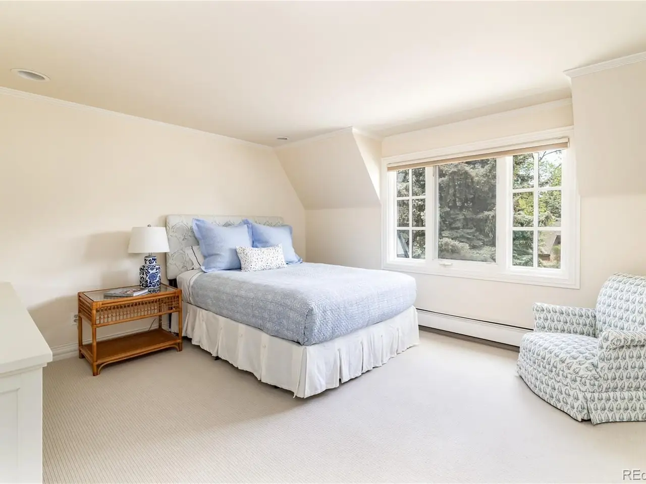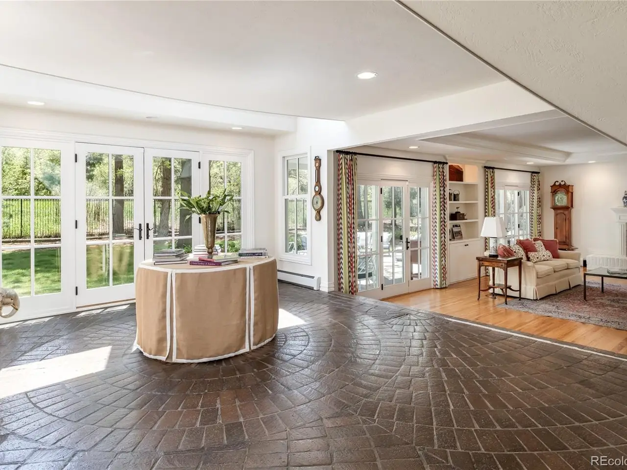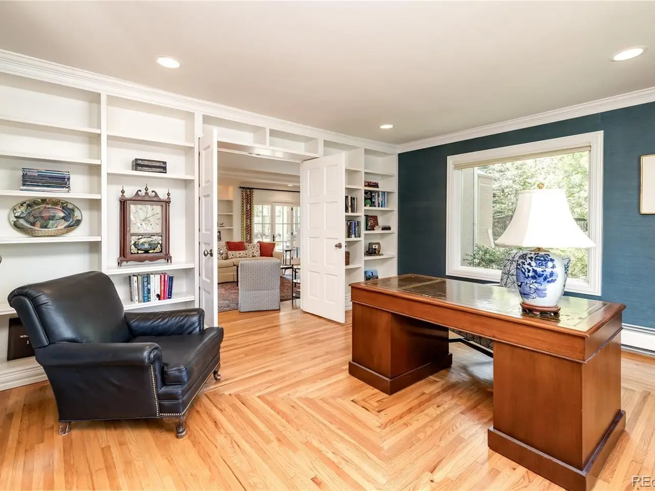 Located on an expansive, verdant one-acre lot, this sophisticated residence offers complete privacy on exclusive Cottonwood Lane. A thoughtful layout enables easy entertaining and great family space. The interior is illuminated by natural light and features hardwood floors, beamed ceilings, plus numerous windows and French doors throughout. A handsome study is found through custom French doors just off the entry foyer, including floor-to-ceiling bookshelves. The spacious country kitchen is equipped with stainless steel Viking and Sub-Zero appliances, catering to culinary enthusiasts. The kitchen opens to a large breakfast room, walk-in pantry, and expansive living room boasting a beautiful fireplace and built-ins. The opposite side of the kitchen adjoins a huge, beamed family room with fireplace, built-in bench and bookshelves. This central area of the home accommodates both casual and formal gatherings seamlessly. Both main living areas feature French doors leading outside to a covered stone patio, providing a tranquil view of the sparkling pool, meticulously maintained lawn and beautifully landscaped gardens. The main floor is completed by a large laundry/mud room, three-quarter bath with easy access to the pool area, and 3-car attached garage. The upper level comprises a private primary suite with luxurious five-piece bath and large walk-in closet, along with an en suite bedroom with three-quarter bath, plus two bedrooms, a three-quarter bath and loft area. Retreat to the lower level with rec room, bedroom, three-quarter bath and storage/mechanical room. This property is the perfect mix of modern comfort and traditional elegance, situated on the High Line Canal and within the Cherry Creek School District, offering a prime location for exceptional Colorado living.