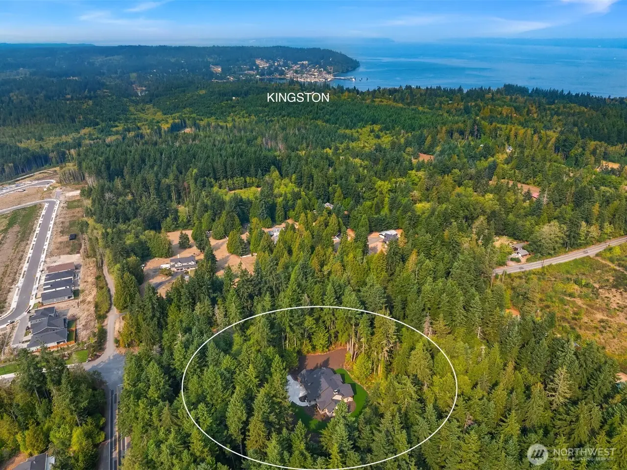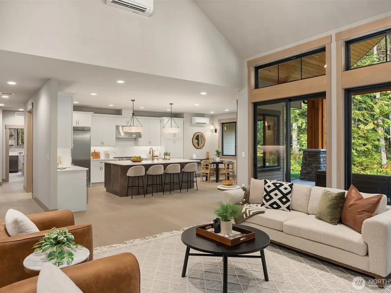 Experience a rare opportunity to own one of Kingston's premier estates. Newly built, this 3,418 sqft custom home rests on 4.75 serene acres less than a mile from White Horse Golf Club and just 8 minutes to the ferry. Soaring ceilings, walls of windows for natural light, and refined cedar, fir, and hemlock details create timeless Northwest elegance. A chef's kitchen with Thermador appliances, dual ovens, and a one-piece quartz island anchors the open living spaces, while the primary suite offers a spa-like retreat with a custom built closets and a luxurious bath. Multiple fireplaces, covered outdoor living, and cutting-edge systems elevate comfort year-round. A statement of design, privacy, and convenience - this is Kingston living redefined.