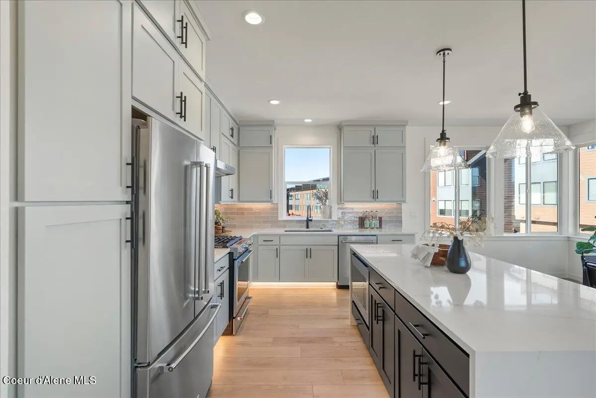 Experience exceptional living in the Atlas Waterfront Carlin Elite home plan. Homes features open-concept great room with expansive views. Bask in the extraordinary waterfront sunsets from your covered balcony overlooking the Spokane river. Kitchen features elegant appointments including a spacious center island with eating bar and Kitchen Aid appliances. Secluded on the third floor, the primary bedroom suite is complemented by serene spa-like primary bath complete with dual-sink vanity, large shower, and a private water closet. An additional bedroom found off the foyer offers a private bath. The Carlin also includes a convenient everyday entry with drop zone. Photos are of the model home. File Photo.