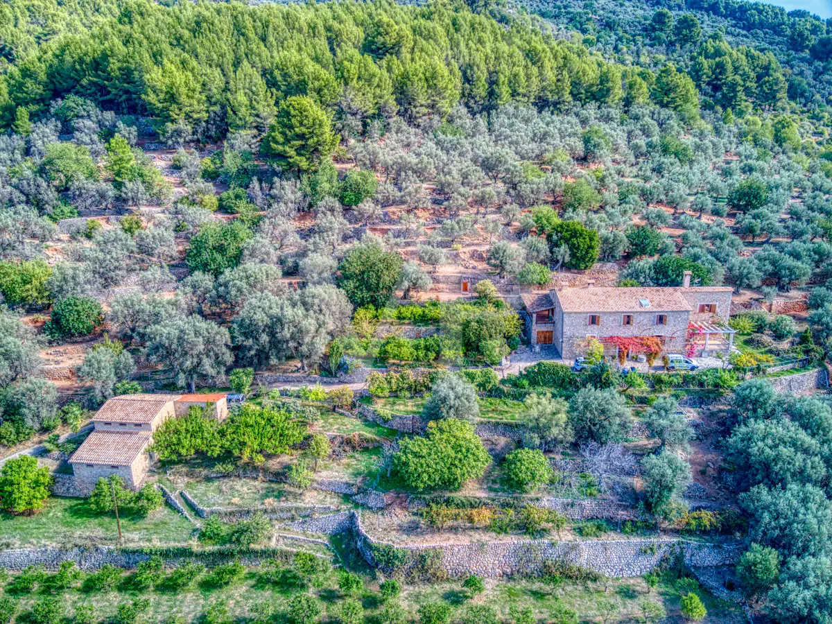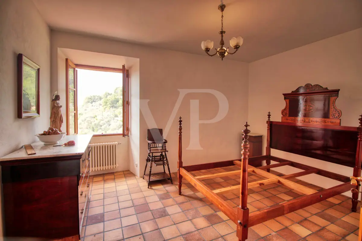 Situated on a fantastic hill at approximately 180 meters altitude, this spectacular property of almost eight hectares with a renovated eighteenth century house is for sale in Soller. A spacious and beautiful hall leads to this interesting property, a spacious living room with fireplace, a large room with a total of about 70 square meters. With direct access to a pleasant terrace of about 30 square meters. Fantastic rustic fitted kitchen open to the dining room with a slight slope and access to a covered terrace of approx. 60 meters with a built-in barbecue, as well as a pantry and cellar. On the upper floor there are five slightly sloping bedrooms and two large bathrooms, one of which is en suite. On the lower floor is the sixth bedroom suite. It also has a large office connected to the hall. In the basement floors it still retains its two old oil tanks with the possibility of reusing or reusing it for a cellar, the engine room as well as a warehouse and a cellar. One car garage in main building, plus large separate garage with space for four cars. Extensive olive grove in production, fruit trees such as 145 orange trees of the Valencia Late variety with drip irrigation, grape vines, apricots, medlars, lemon trees, kiwis, pomegranates... It has solar energy for sanitary water, city lights, oil central heating. With a large "safereig" water tank of 120,000 liters, two own unused water wells thanks to its two water sources that provide the necessary water all year round. Mallorcan shutters made of iron and wood in very good condition. A property that with just a few updates and improvements can become an exclusive property. There is also the possibility to build a swimming pool, thanks to its large plot. The property is in excellent condition and in an excellent location.
