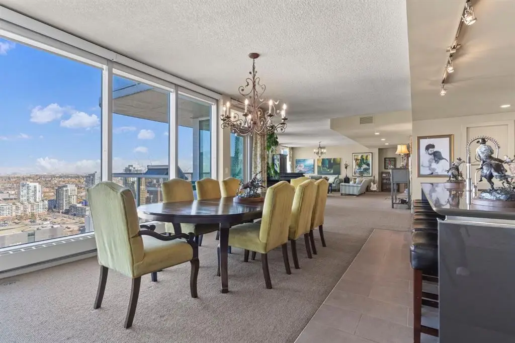 Experience luxury living in this MASSIVE residence in the highly sought after Arriva building. Enjoy complete exclusivity with your own private high-speed elevator. Floor-to-ceiling windows draw in natural light and provide panoramic views of the city and Bow river. This executive home with a sprawling floor plan makes it ideal for entertaining and hosting gatherings. The state-of-the- art kitchen features a full Miele luxury appliance package, and an expansive island that seamlessly opens to the dining room with direct access to one of three balconies where you can take in the iconic views of downtown. Adjacent to the kitchen is an intimate family room with built in cabinetry a warm fireplace and another private balcony. On the opposite side of the kitchen and dining is generous living room providing ample space for gathering and more spectacular views! A private office with built in storage and a powder room are tucked in and away. The primary is a true sanctuary with unmatched views, a balcony overlooking the serene river, an expansive walk-in closet with built ins. This is complete with a spa inspired 5PC ensuite and access to your own home gym, or space for a private dressing room or yoga space. The secondary bedroom has a custom murphy bed, walk in closet, and its own 4PC ensuite providing a private retreat for family or guests. Experience this perfect blend of luxury and privacy. The Arriva building offers 24-hour security and concierge services, two guest suites, a rooftop garden, an owner’s lounge, central A/C, and secure access. Exceptional executive living located in the vibrant Beltline area, steps from Stampede grounds, the new rink, river pathways, restaurants, cafés, central library and LRT access. View the virtual tour or schedule your private showing today!