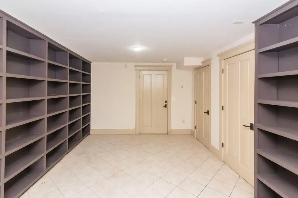 • Custom-built cabinets with beveled glass