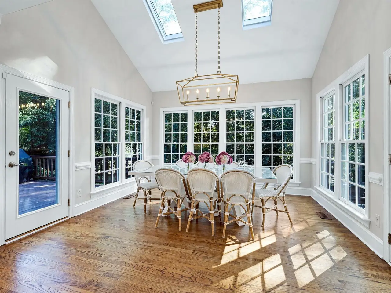 North Ridge classic at its best! This beautiful home was made for easy entertaining with formal areas. Enjoy memorable dinners in the dining room which features a trey ceiling and wainscoting. The living room is perfect for quiet conversations. The updated kitchen is appointed with quartz counters, center island, SS appliances, tile backsplash, gas cooktop, glass front cabinets and a large pantry. It opens to the sunny breakfast room and family room with cozy fireplace There is a rear staircase leading to the second floor bonus room. The primary suite has a huge bedroom, office area, luxury bath with double vanities, whirlpool bath, separate shower and walk in closet. Three additional bedrooms are on the second floor. The walk up attic will meet your storage needs or can be used for future expansion. Enjoy the view of the private backyard from the two decks or the playset . You are minutes from North Ridge Country Club, shopping and dining. It's an easy commute to I-540, downtown Raleigh, North Hills and the airport. This home is waiting for you!