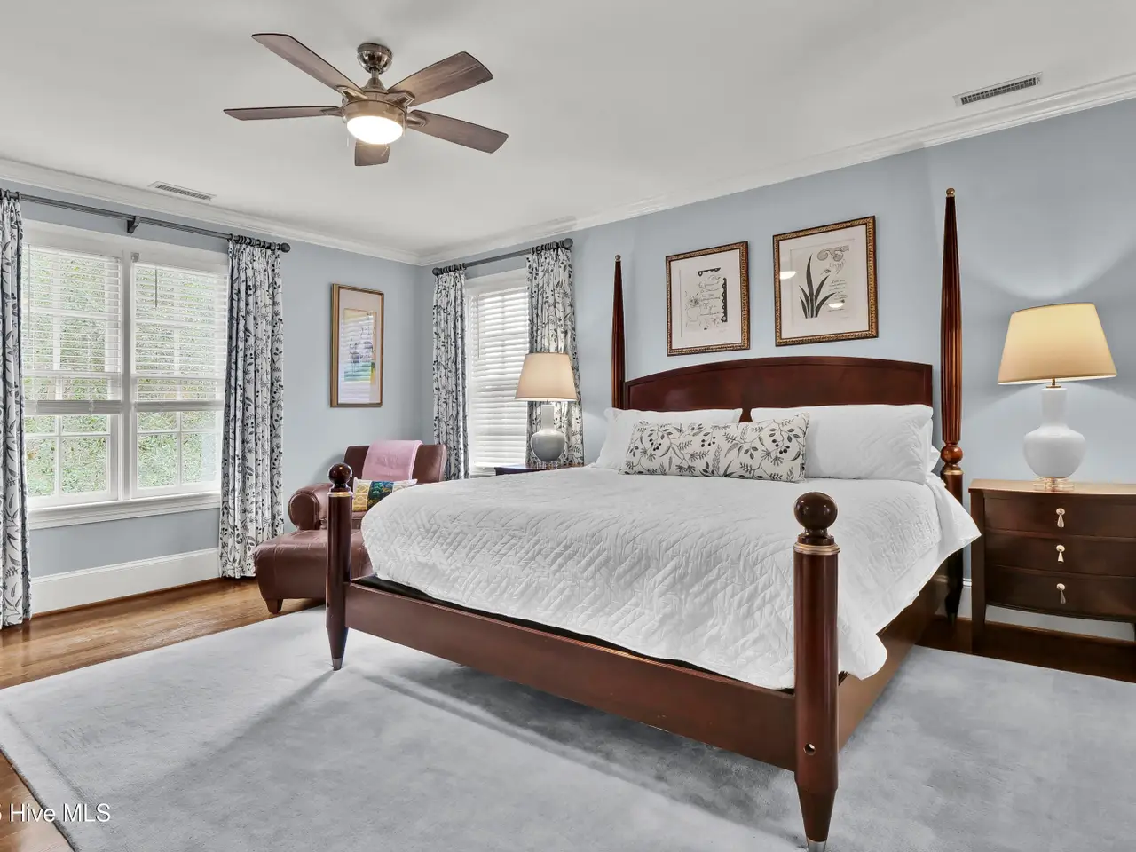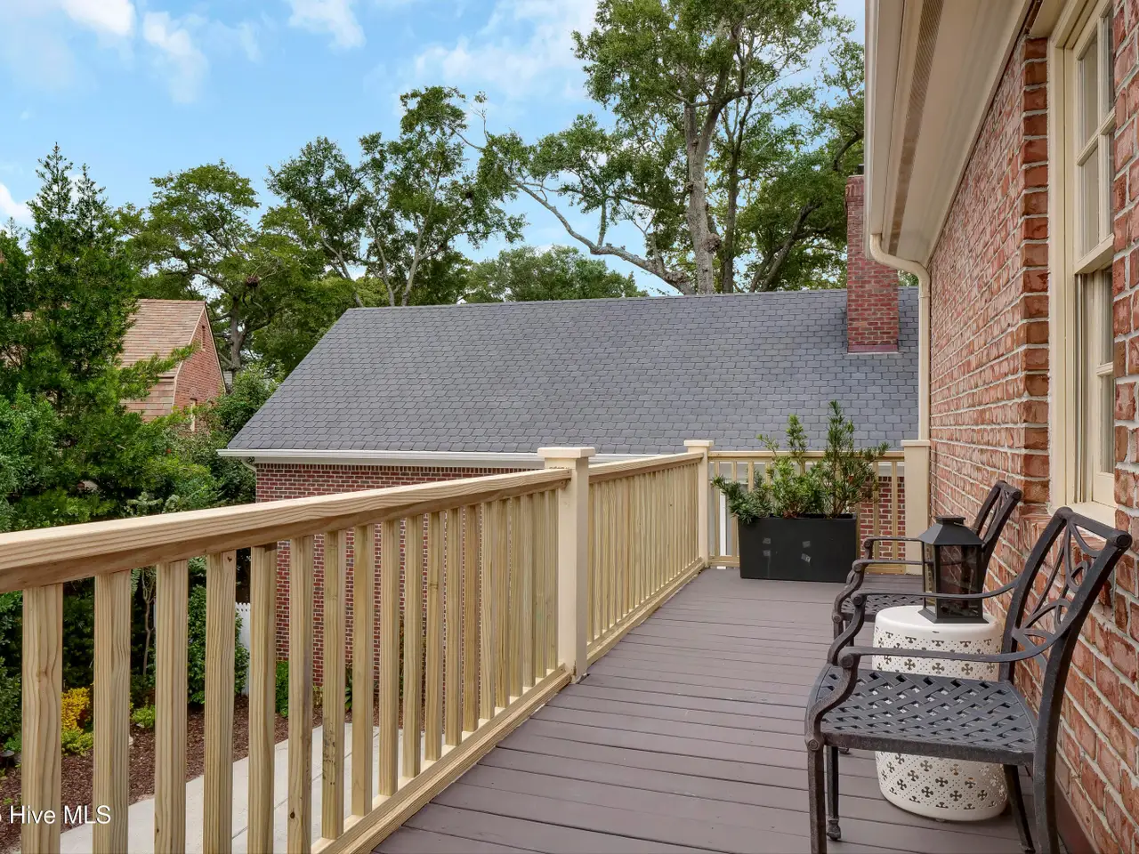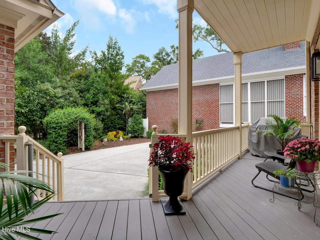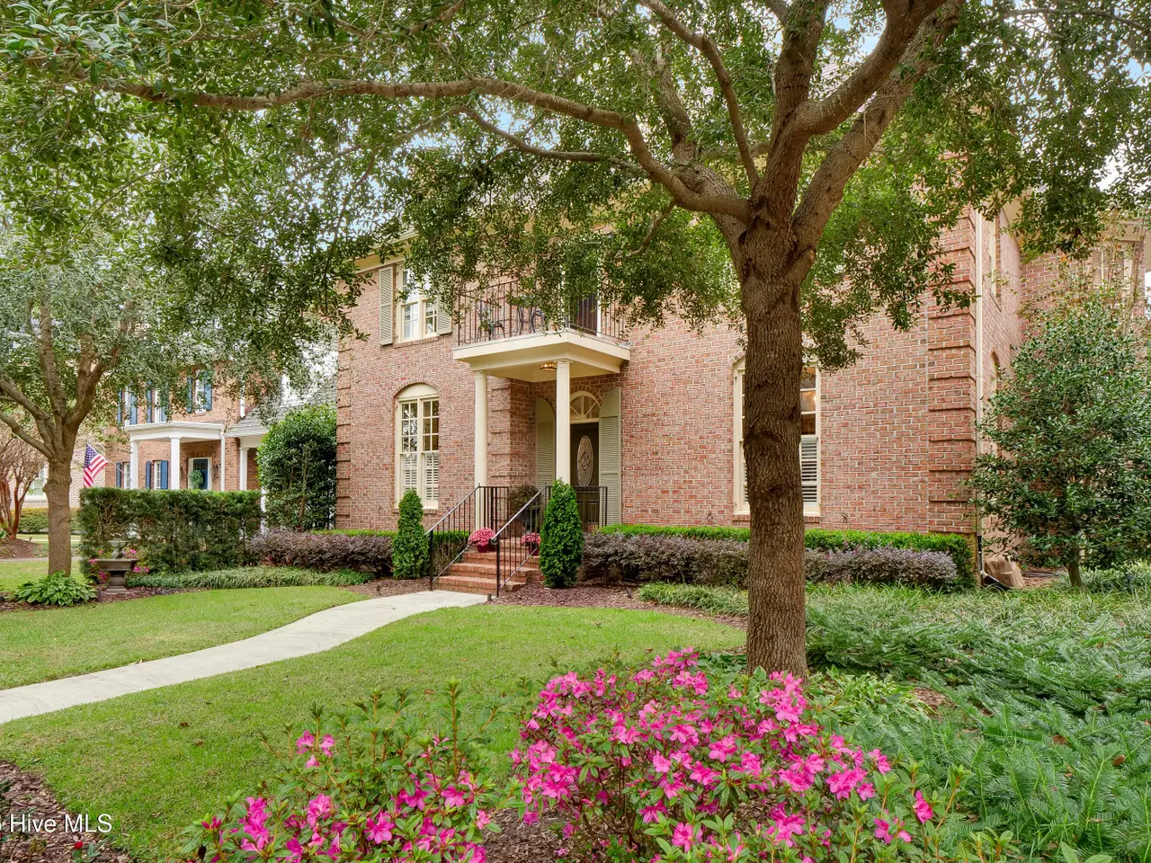 Nothing Could Be Finer... experience the most prestigious drive to your exceptional home as you meander down a tree lined street with views of the ICWW and Dye Golf course. Once you arrive you will experience a well maintained, beautiful Georgian style home located on a peaceful cul de sac street in the Villas of Landfall. This amazing home is in a perfect location to walk to the updated Dye clubhouse or Overlook Park, where you can sit peacefully overlooking the ICWW. Not only is the lifestyle of this home extraordinary, but the home is as well, boasting a craftsman style with soaring high ceilings, 9-foot door openings and attention to detail with extensive crown moldings, chair rail, built ins, butler's pantry, hardwood floors, and so much more! The floor plan is light and airy and offers space for any occasion. Enjoy a white kitchen with all stainless Kitchen Aide appliances, quartz counter tops, marble backsplash, paneled dishwasher and paneled subzero refrigerator. You may retreat to the great room after dinner to enjoy the warmth of the gas fireplace or the entertainment of a movie on your large built in 70'' HDTV, while having a cocktail from the wet bar. Built-in-cabinets and shelves are ideal for showcasing books and family photos. Entertaining is a snap with large dining room flowing into the keeping room with adjoining Butlers Pantry. Then, if you need to get away from everyone, you may escape to the peaceful screened porch, or one of the balconies, or upper sunning deck. The primary suite is spacious featuring dual closets, sitting area and opens to a cozy balcony. Then there is a detached suite over the garage with full bath that is ideal for guests, office or 4th bedroom. There is an abundance of storage in the 700 sq ft unfinished walk-in attic and oversized 2 car garage. This home is truly a pleasure, and the yard is maintained by the HOA to allow you time to enjoy!!!! Stones throw to Wrightsville Beach, Restaurants and Mayfaire.