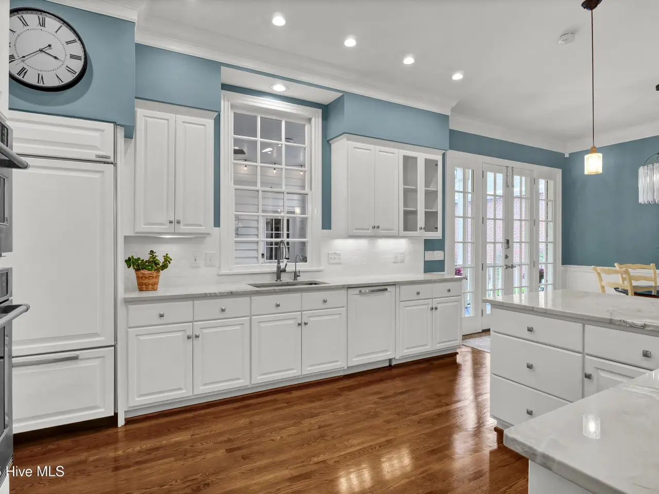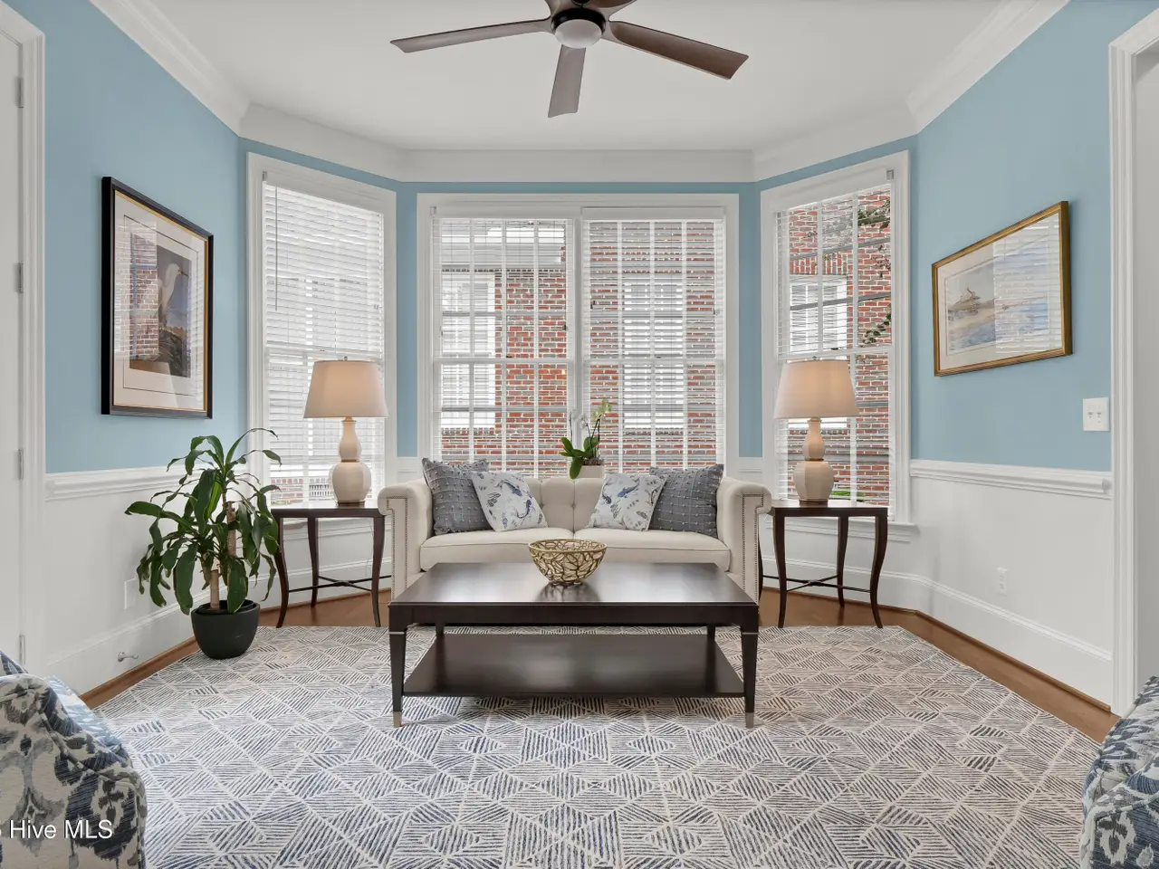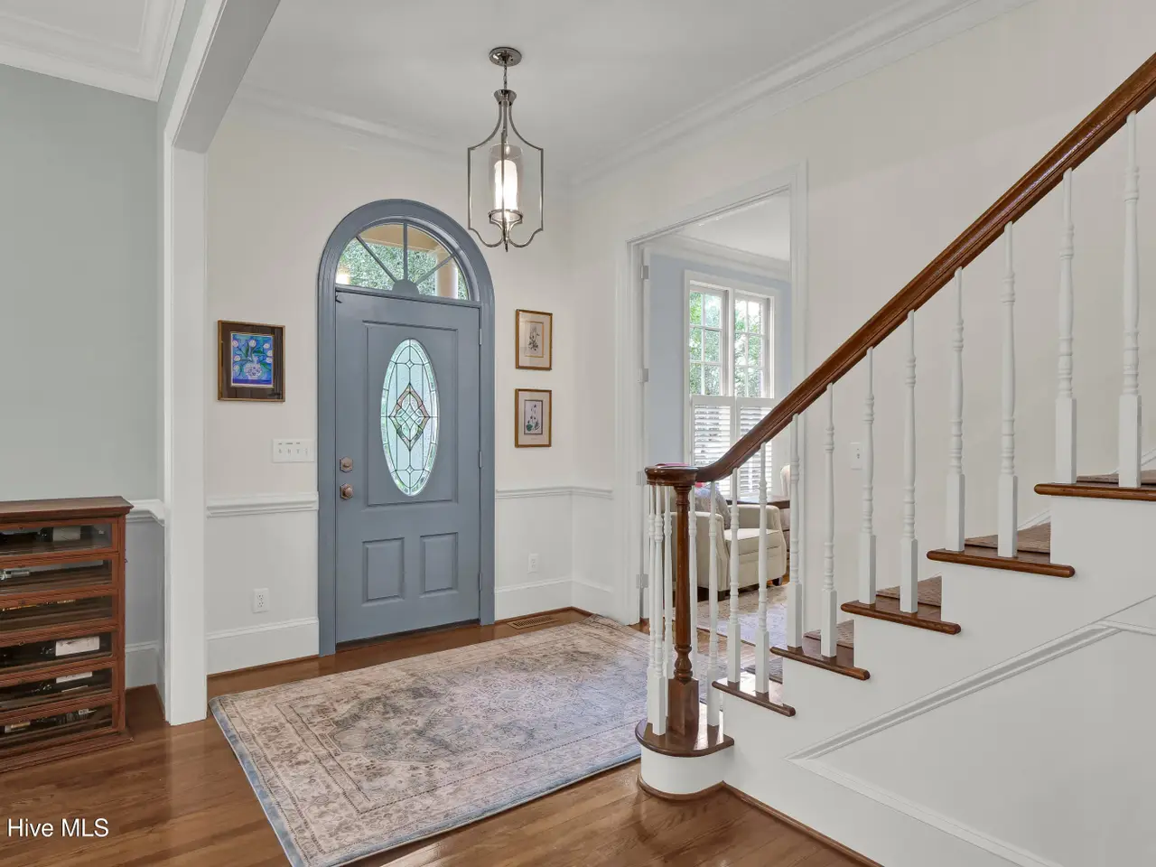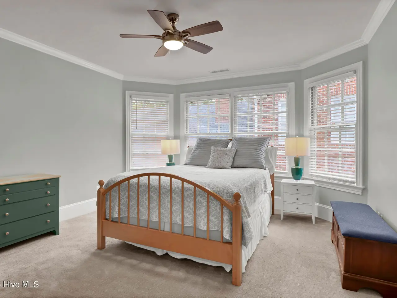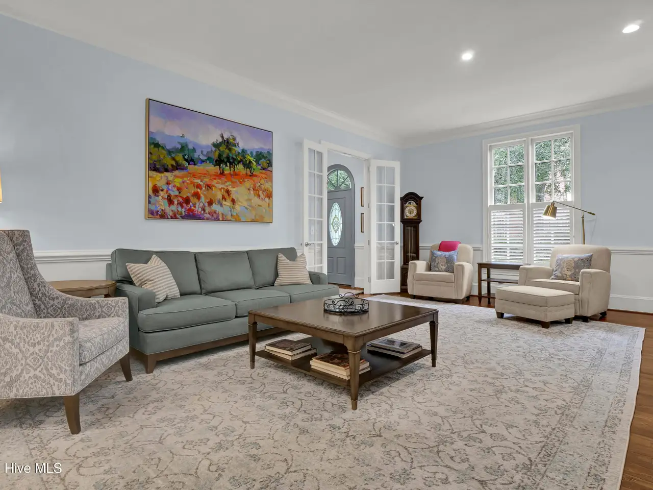 Nothing Could Be Finer... experience the most prestigious drive to your exceptional home as you meander down a tree lined street with views of the ICWW and Dye Golf course. Once you arrive you will experience a well maintained, beautiful Georgian style home located on a peaceful cul de sac street in the Villas of Landfall. This amazing home is in a perfect location to walk to the updated Dye clubhouse or Overlook Park, where you can sit peacefully overlooking the ICWW. Not only is the lifestyle of this home extraordinary, but the home is as well, boasting a craftsman style with soaring high ceilings, 9-foot door openings and attention to detail with extensive crown moldings, chair rail, built ins, butler's pantry, hardwood floors, and so much more! The floor plan is light and airy and offers space for any occasion. Enjoy a white kitchen with all stainless Kitchen Aide appliances, quartz counter tops, marble backsplash, paneled dishwasher and paneled subzero refrigerator. You may retreat to the great room after dinner to enjoy the warmth of the gas fireplace or the entertainment of a movie on your large built in 70'' HDTV, while having a cocktail from the wet bar. Built-in-cabinets and shelves are ideal for showcasing books and family photos. Entertaining is a snap with large dining room flowing into the keeping room with adjoining Butlers Pantry. Then, if you need to get away from everyone, you may escape to the peaceful screened porch, or one of the balconies, or upper sunning deck. The primary suite is spacious featuring dual closets, sitting area and opens to a cozy balcony. Then there is a detached suite over the garage with full bath that is ideal for guests, office or 4th bedroom. There is an abundance of storage in the 700 sq ft unfinished walk-in attic and oversized 2 car garage. This home is truly a pleasure, and the yard is maintained by the HOA to allow you time to enjoy!!!! Stones throw to Wrightsville Beach, Restaurants and Mayfaire.
