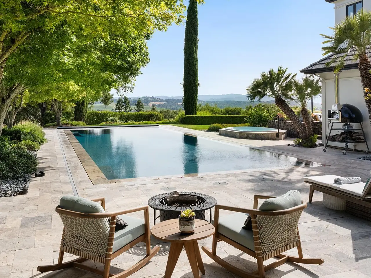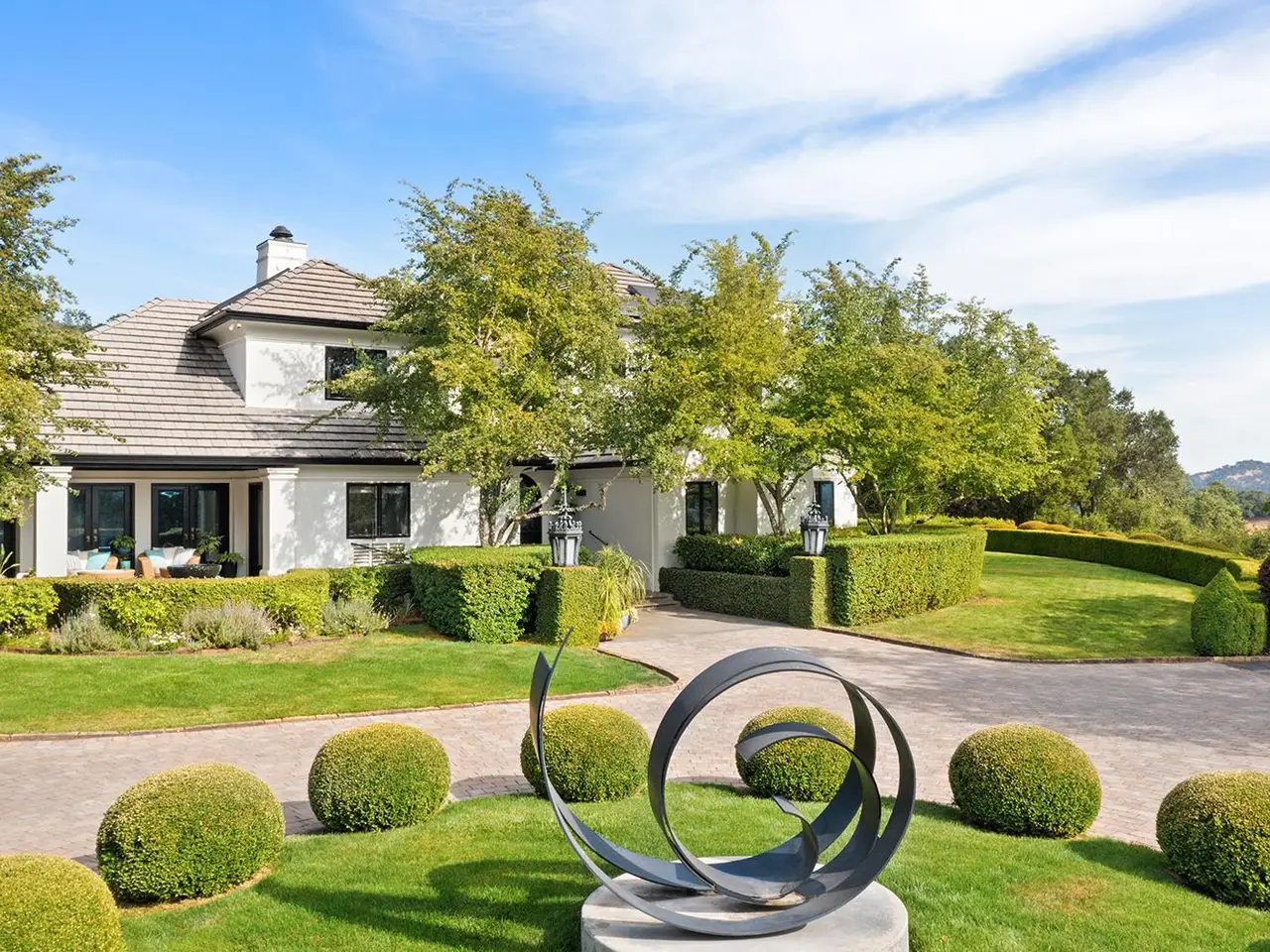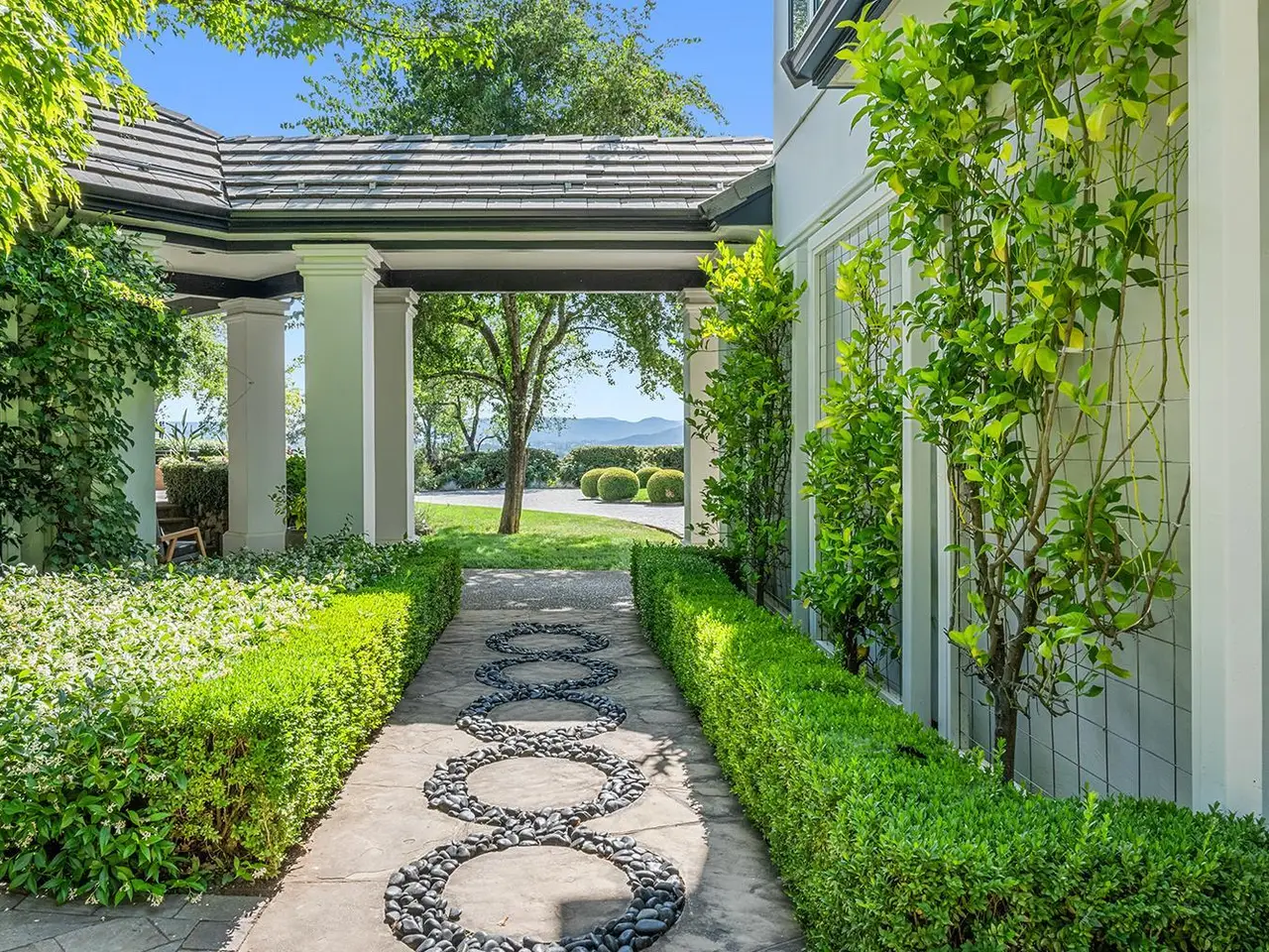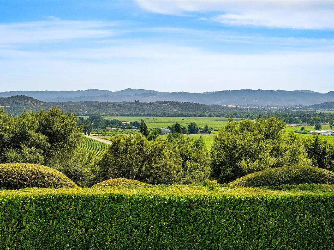 Welcome to 4395 Pine Flat Road, an elegant Healdsburg estate offering some of the most breathtaking views in Sonoma County. Just minutes from downtown yet worlds away, this extraordinary property blends luxury, comfort, and resort-style amenities on 10-plus mostly usable acres. The main residence consists of a four-bedroom, five-bathroom home is designed for both entertaining and everyday living. High ceilings, rich wood floors, and expansive windows frame vineyard and mountain vistas at every turn. Highlights include a Chef's kitchen with bar seating and seamless flow to the outdoor dining pavilion, formal dining room and multiple living spaces including a family room, library/office, gym, and wine cellar, main-level suite perfect for guests or multi-generational living, upstairs primary suite with private balcony, sitting area, and generous storage. A spacious detached studio offers flexible use for guests or extended family. Its outdoor entertainment area, complete with fireplace, is ideal for gatherings under the stars. This estate was made for relaxation and play, featuring a sparkling pool and hot tub, tennis court and bocce court, outdoor kitchen and vineyard-view dining, orchard, rose gardens, and raised garden beds, serene spots for birdwatching or simply doing nothing at all.
