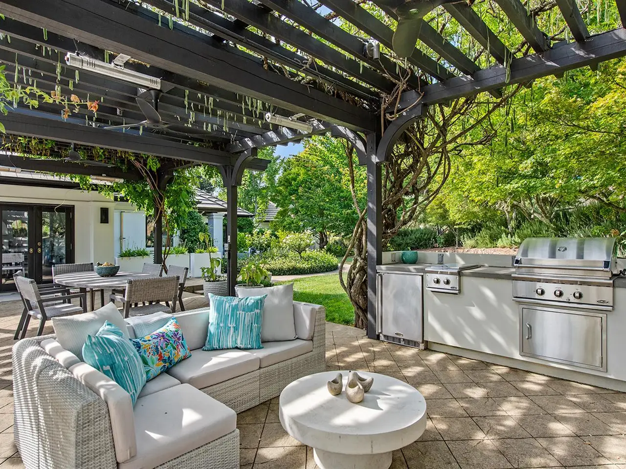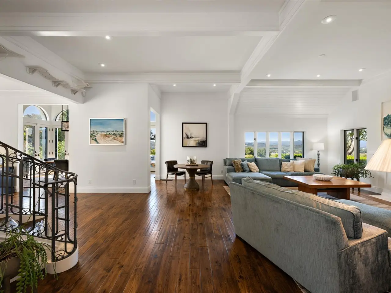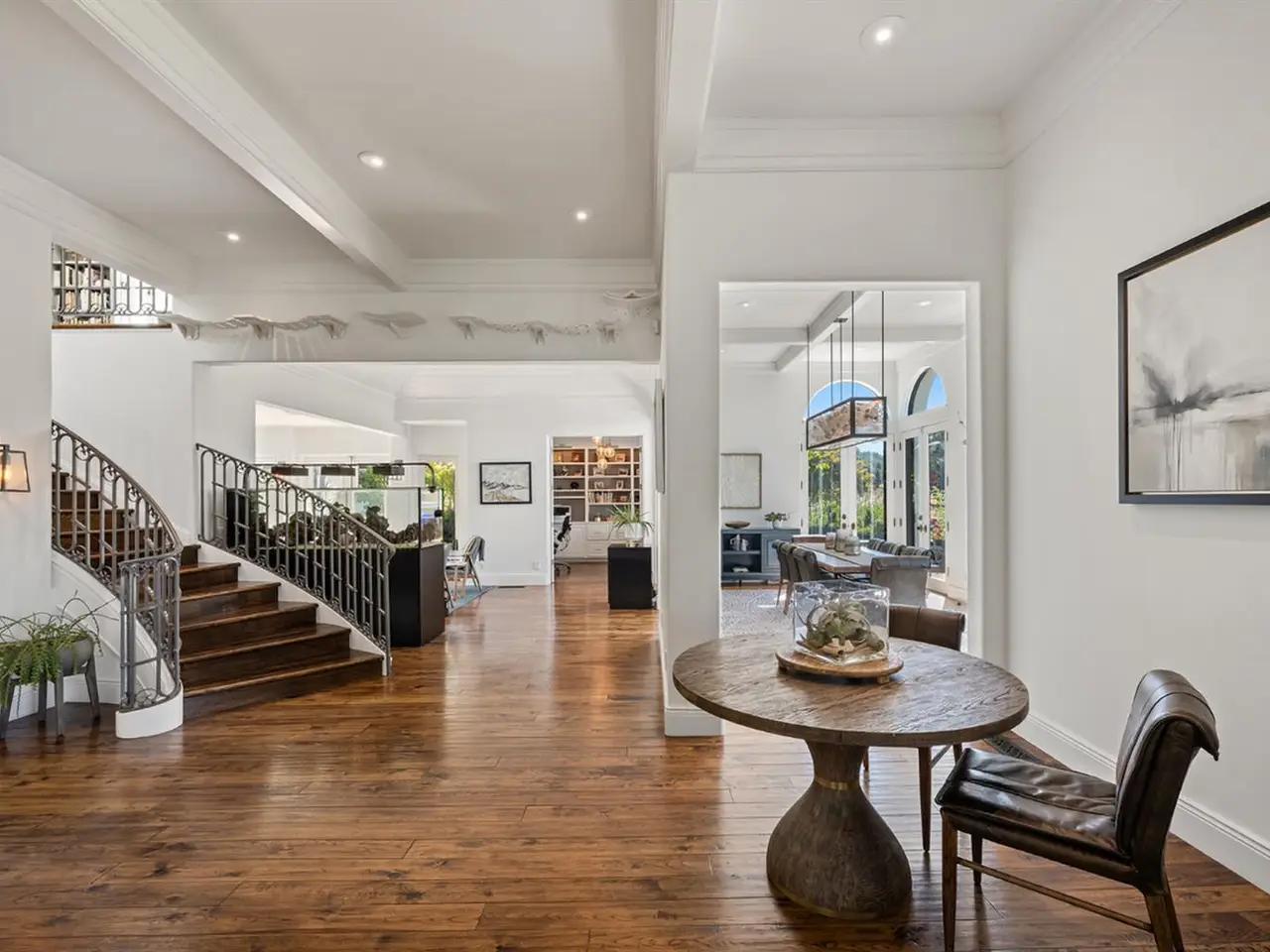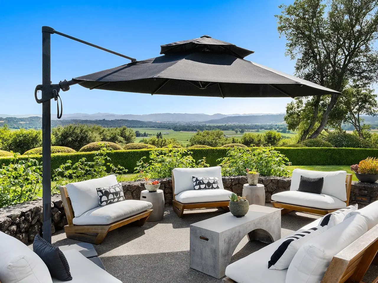 Welcome to 4395 Pine Flat Road, an elegant Healdsburg estate offering some of the most breathtaking views in Sonoma County. Just minutes from downtown yet worlds away, this extraordinary property blends luxury, comfort, and resort-style amenities on 10-plus mostly usable acres. The main residence consists of a four-bedroom, five-bathroom home is designed for both entertaining and everyday living. High ceilings, rich wood floors, and expansive windows frame vineyard and mountain vistas at every turn. Highlights include a Chef's kitchen with bar seating and seamless flow to the outdoor dining pavilion, formal dining room and multiple living spaces including a family room, library/office, gym, and wine cellar, main-level suite perfect for guests or multi-generational living, upstairs primary suite with private balcony, sitting area, and generous storage. A spacious detached studio offers flexible use for guests or extended family. Its outdoor entertainment area, complete with fireplace, is ideal for gatherings under the stars. This estate was made for relaxation and play, featuring a sparkling pool and hot tub, tennis court and bocce court, outdoor kitchen and vineyard-view dining, orchard, rose gardens, and raised garden beds, serene spots for birdwatching or simply doing nothing at all.