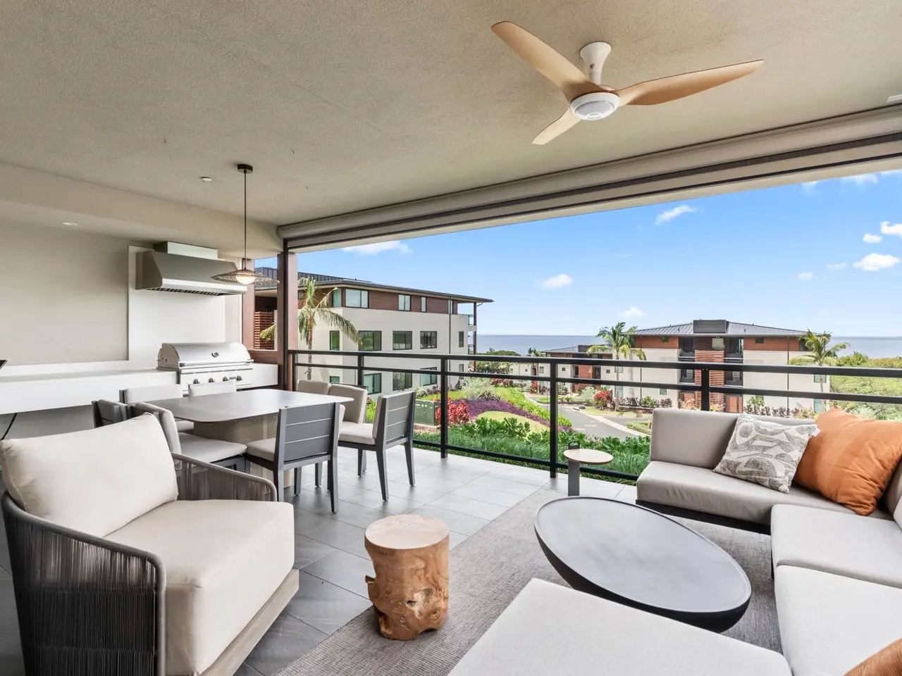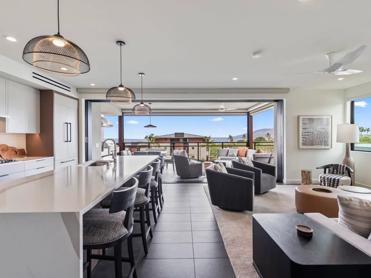 La’i Loa Luxury with Outstanding Ocean View! Wailea’s Newest Development and your golden opportunity to have it all is here! This gorgeous Turnkey Residence in La’i Loa comes with over $400K in luxury furnishings and decor - everything you need to begin the Maui life you’ve earned. Perfectly situated within the community, you will enjoy the pinnacle of island luxury in this exquisite turnkey residence. Upon entry, you can see how thoughtfully designed and lavishly appointed your new Maui home is, all courtesy of Philpotts Interiors. This masterpiece comes fully furnished with high end designer pieces, elegant wallpaper selections, and tasteful, refined finishes throughout. This amazing home is serene yet sophisticated, and the floor plan sits wide to the view, which offers views from all the living areas and the primary suite, which has it’s own dedicated lanai for privacy. A standout feature of this exquisite residence is the seamless indoor outdoor living feel. The wall to wall sliding glass doors retract fully into the wall and open to the oversized main lanai to maximize your Maui lifestyle where you’ll enjoy the built in Coyote gas grill, plus the motorized sunshades on both sides of the huge lanai. The incredible gourmet kitchen features top of the line Bosch Benchmark appliances including refrigerator, cooktop, range, microwave, and built in wine refrigerator, plus Fisher and Paykel two drawer dishwasher - everything you need for day to day living or upscale entertaining. Perfectly positioned near the world class amenities center, you will enjoy effortless access to the huge resort style pool with infinity edge and an additional dedicated lap area to one side, state of the art fitness center, steam and sauna in the facilities, plus beautiful covered and uncovered entertaining areas. Additional highlights include a giant storage room for the home, underground garage parking plus an additional dedicated parking space ground level, and elevator convenience on every level. Your new Maui home awaits with luxurious finishes and thoughtful design throughout - this home is truly move in ready - and offering the very best of the Wailea Resort Lifestyle and access to the best of the world class beaches, restaurants, and shopping in Hawaii. It is time to live the life you’ve earned!