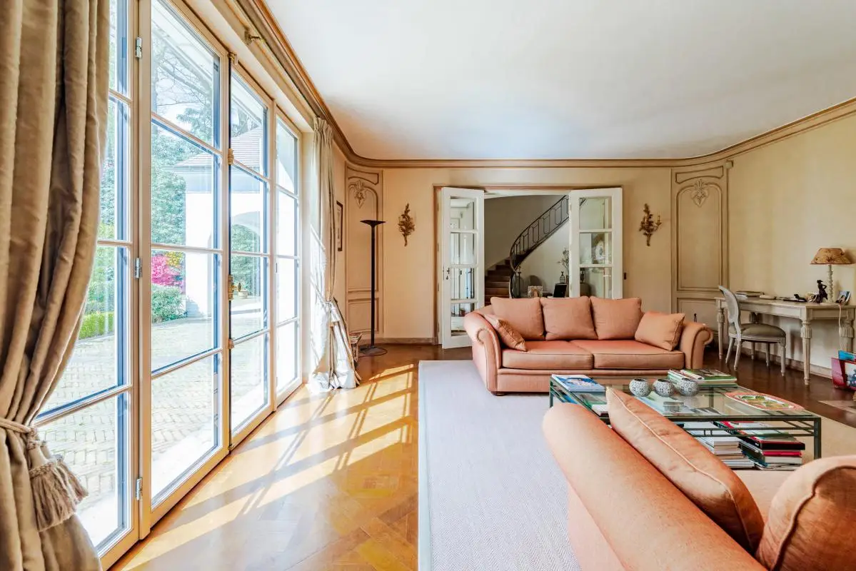 Ideally located between Place Dumon and the Forêt de Soignes, this elegant classic villa from 1968, designed by the architect Keuter, charms with its refined finishes and contemporary comfort. Set on a superb plot of ± 37 ares facing south-west, it offers a living area of ± 490 m². Its light-filled reception rooms open out onto a large terrace and a magnificent landscaped garden with an outdoor swimming pool. The house also has a fully equipped kitchen, 5 bedrooms and 4 bathrooms, as well as a garage for 2 cars. A rare property, combining classic elegance and modern comfort. EPC C