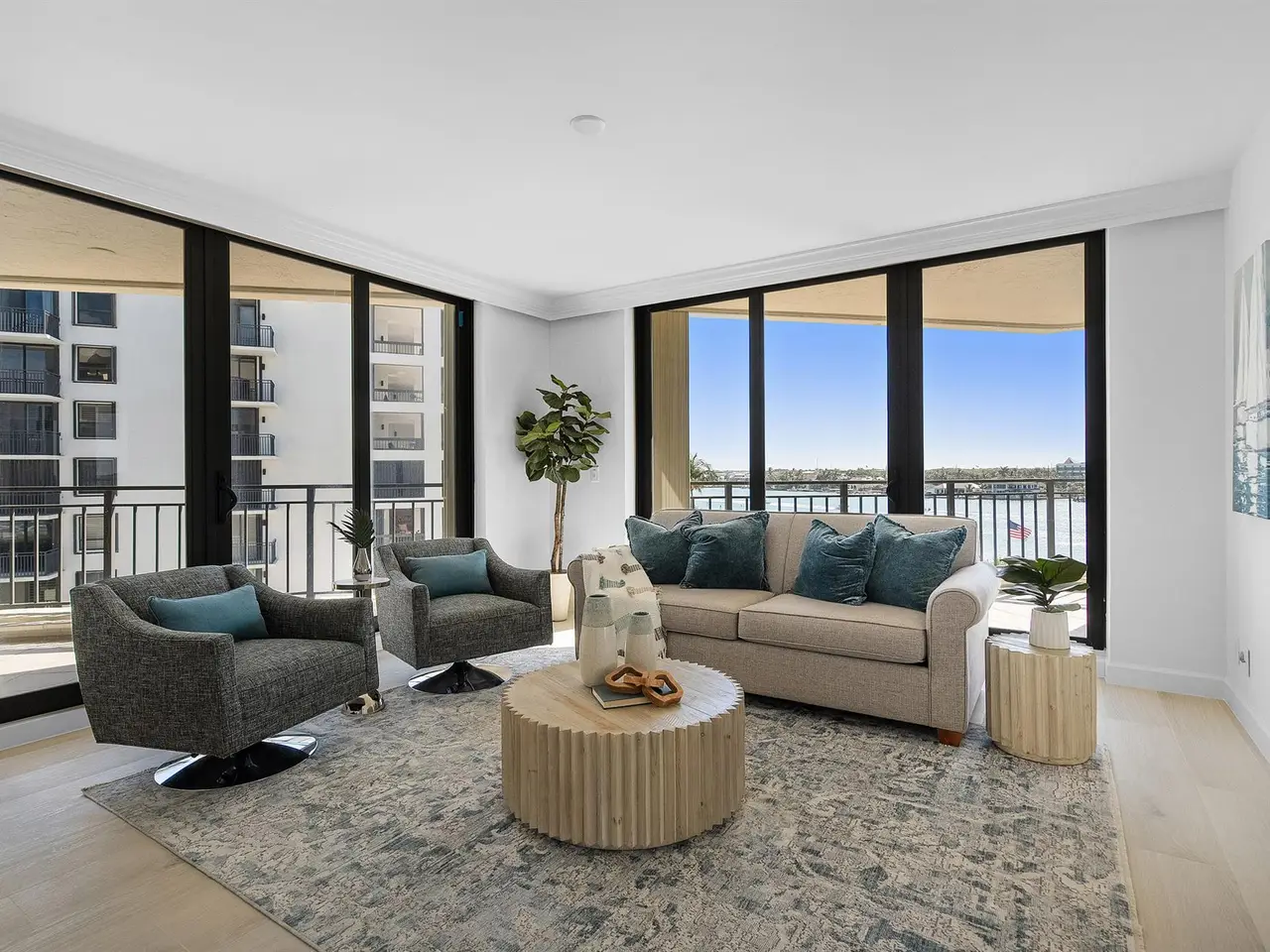 Experience unparalleled luxury at Landfall --an exquisite ocean and intracoastal front building nestled in the coveted enclave of Jupiter Island, Florida. This exceptional 2-bedroom plus den (or 3rd bedroom), 3 full bath residence offers breathtaking, panoramic views of the intracoastal waterway from the moment you step inside. The open-concept layout is designed for both comfort and sophistication. Floor-to-ceiling impact windows and doors flood the space with natural light, while expansive wrap-around balconies invite seamless indoor-outdoor living.
