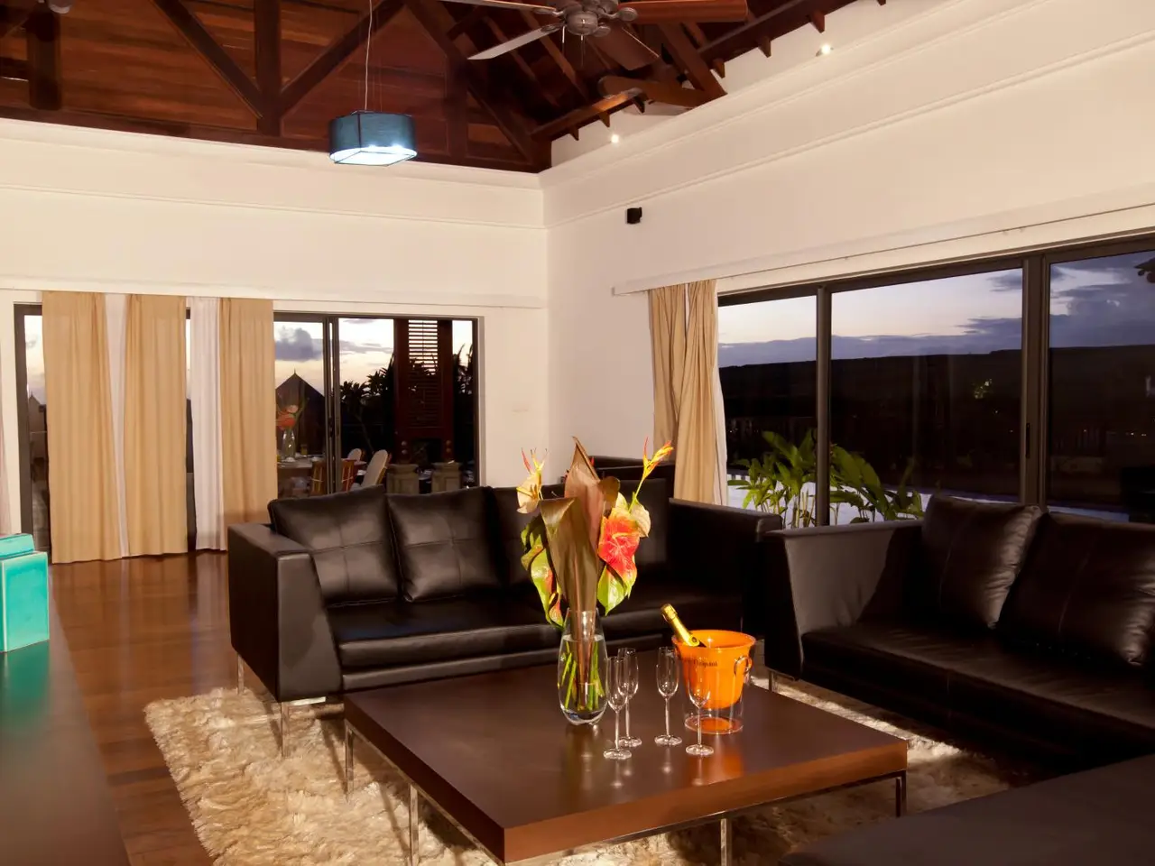 Set on a generous plot of 3,319 m² within the prestigious Belle Rivière Estate, this 5-bedroom villa offers an exceptional lifestyle in one of the most exclusive and unspoiled regions of Mauritius. Surrounded by lush vegetation and just steps from the turquoise lagoon and the estate’s private beach, the villa perfectly blends tropical serenity with refined sophistication. Spanning 316 m² of living space, the villa is designed in harmony with its natural surroundings, showcasing clean architectural lines, natural materials, and a seamless indoor-outdoor flow. The heart of the villa is a large open-plan living and dining area that opens directly onto a covered terrace, an overflow swimming pool, and landscaped gardens, creating a space ideal for entertaining or quiet moments of relaxation. Each of the five bedrooms offers its own atmosphere of privacy and comfort. The master suite features a walk-in dressing area and an elegant en-suite bathroom, while the additional bedrooms are spacious and well-appointed, with views over the gardens or inner courtyards. Architectural features such as wooden pergolas, patios, and natural stone finishes reflect the estate’s signature style—luxurious yet understated, contemporary yet timeless. This villa also benefits from the full suite of 5-star services offered at Belle Rivière Estate, including 24/7 security, property maintenance, rental management, and access to the Sofitel Resort & Spa, located within the estate. Whether as a private residence or a high-end investment, this 5-bedroom villa is a rare opportunity to own a slice of paradise on the south-west coast of Mauritius, where luxury, nature, and authenticity meet.