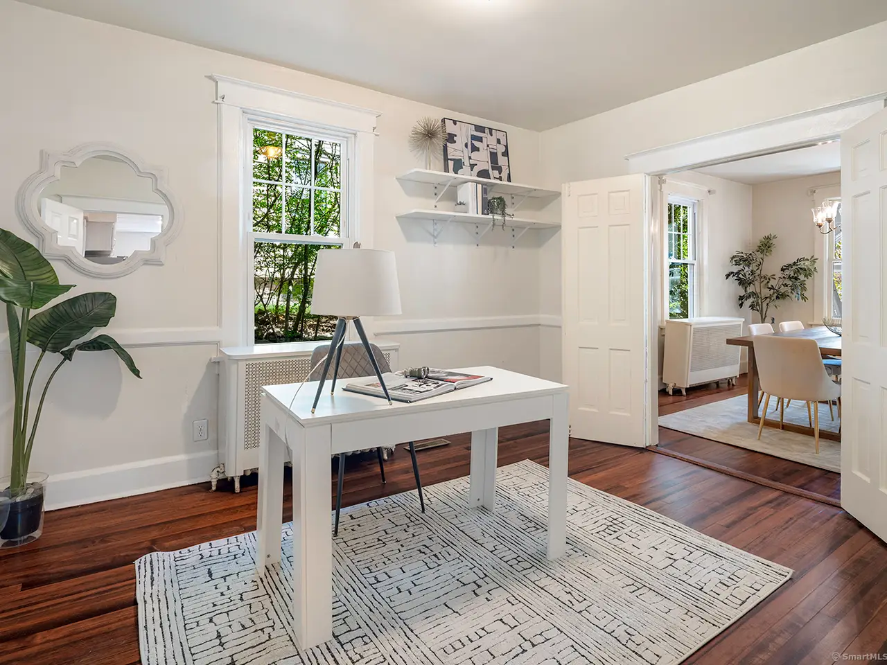 In one of Darien's most convenient locations, this move-in-ready home is just a short distance to Noroton Train Station, Corbin District, Darien Commons, and nationally recognized Darien Library. The renovated kitchen features new cabinetry, quartz countertops and high-end vinyl floors. A new full bath with step-in shower, quartz counters, and a new washer/dryer sits off the hallway. The first floor formal dining room and living room has a wood burning fireplace, an office/flex room, and a spacious family room with newly refinished hardwood floors. Upstairs offers four bedrooms-two with hardwood floors and two with new carpeting-all with skylights for natural light. The renovated bath includes a Jacuzzi tub, skylight, walk-in shower, and dual quartz vanities. Beautifully maintained and thoughtfully updated with $100K+ in updates-including central air, lifetime roof shingles, generator-ready wiring. This home will not last!
