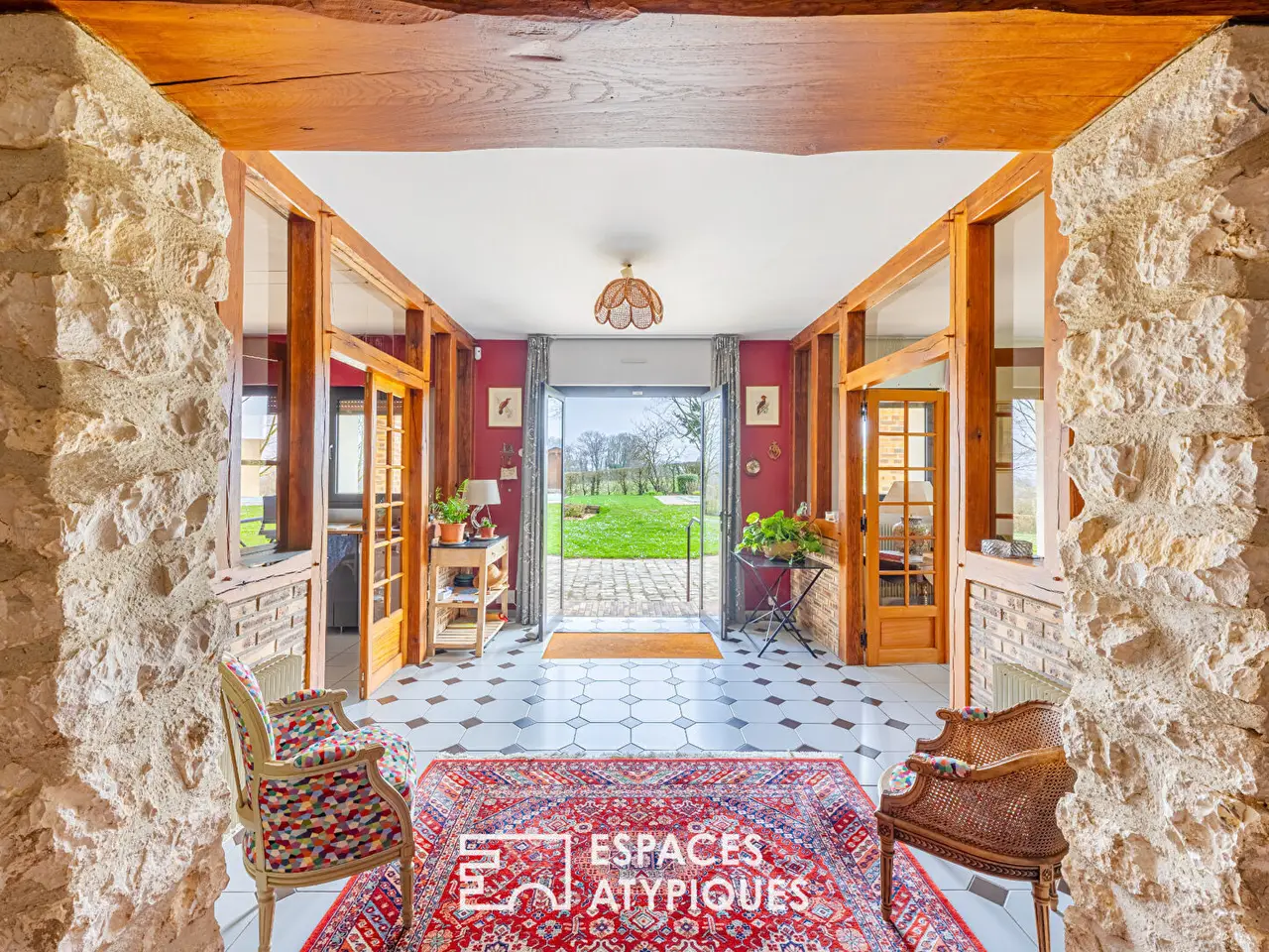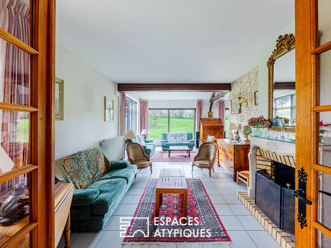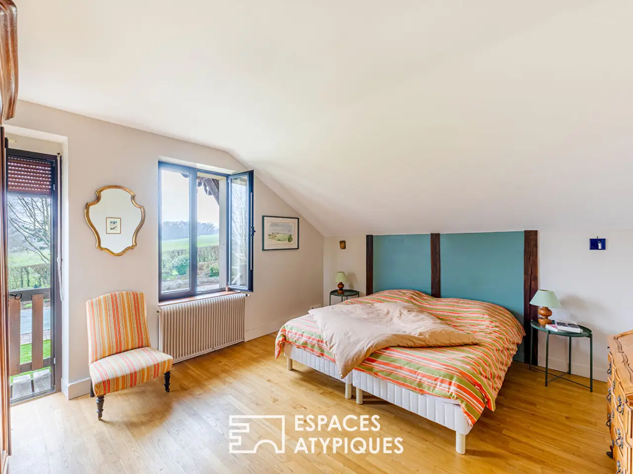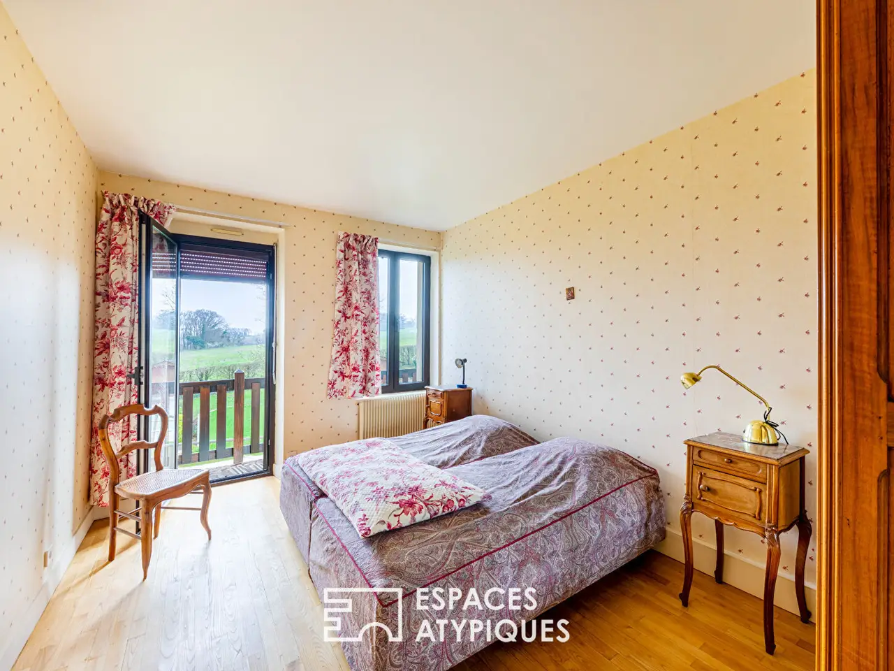 A few minutes from the A13 axis connecting the Normandy seaside resorts, nestled in the heart of a green park of nearly 8000 m2, this former stable was built at the beginning of the 20th century by a famous Swiss agri-food group, hence its architecture faithfully inspired by Alpine chalets.Upon your arrival, you will be welcomed by a spacious entrance which serves on the one hand, a fitted and equipped kitchen with dining area, a large utility room, a real wine cellar, and on the other hand, a triple living room bathed in light thanks to large bay windows offering a breathtaking view of the garden and the swimming pool. On the first floor, a large landing distributes a glass office overlooking the living room, a master suite with its bathroom, and 3 other bedrooms, most of which have access to a balcony with a view of the surrounding countryside.Finally, 2 bathrooms and toilets complete this level which still benefits from an equivalent surface area to be converted. On the second floor, a very bright landing room thanks to its skylight leads to a 5th bedroom or playroom or reading room.Outside, the park extends majestically over the countryside, inviting relaxation and contemplation. The swimming pool with its terrace is the perfect place to enjoy sunny days. The major asset of this property is the usable surface area since there is a total of approximately 500 m2 per level, currently divided into a living area and numerous garages, workshops and attics that can be converted into a home, which makes it an exceptional space for a large family, a liberal activity, a craftsman or even an investor who wishes to make several dwellings there!A13, SNCF train station, schools and shops are just a few minutes away.By train, Direct to Paris in 50 minsENERGY CLASS: E / CLIMATE CLASS E Average energy prices included for the years 2021, 2022 and 2023 (subscriptions included): between EUR7,410 and EUR10,060 per yearREF. 10568Additional information* 9 rooms* 6 bedrooms* 2 bathrooms* 1 bathroom* 3 floors in the building* Outdoor space : 7675 SQM* Parking : 4 parking spaces* Property tax : 6 000 €Energy Performance CertificatePrimary energy consumptione : 178 kWh/m2.yearHigh performance housing*A*B*C*D*178kWh/m2.year54*kg CO2/m2.yearE*F*GExtremely poor housing performance* Of which greenhouse gas emissionse : 54 kg CO2/m2.yearLow CO2 emissions*A*B*C*D*54kg CO2/m2.yearE*F*GVery high CO2 emissionsEstimated average annual energy costs for standard use, indexed to specific years 2021, 2022, 2023 : between 7410 € and 10060 € Subscription IncludedAgency feesThe fees include VAT and are payable by the vendorMediatorMediation Franchise-Consommateurswww.mediation-franchise.com29 Boulevard de Courcelles 75008 ParisInformation on the risks to which this property is exposed is available on the Geohazards website : www.georisques.gouv.fr