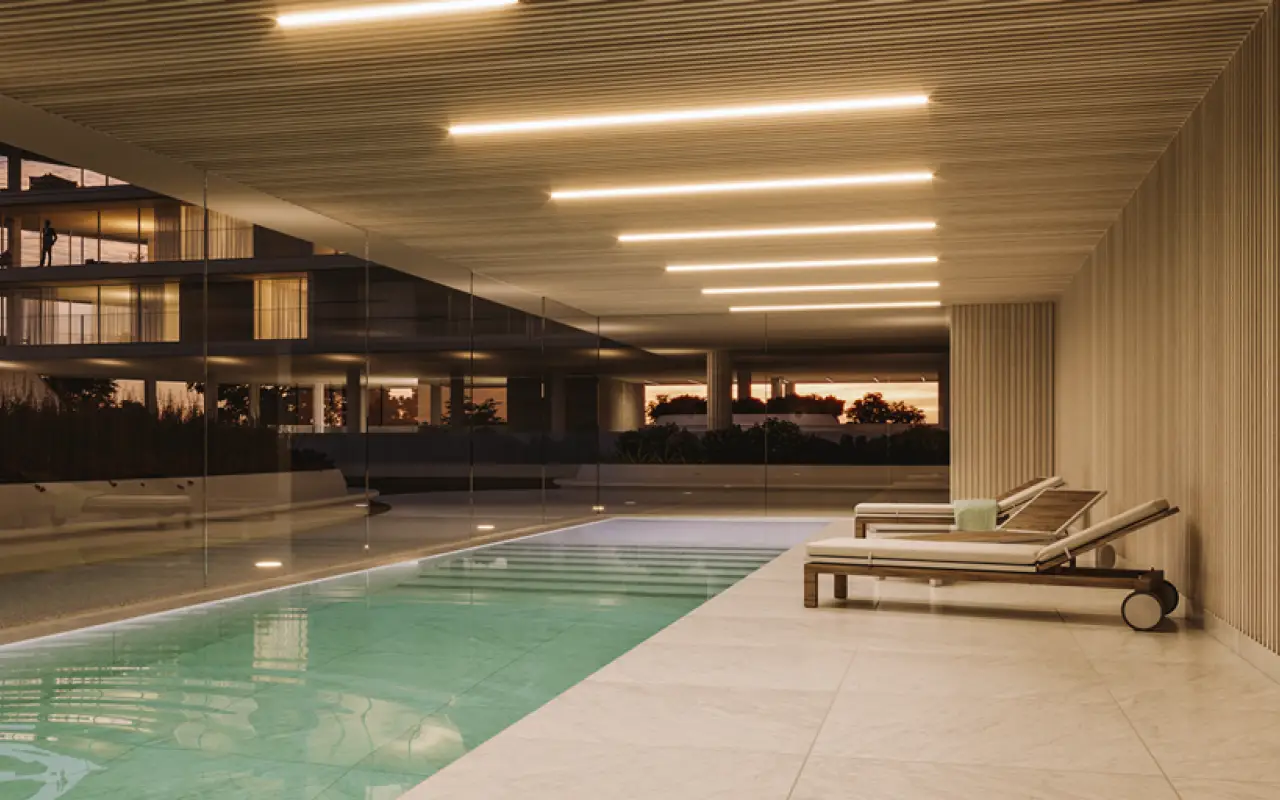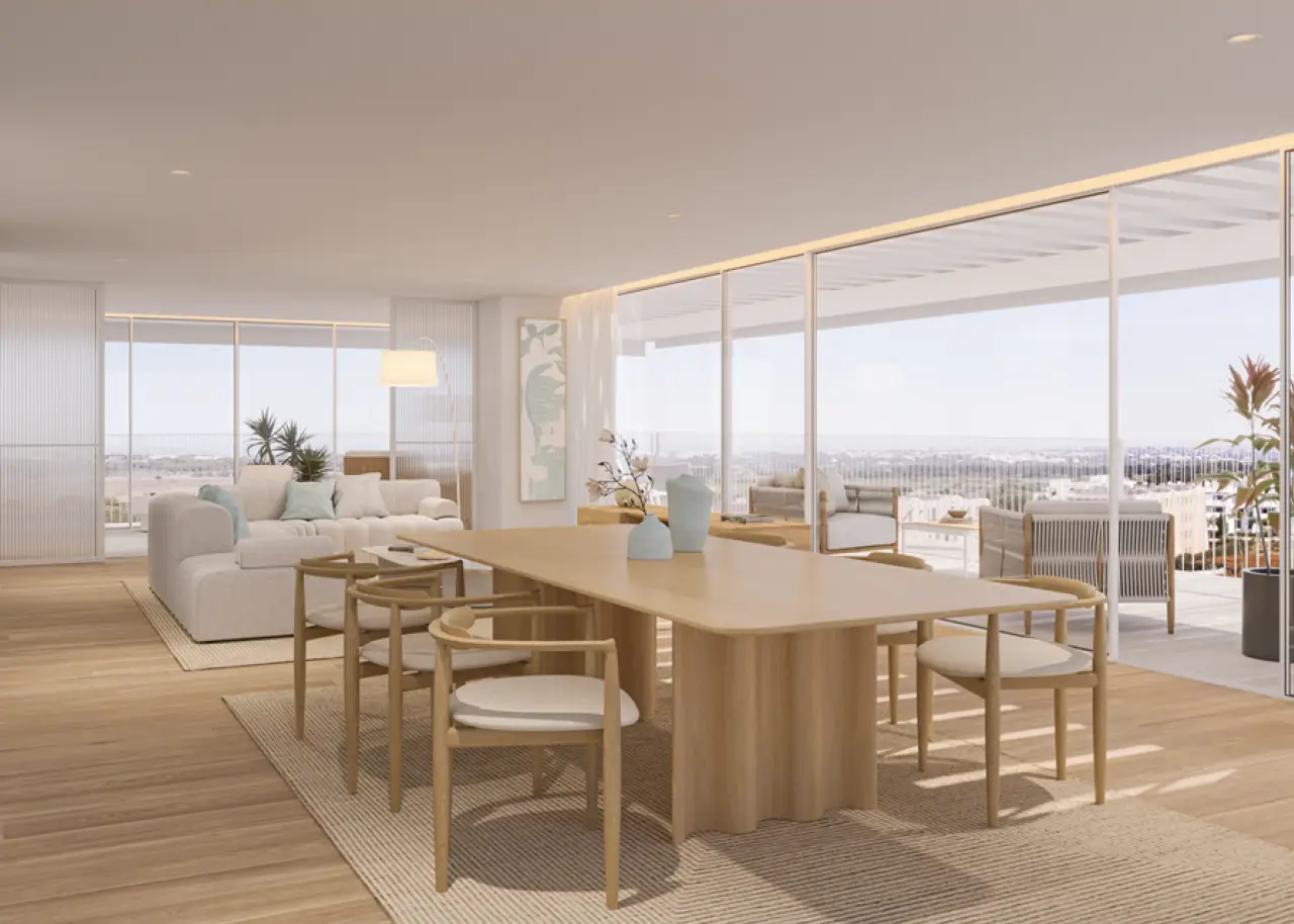 Magnificent two-bedroom apartment in the private luxury condominium Serenity, with large balconies, for sale in Vilamoura in the Algarve. This brand-new apartment has generous areas and high quality, tasteful materials, providing a comfortable and sophisticated interior environment. The large balconies, with glazed openings, stand out and appear as a natural extension of the house, flooding the rooms with natural light. The excellent sun exposure also provides views of the sea and the nature reserve. The generous interior spaces, designed to be used all year round, and the top quality materials, carefully selected, create a bright and exclusive interior environment. A large living room with a balcony and a fully equipped kitchen with SIEMENS appliances and built-in LED lighting ensure maximum functionality. The spacious bedrooms are presented en suite, with built-in closets and bathrooms with suspended sanitary ware. The apartment is equipped with air conditioning, a heat pump and home automation with a touch panel for centralized control of the alarm, lighting and blinds. On the underground floor there are parking spaces with electric charging points and storage. Serenity consists of 53 elegant apartments, divided into 2 buildings - Golden and Blue - with just 3 floors, connected by a private garden and 2 outdoor swimming pools. This private condominium has several leisure areas, including two swimming pools and green spaces, as well as a heated pool, gym, massage room and indoor lounge. For the safety of residents, there is a video surveillance system in the communal areas, as well as intrusion, flood and fire detection systems. Located in Vilamoura, in a quiet area close to the beach, golf courses and Vilamoura Marina, the Serenity private condominium offers a luxury residential experience in one of the Algarve's noblest areas. CHARACTERISTICS:Area: 152 m2 | 1 637 sq ft Useful area: 122 m2 | 1 318 sq ft Bedrooms: 2 Garage: 2 Energy efficiency: A FEATURES: Private Condominium Vilamoura New apartment High quality materials Excellent sun exposure Sea views Balcony Equipped kitchen Fully equipped Air conditioning Parking space