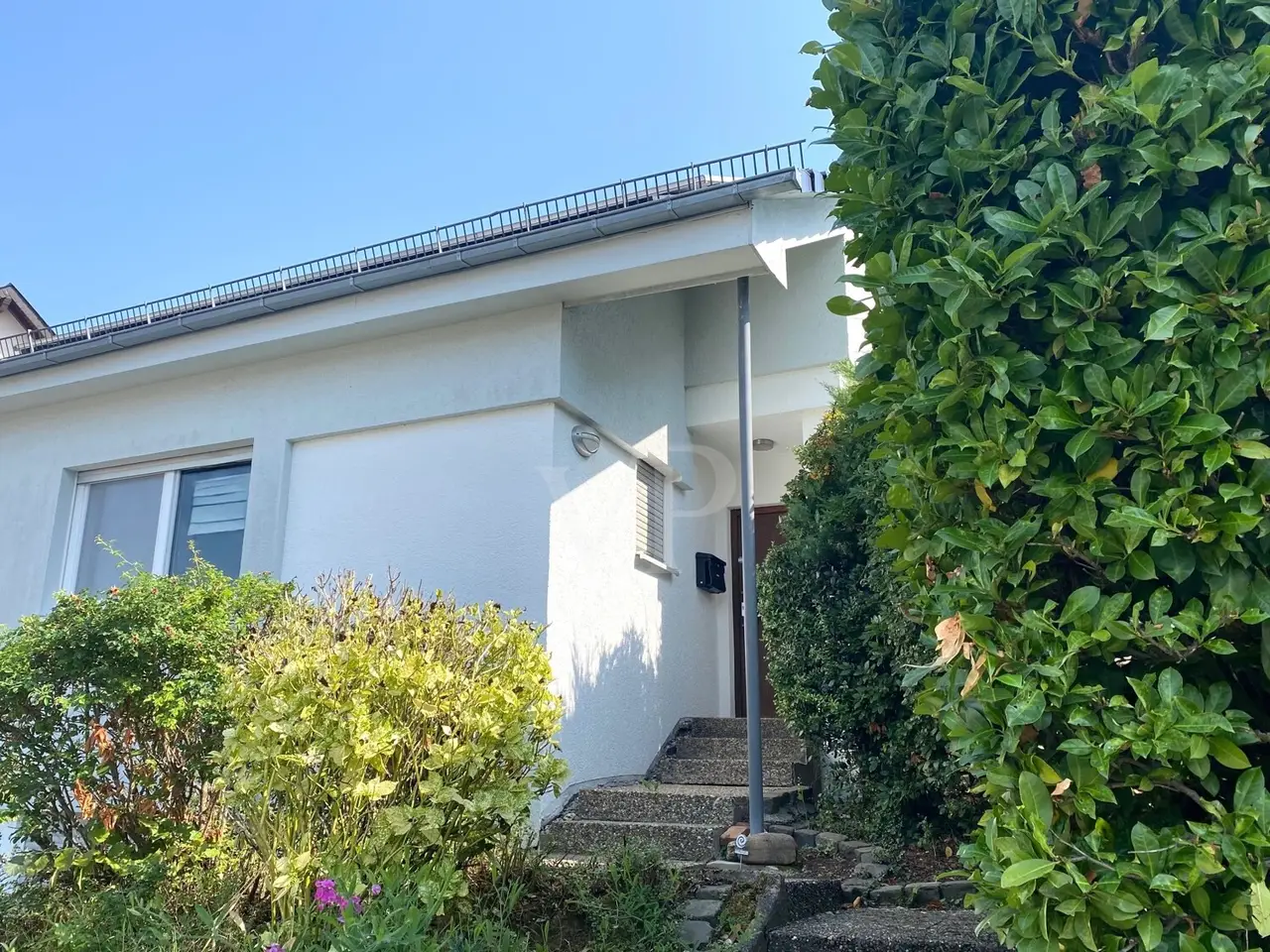 This modernized detached house from 1979 is ideal for garden and sustainability lovers. The property, which underwent extensive modernization in 2011 and most recently in 2023, offers an appealing living space of around 139 m² with a generous plot of around 650 m². The room layout combines feel-good living comfort and practicality. The house has a total of five rooms, including three spacious bedrooms that can be used individually as offices, children's rooms or guest rooms. Two bathrooms spread over two floors avoid queues at peak times. The luxurious master bathroom in particular, lined with marble tiles, is an inviting wellness oasis with a large bathtub and modern shower. The heart of the house is the spacious living room with split-level design and floor-to-ceiling windows, with harmonious views and sightlines that provide direct access to the garden and terrace. Here you can spend cozy evenings in front of the fireplace or receive guests in an inviting atmosphere. The underfloor heating ensures a pleasant underfloor climate. The kitchen includes high-quality equipment with modern electrical appliances and offers plenty of storage space. Additional convenience is provided by a spacious basement room in the basement, which can be used flexibly - whether for working, accommodating guests or pursuing a hobby. The well-thought-out arrangement of the rooms allows optimal use of the available space and offers all residents sufficient privacy. The energy-efficient air-heat-water pump, which not only covers the house's heating requirements in an environmentally friendly way, but also reduces operating costs in the long term, is particularly noteworthy. A new photovoltaic system with a 10 KW battery storage buffer reduces energy costs to 5 euros per month! This is a future-oriented living space that takes both ecological and economic aspects into account. The outdoor area of the house creates a pure vacation feeling at any time of year thanks to the terrace with outdoor fireplace and the cozy conservatory. The spacious garden area allows for plenty of gardening activities or the creation of play areas for your children. The spacious garage is very practical, providing ample space for bicycles or children's equipment such as bobby cars, baby carriages or scooters in addition to a parking space and wall box. There is also an additional washbasin next to the passageway from the garage to the living room, so that any residue from the soles of shoes can be washed off here quickly and carefree. The location of the property combines quiet living with easy access to the urban infrastructure. Shopping facilities, hairdressers, schools and leisure activities are all within easy reach, making everyday life convenient. Summary: All in all, this detached house offers high-quality, energy-efficient living in an absolutely peaceful environment. The harmonious combination of many wooden elements, modern furnishings and well thought-out room layout creates a solid basis for long-term harmonious coexistence.