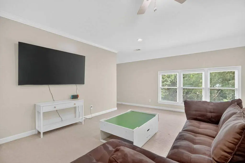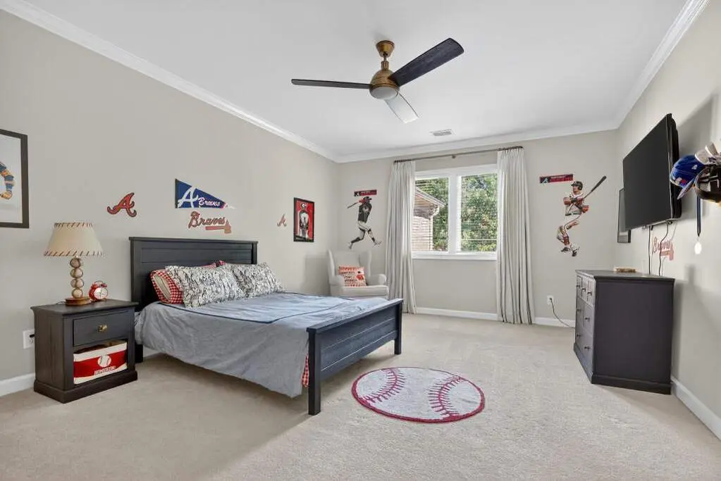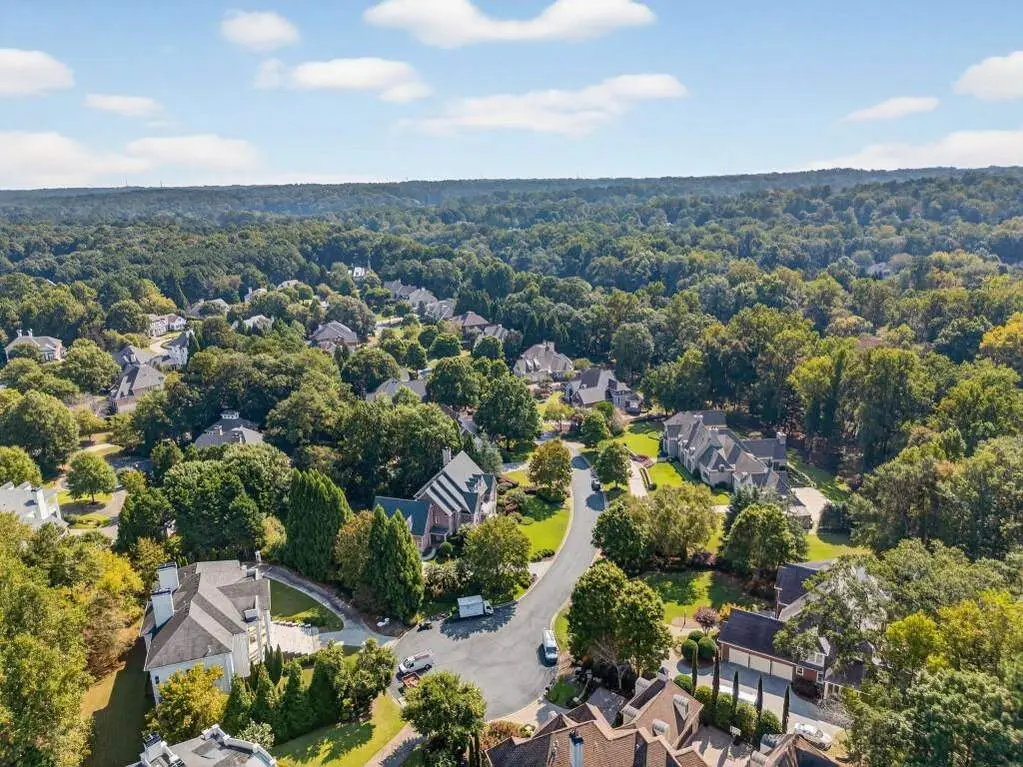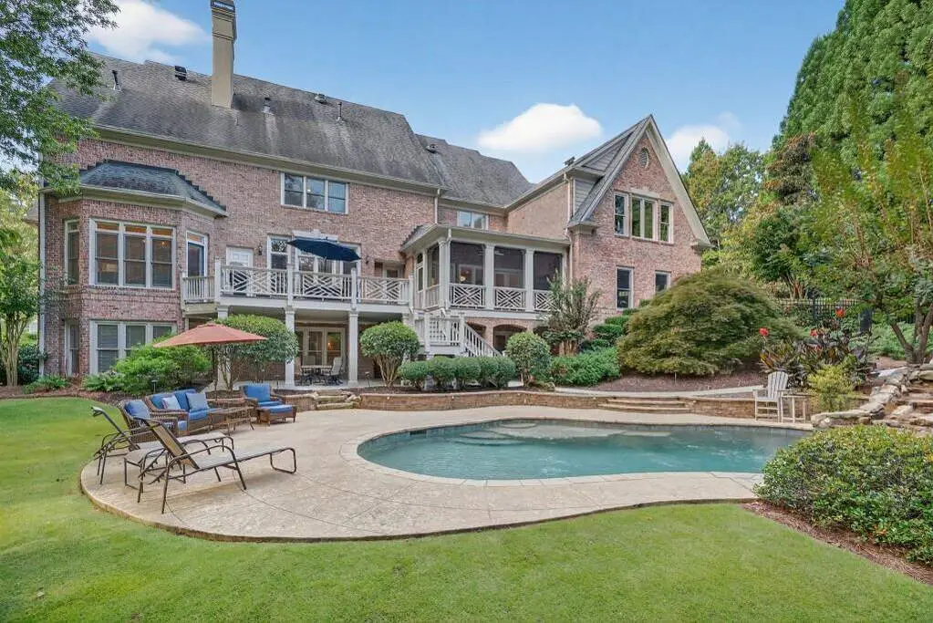Experience resort-style living in this elegant estate on a private cul-de-sac in the highly sought-after community of Winfield on the River, a one-of-a-kind gated neighborhood nestled on the serene banks of the Chattahoochee River. With its timeless brick architecture and natural landscaping, this home is a special retreat with luxurious amenities and exceptional indoor-outdoor living on +/- 0.70 acres. Step inside to a grand two-story foyer flanked by a formal dining room and a flexible office/library/den space-perfect for both elegant entertaining and everyday living. Expansive ceilings and wall of windows in the family room flood the space with natural light, while the open-concept layout flows seamlessly into the gourmet kitchen, complete with high-end appliances, abundant cabinetry, and an entertainer's island. Just off the kitchen, a spacious screened porch and deck overlook your private and spacious backyard oasis. Outside, your own backyard paradise awaits, featuring a stunning saltwater pool with a waterfall, framed by lush, manicured landscaping for maximum privacy and relaxation. The main level owner's suite is a peaceful retreat with a spa-like ensuite and serene views. Upstairs are three spacious bedrooms, three bathrooms, and a versatile bonus room-ideal for a playroom, teen suite, or additional living space. The large unfinished space with a private entry also has the potential to be an additional private suite for guests or multigenerational living. The daylight terrace level is a versatile space for everyday entertaining or hosting guests, offering a full pool bath, tiled playroom with closet, expansive rec room, gym, private office, 5th bedroom with full bath, fireside family room with wet bar, workshop, and extensive storage. Off the terrace level is an additional large covered patio space. Bordering a beautiful river across from a national park with recreation space and hiking trails, the neighborhood feels private and secluded, yet boasts pro