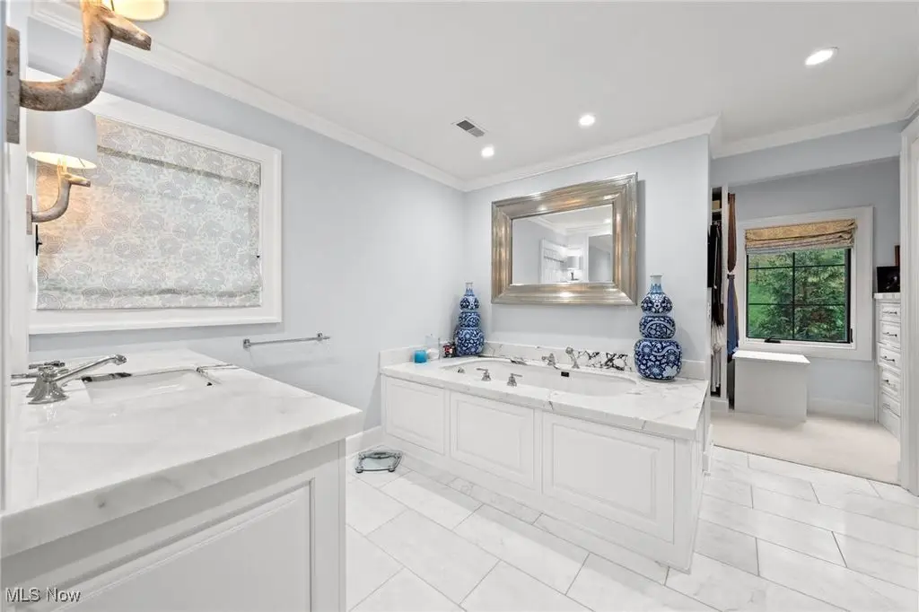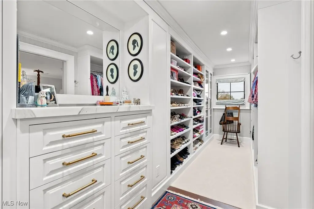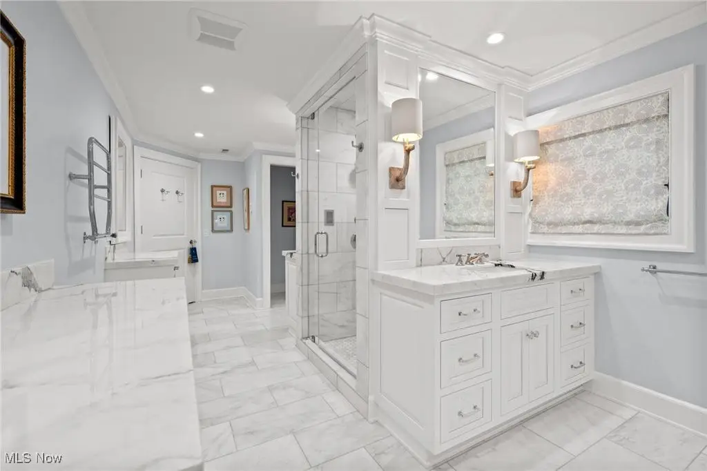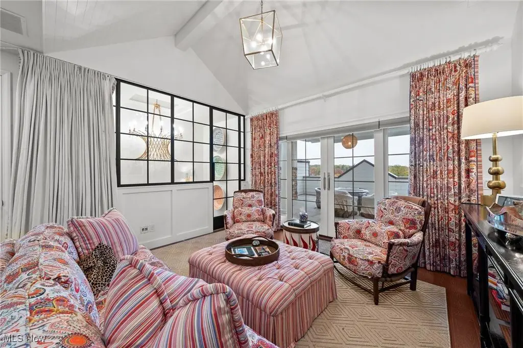 Located in the heart of Chagrin Falls, this extraordinary 4 level residence has been renovated and decorated to utter perfection by the current owner. No expense was spared and no detail was overlooked throughout. A charming and beautifully landscaped courtyard welcomes one into the foyer through a custom front door. One will immediately notice the exquisite decor, highest end finishes, and the meticulous attention to detail. On this entry level there is an elevator with access to all 4 floors, a home gym with rubber floor, and a grand staircase with a custom runner. The main level of this home is an entertainer's dream and features the most extraordinarily designed dream kitchen. Here you will find the highest level of finishes including custom inset cabinets, a huge center-island, Calcutta Gold marble countertops, professional stainless-steel appliances, a wine cooler, ice maker, and spectacular decorative hood. Off of the kitchen is a beautiful bar area which is perfect for entertaining. The main living area includes a fabulous dining room with custom banquette which opens into the main great room. Here you will find a magnificent raised hearth which is flanked by custom built-ins and floor to ceiling windows which overlook the village. The owner's suite in this unit occupies an entire floor and is the definition of "Luxury!" The bedroom is a quiet retreat, the marble bathroom is second to none (steam shower, dual vanities, heated floor, heated towel rack, Porto Romano sconces, and jetted tub), two walk-in dressing rooms, and even a private laundry room. The top level is a retreat for guests with a bedroom area, media room, spectacular bathroom, and access to the outdoor veranda. This beautiful, covered terrace has a stone fireplace and built-in bar area with sink. This one-of-a-kind residence is truly a showplace.