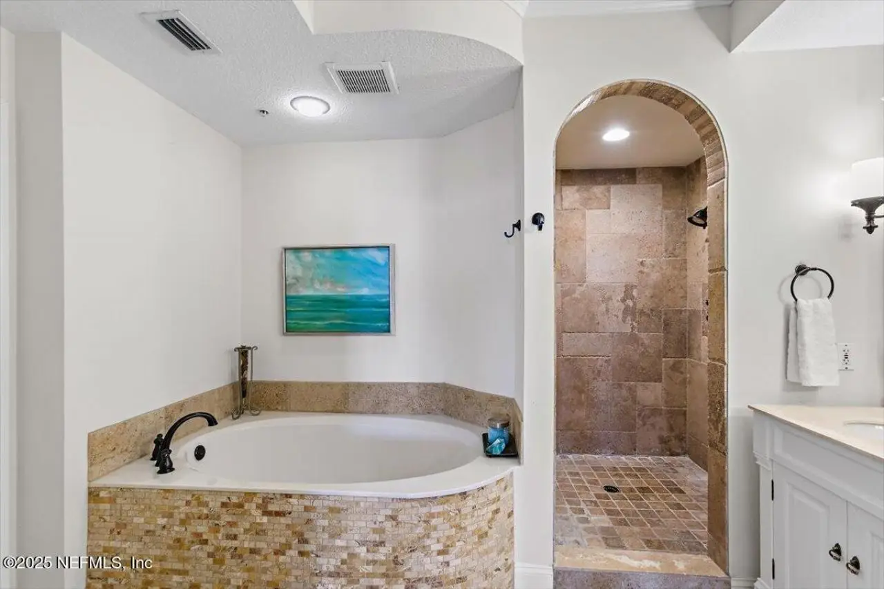 • Large soaking tub and double head shower