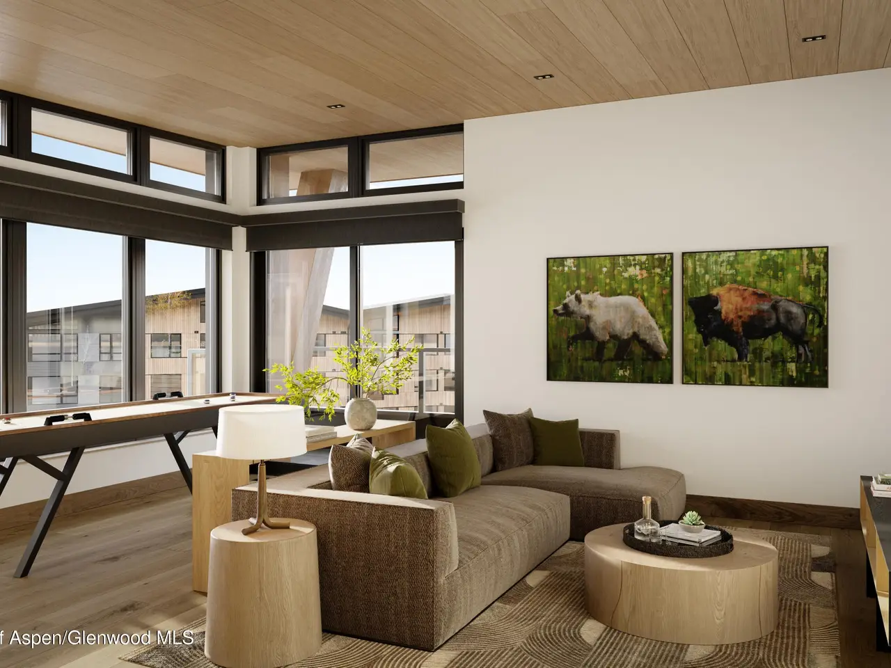 The most iconic residence in Snowmass Base Village. A modern mountain cabin perched high features spacious single-level living, direct elevator access, an open-concept floor plan, gracious outdoor living, and well-appointed secondary bedrooms and shared spaces.Six bedroom suites, each with a dedicated rooftop balcony, plus a large flex game or media room.Large, operable sliding glass doors open seamlessly to an expansive private terrace and to some of the most breathtaking views in Snowmass. Provisions for an optional hot tub. Full-height windows bring in natural light and fresh mountain air, while constant natural ventilation provides exceptional indoor air quality. Vaulted ceilings. Impeccably designed interiors with your choice of two luxurious finish palettes. Each showcases beautiful natural wood tones in millwork, accent walls and ceilings, stone slab and quartz countertops, stone, porcelain and ceramic tiles, and decorative lighting, accentuated with a selection of optional enhancements. A custom-crafted Poliform kitchen punctuated with Gaggenau appliances, superbly crafted flooring by Arrigoni Woods, and bathrooms with top-line artisanal quality Waterworks plumbing fixtures. Includes revolutionary Opti-myst Pro linear fireplaces in the living room and primary bedroom, incredibly precise induction cooktop, efficient windows, and hydronic heating and cooling. Spa-like five-fixture primary bathroom with steam shower. Walk-in laundry/mudroom with dual stacked washers/dryers and a utility sink. A private garage, like you'd find in a single-family home, with space for two cars and additional gear storage. Plus, our signature Stow & Go amenity program includes convenient lockable storage cabinets within each residence, as well as in-building ski and bike storage and a separate owner storage area.