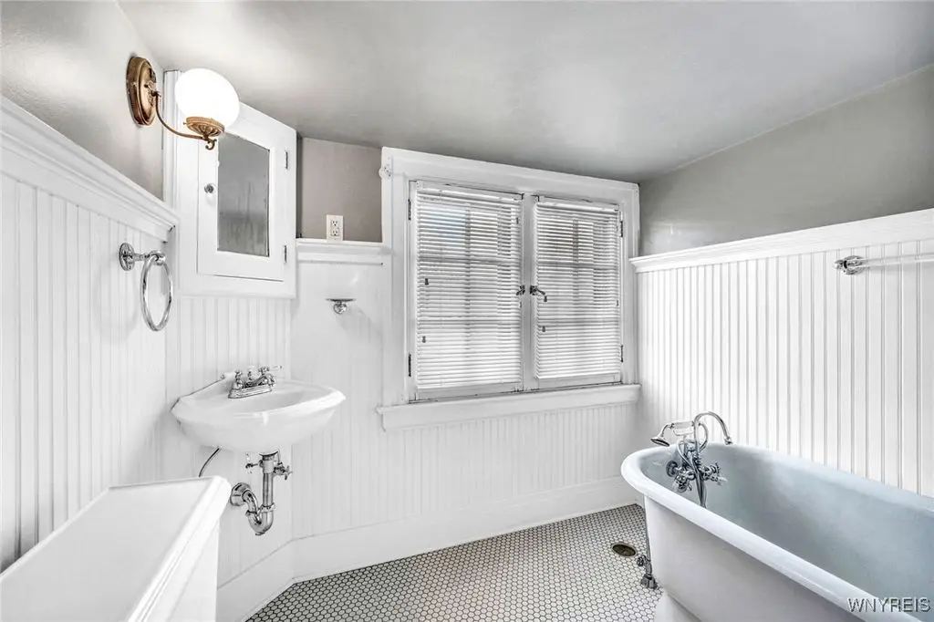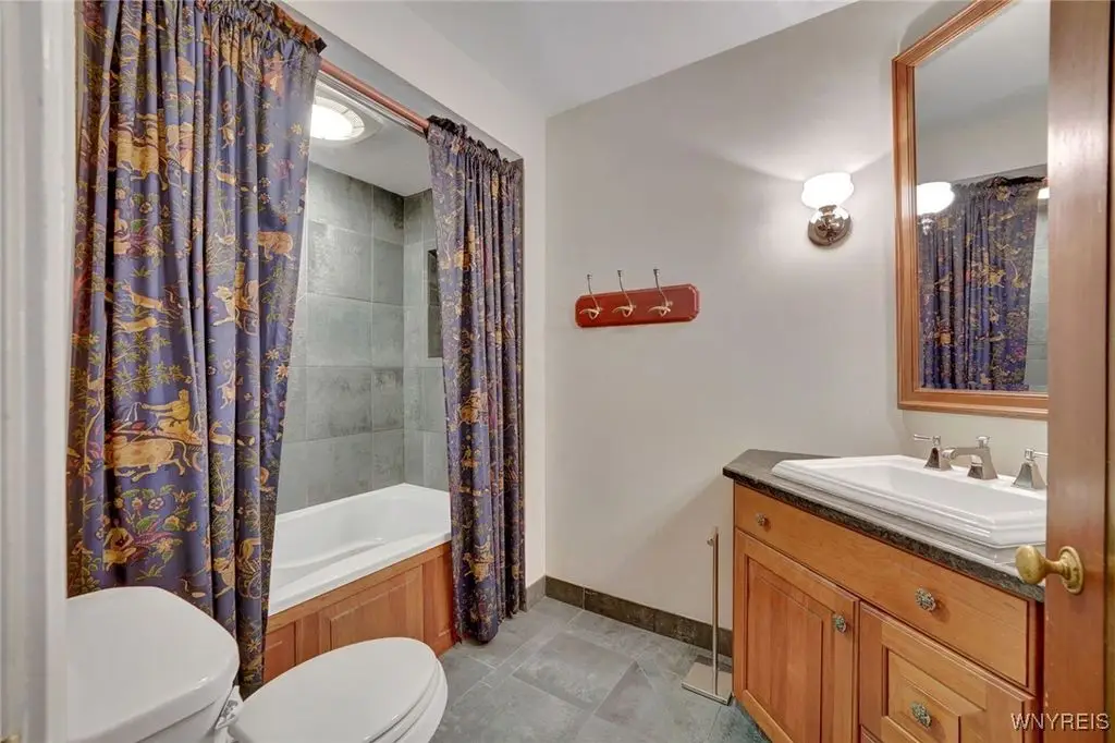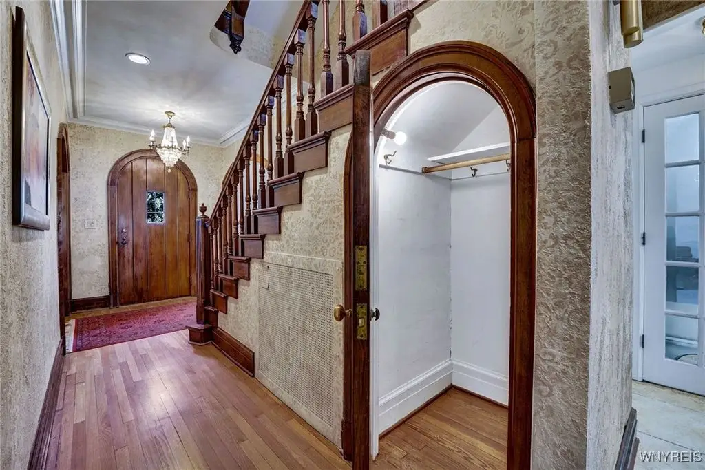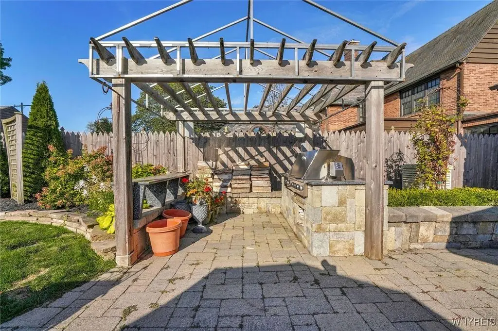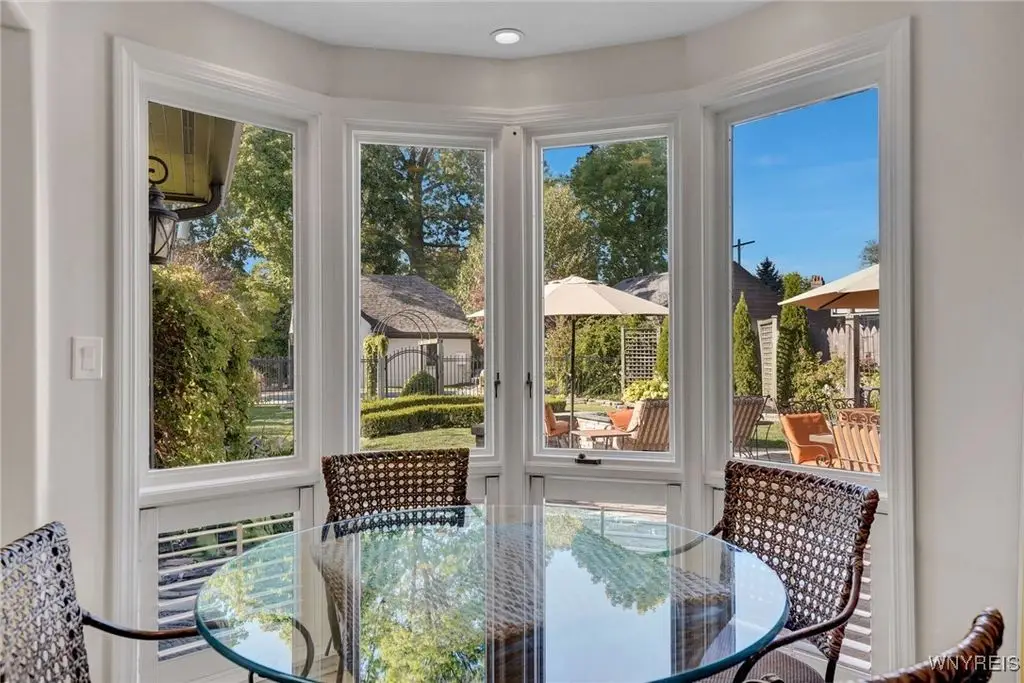 Timeless Elegance Meets Modern Luxury Across from Delaware Park at 81 Nottingham Terrace. Discover refined living in this stunning 4 bedroom, 3.5 bath Tudor estate, perfectly positioned across from Olmsted's historic Delaware Park. A seamless blend of classic architecture and contemporary upgrades, this home offers exceptional comfort and elegant style. The fully remodeled chef's kitchen is a showpiece, featuring premium appliances including a Sub-Zero refrigerator, Wolf range, Cove dishwasher, and a built-in coffee bar. Elegant Carrara marble countertops and a spacious island make it ideal for both cooking and entertaining. The kitchen opens to a bright breakfast room and offers a unique view into the climate-controlled wine cellar, which holds up to 1,000 bottles of wine. The formal dining room, adorned with its original chandelier, flows into a grand foyer. A spacious living room centers around a striking woodburning limestone fireplace, while the large modern family room features radiant heated floors and a loft above. French doors lead to a private courtyard patio, perfect for relaxing or hosting guests. The distinguished library/study offers warmth and character with a wood-burning fireplace and custom built-in bookshelves. Original hardwood floors and incredible woodwork throughout. Gorgeous staircases show the charm and character of this exquisite home. Upstairs, the luxurious primary suite includes three closets and a spa-inspired ensuite bath. The second bedroom opens to a Juliet balcony, and the third bedroom features a generous walk-in closet. The third-floor bedroom includes an additional full bathroom, ideal for guests or a private retreat. Outdoor living is equally impressive - enjoy a saltwater inground pool, a stone fire pit for cozy evenings, grilling area designed for effortless entertaining. Fully fenced electronic gated yard with sprinkler system. Updates include roof, boiler system ($30,000), Generac generator, and much more. This exceptional home combines historic charm, modern amenities, and resort-style outdoor living in one of Buffalo's most coveted neighborhoods.
