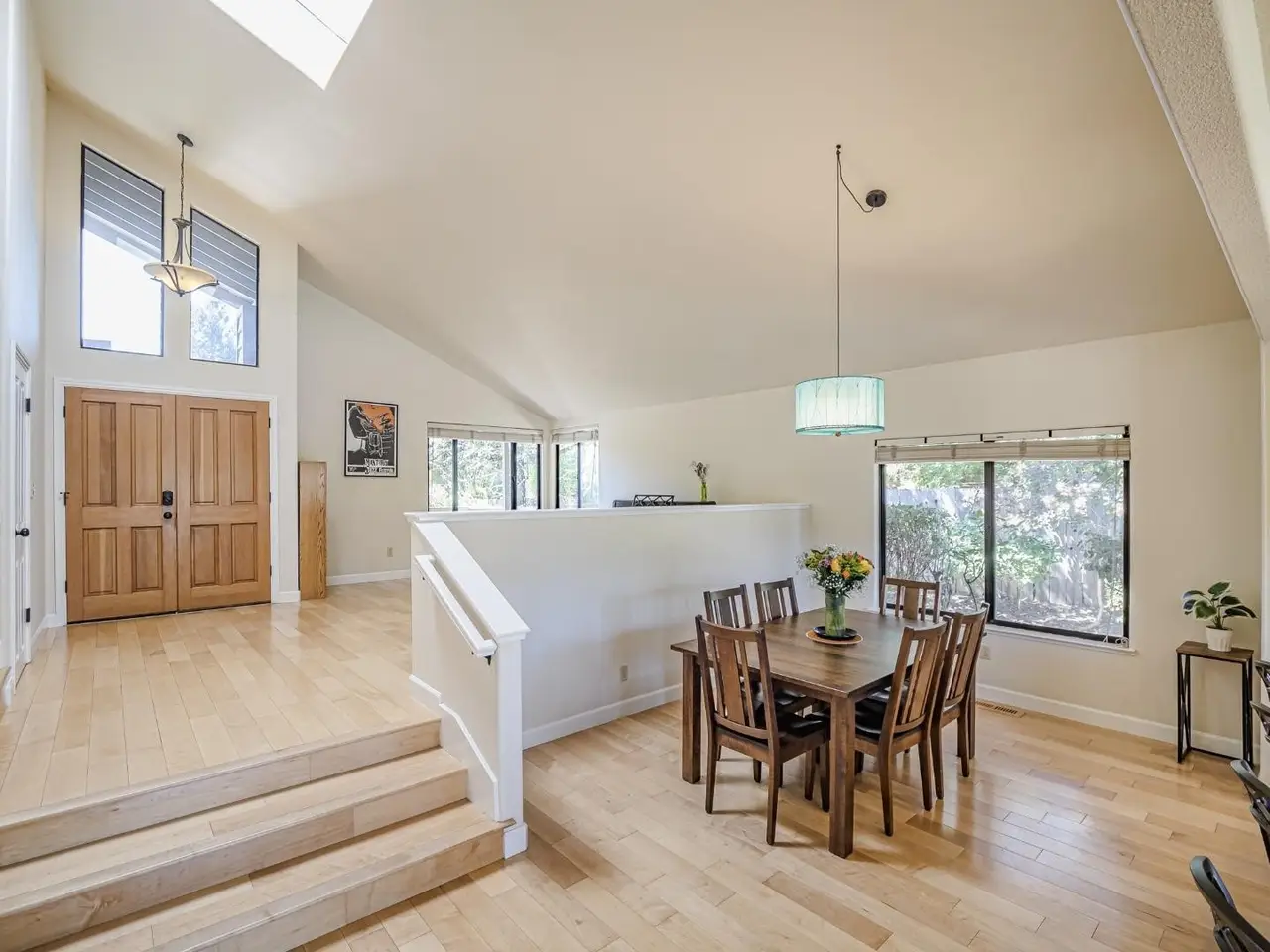 Just Listed in Scotts Valley! Neatly tucked away on a quiet cul-de-sac, not far off the beaten path, 14 Sageland Court is situated on a large sunny lot and features a versatile spacious open floorplan with vaulted ceilings, abundant natural light, warm wood floors, wood burning fireplace, and a combined kitchen, living, and family room space, perfect for family gatherings and entertaining with easy access to the backyard deck and pool. The well thought out sensible floor plan incorporates three upstairs bedrooms, including the primary bedroom and bath, with views of the backyard pool, and an additional main level bedroom and bath and inside washer & dryer area with an attached two car garage. This home also boasts many energy efficient upgrades: Solar electric panels, electrical storage batteries, EV charging station, on demand water heater, hydronic solar panels for heating the pool. Location, Location, Location! Take advantage of one of the most convenient locations in Scotts Valley, close to schools, a few minutes drive to Hwy 17 and walking distance to the local market and shopping center with restaurants, specialty shops, and just a ten-minute drive to the beach and downtown Santa Cruz and 20 minutes to Los Gatos.