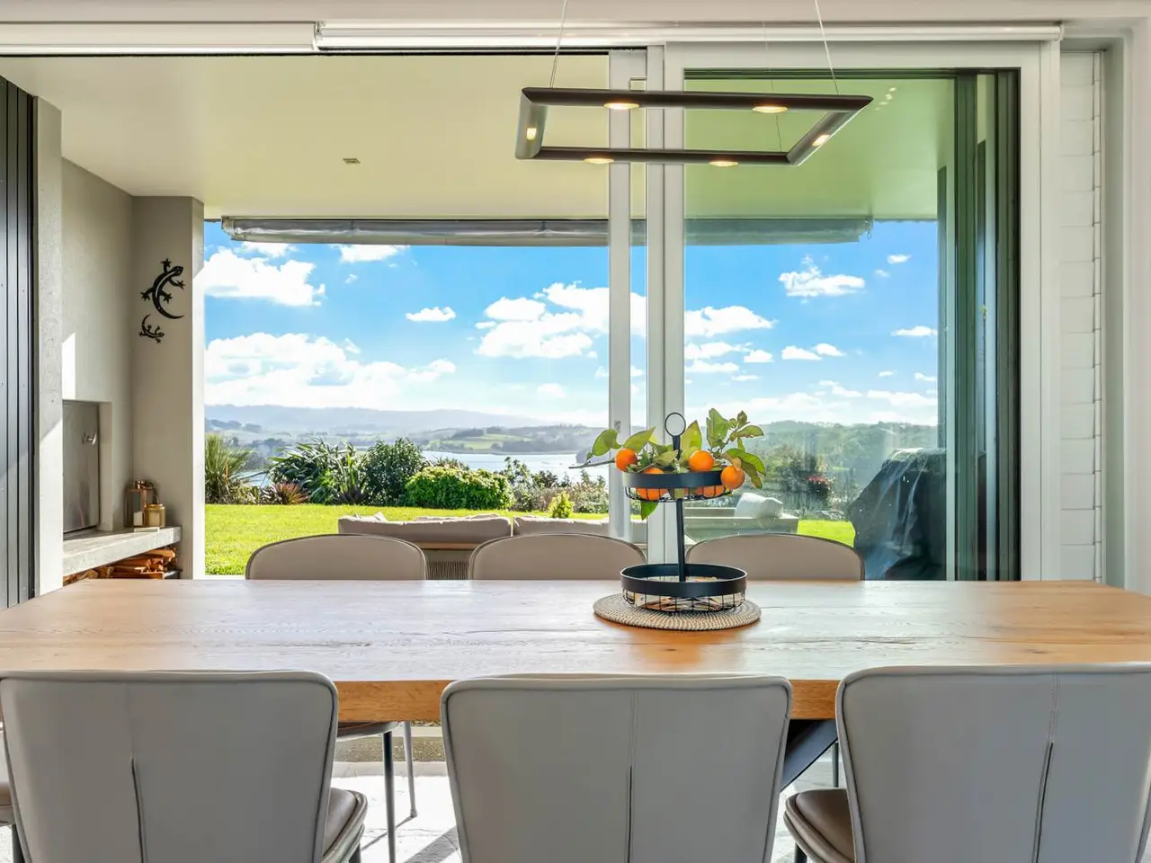 This exquisite coastal property is the perfect find for anyone seeking a quality home or getaway. Architecturally designed, this four- bedroom home is positioned on the northern slopes of Sandspit, with expansive sea and bush views, nestled on 4639sqm. Beautifully designed one level home, with soaring ceilings and neutral decor that creates a light, spacious, relaxed holiday atmosphere. It features open plan living that flows onto extensive outdoor entertaining areas. Built with environmental sensitivity, the house has solar power, under floor heating, air conditioning and meets exacting standards far above what is required by the building code. The designer kitchen is the hub of the home, with quality appliances and a huge island bench, a sheer delight for the family cook. The kitchen leads to a family room, which opens onto a thoughtfully planted outdoor space. You'll love getting together with family and friends for a bbq, relaxing, watching the yachts and paddle boarders from the well-designed outdoor living spaces complete with a built-in fireplace, the indoor/outdoor flow is excellent bringing nature into this home. The master bedroom is a haven offering stunning sea views. It opens onto a private its own outdoor living court, complete with a gorgeous bathroom. Three more double bedrooms make this a comfortable, luxurious home for a family or anyone wanting space, ideal as a B&B. Two of the bedrooms feature ensuites and open onto the beautifully planted gardens. The fourth bedroom has garden views and would make a great office space for anyone working from home. The garage situated near the entrance offers ample parking for vehicles, plus there's plenty of parking for the boat plus extra vehicles etc. Come, experience all the Matakana coastline offers, the property is situated seconds from the waterfront, marina, boat ramp, native bush walking tracks, Brick Bay beach, the yacht club, great for an enjoyable lunch or dinner. Matakana village and local vineyards are just a short drive away. Phone to view you won't be disappointed. Auction: on site on Saturday 1 November 2025 at 12:00PM (unless sold prior)