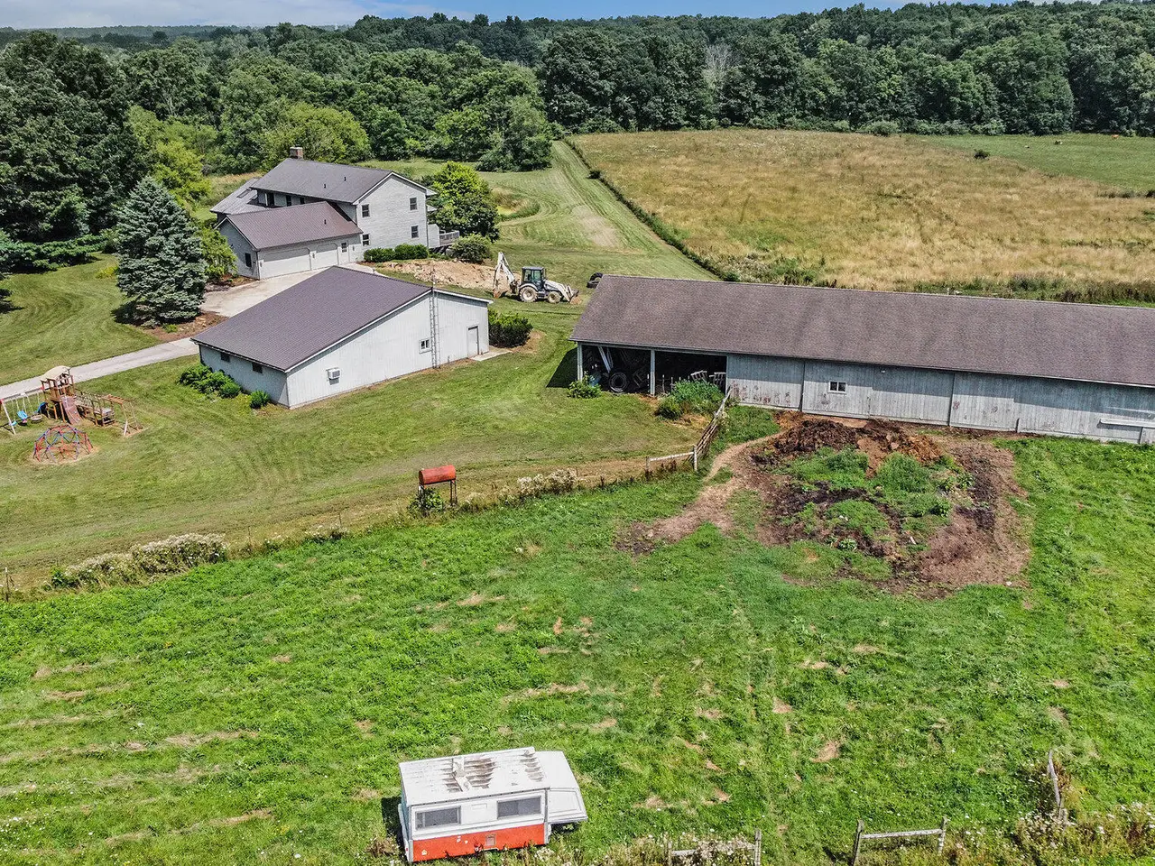 Working Country Estate & Farm on 28 Acres - Just 10 Minutes from Ann Arbor Experience the best of country living and agricultural opportunity with this rare 28-acre estate featuring a 5,200 SF custom home, fully equipped dairy barn, and multiple outbuildings--all set in one of the most scenic and private settings near Ann Arbor. This property offers tremendous versatility and potential--ideal as a working dairy or equestrian operation, hobby farm, or sustainable homestead. The land includes rolling open fields, fenced pastures, pollinator-friendly plantings, and fruit trees, perfect for crops, livestock, or agritourism ventures. Farm Features: Animal Barn: 10 free-stall stanchions, automatic watering bowls, and feed trough--ready for dairy or livestock use. Heated Workshop: Concrete floors, walk-in cooler, and space for repairs, processing, or farm-to-table production. Large Pole Barn: Excellent storage for equipment, hay, or vehicles. Fenced acreage and pasture potential for horses, cattle, goats, or other livestock. The custom-built home complements the land beautifully, oriented for sunrise and sunset views on the wrap around deck. Inside, enjoy an open-concept floor plan with cathedral ceilings, American Cherry hardwood floors, and a cozy wood-burning stove. A Cherry kitchen opens to a family room, dining area, family room and flex/craft space. The main-level primary suite includes its own den and full bath; the upper-level includes a primary suite which offers two walk-in closets, a cedar closet, and a luxurious shower and Jacuzzi tub as well as a another bedroom with ensuite bath. The walkout lower level features a solar atrium, home theater, full bath, and built-in shelving as well as plenty of storage. A unique blend of functioning farm and refined home, this property offers a rare opportunity to live, work, and grow in harmony with the land just minutes from downtown Ann Arbor.
