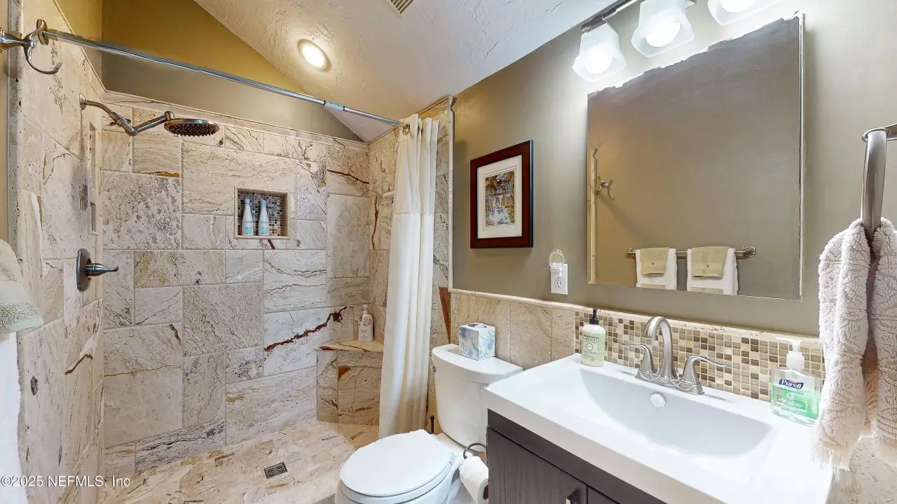Serene Waterfront Living on Peaceful South Prong of Black Creek Welcome to your tranquil retreat nestled along the quiet, scenic shores of Black Creek. This beautifully appointed 3-bedroom, 2.5 bathroom home offers the perfect blend of comfort, functionality, and outdoor enjoyment. Enjoy the convenience of a 2.5 car garage, golf cart garage, and carport, providing ample space for vehicles, toys, and tools. Step inside from your stairs or exterior elevator to find quartz countertops, a Viking Dual Fuel convection range, Sub Zero built in refrigerator, Viking convection microwave, GE Cafe' Dish Washer, custom cabinets, and a cozy fireplace, creating a warm, inviting atmosphere perfect for everyday living and entertaining. Outdoors, this property is a dream come true for water lovers and entertainers alike. Relax or host gatherings in the screened-in entertainment area complete with an outdoor kitchen and sweeping waterfront views. Boaters will appreciate the private dock, 30' by 12' boathouse with lift, and bulkhead, offering direct access to the peaceful waters of Black Creek. The home is built above the flood zone elevation. The carport is 10 feet high, the garage has an attic storage area on the second level. Aerator, hot water heater, heat pumps are raised above the flood zone elevation as well. The lot is equipped with a 6 zone sprinkler system, over sized driveway, and across Black Creek the view is stunning with nature and wildlife frequenting the Creek. It is directly across from the Old Ravines Golf Course which has been closed for several years. This home is tucked away in a quiet, established neighborhood. It is on a dead end road so traffic is almost non-existent.