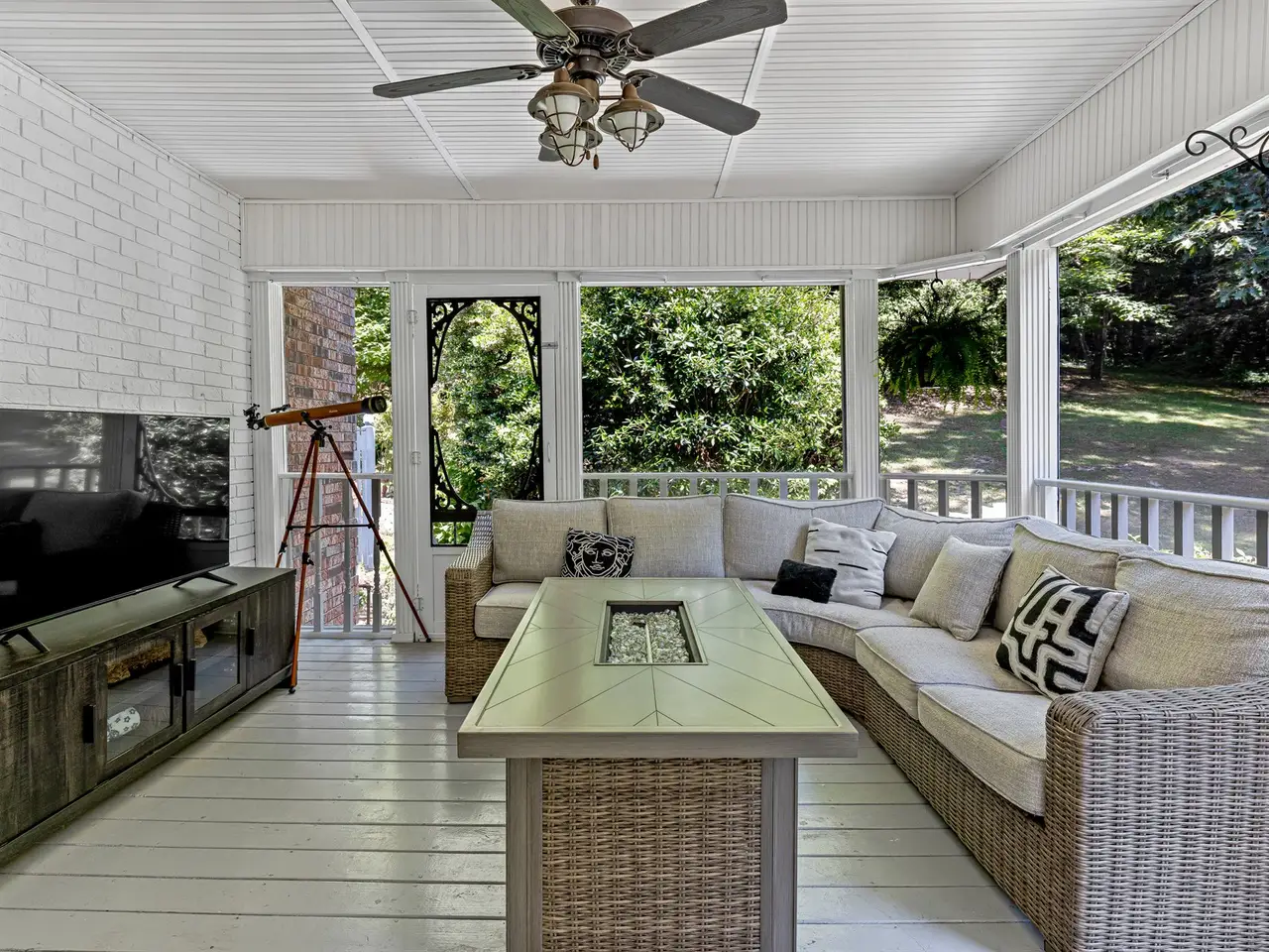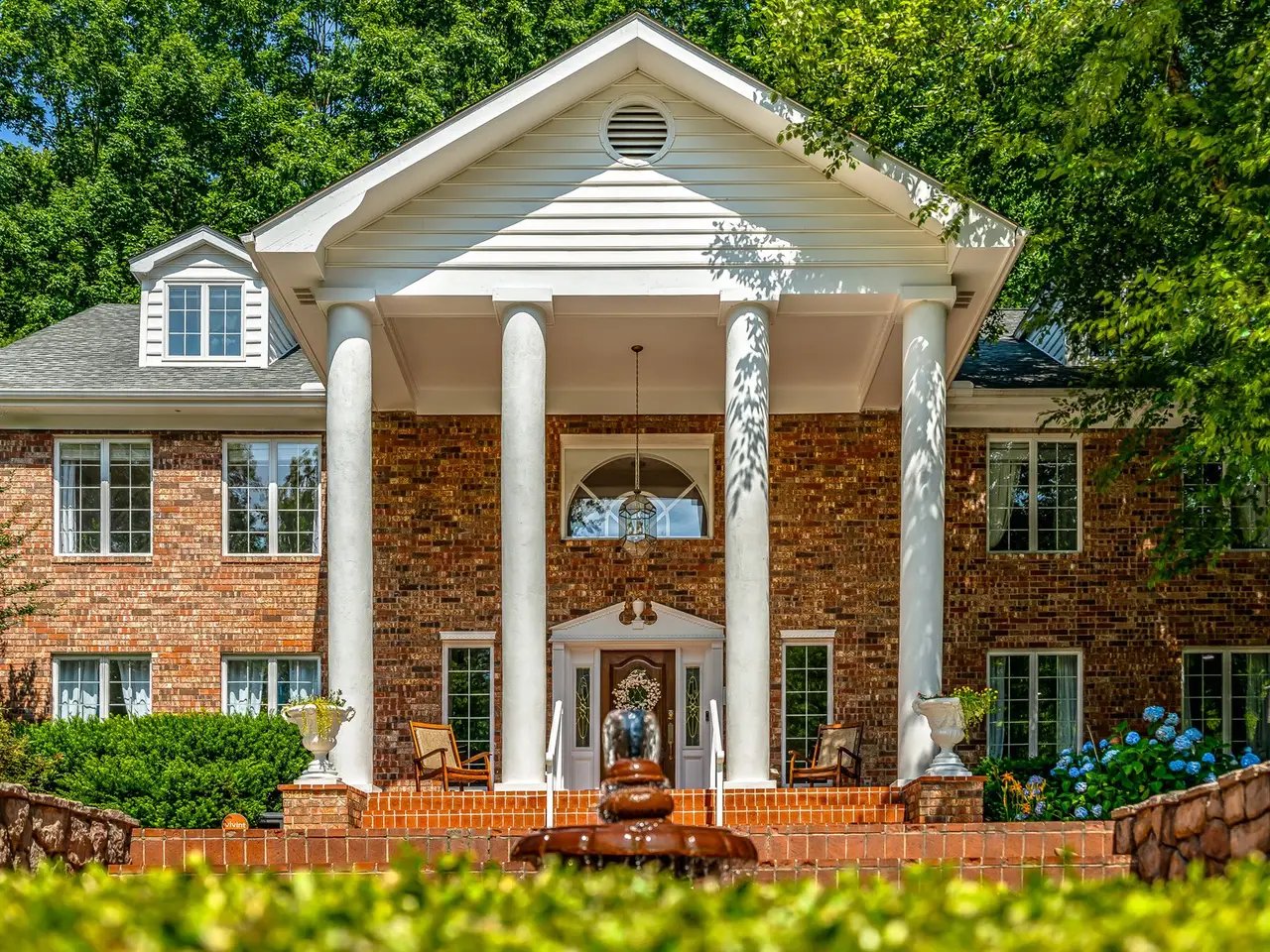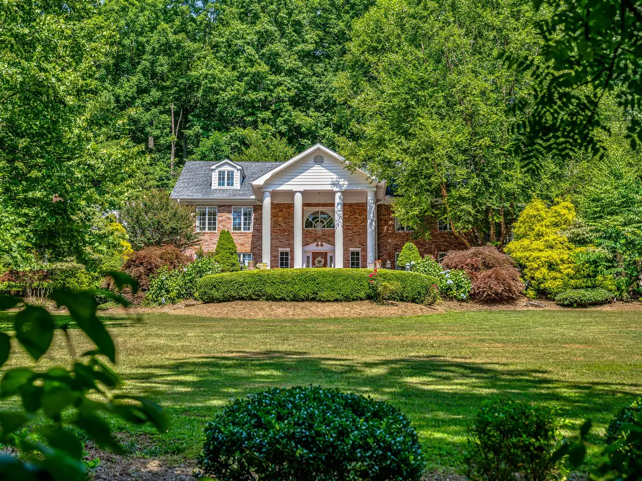 Nestled in Hendersonville, NC, this exquisitely renovated 5BD/6.5BA estate offers timeless elegance, complete privacy, and unmatched livability. Just minutes from Flat Rock, the Carl Sandburg Home, and downtown, it combines serene seclusion with easy access to local charm. Entertain in grand style beneath soaring ceilings, a sweeping staircase, and dazzling chandeliers. The gourmet kitchen features granite counters, wood floors, and new appliances. The luxurious primary suite includes walk-in closets, a sitting room, and private balcony. A screened-in porch invites you to unwind beside the wooded creek. With three fireplaces, custom bookcases, natural gas, and a 3-car garage, comfort and quality are everywhere. A circular driveway, fountain, and manicured gardens welcome you home. Set on 2.1 acres, this stunning retreat is ideal for full-time living or a luxury rental. Don't miss the chance to live beautifully in the Blue Ridge Mountains.