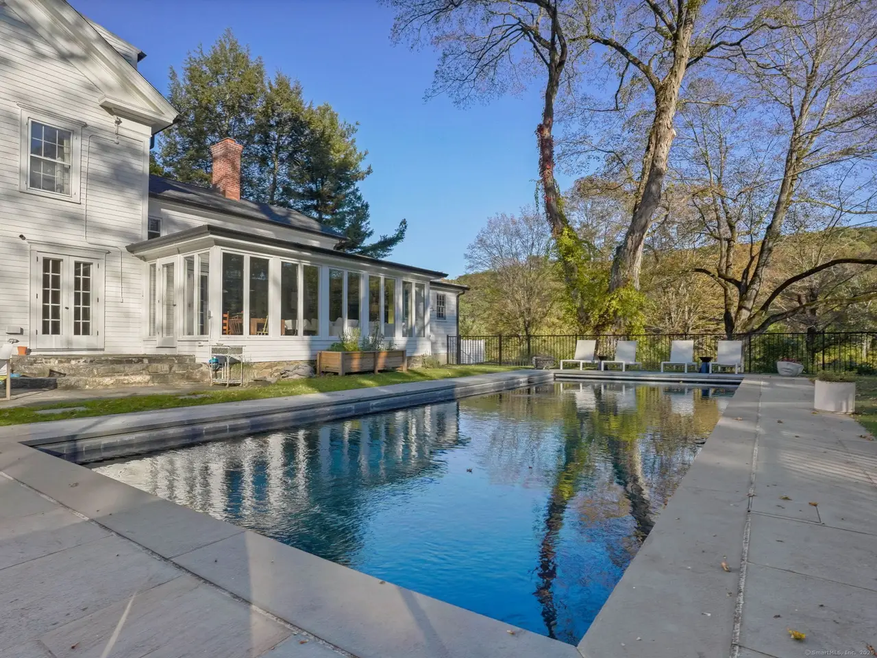 Once a beloved gathering place known as The Timber Trails Inn, this storied home now stands as a testament to time, craftsmanship, and quiet beauty. Set upon 1.4 private, level acres, it offers a sanctuary where history whispers through every beam and floorboard, and modern life unfolds in effortless harmony. All just 65 miles from NYC and lower Fairfield County destinations. Step inside, and you'll feel it immediately-the sense of grace that lingers in homes built with heart. Wide-board chestnut and white pine floors, dual staircases, and charming hidden nooks invite you to wander, to slow down, to imagine the lives that came before. The generous yet intimate flow of the main level makes it equally suited for fireside evenings or lively gatherings. At its center lies the kitchen, beautifully reimagined for today while honoring its past. Soapstone countertops, custom cabinetry, and high-end appliances meet the warmth of an original fireplace and the practicality of a walk-in laundry room. Beyond the doors, your private world awaits. A heated, in-ground saltwater Gunite pool with automatic cover and outdoor shower sits tucked among lush gardens and gentle breezes, home abuts valley pond adding a hush of serenity. Extensive upgrades have been completed, from new mechanical systems to refined details throughout, ensuring comfort in every season. With central air, steam/hot air heating, and a standby generator, every modern convenience is quietly in place.