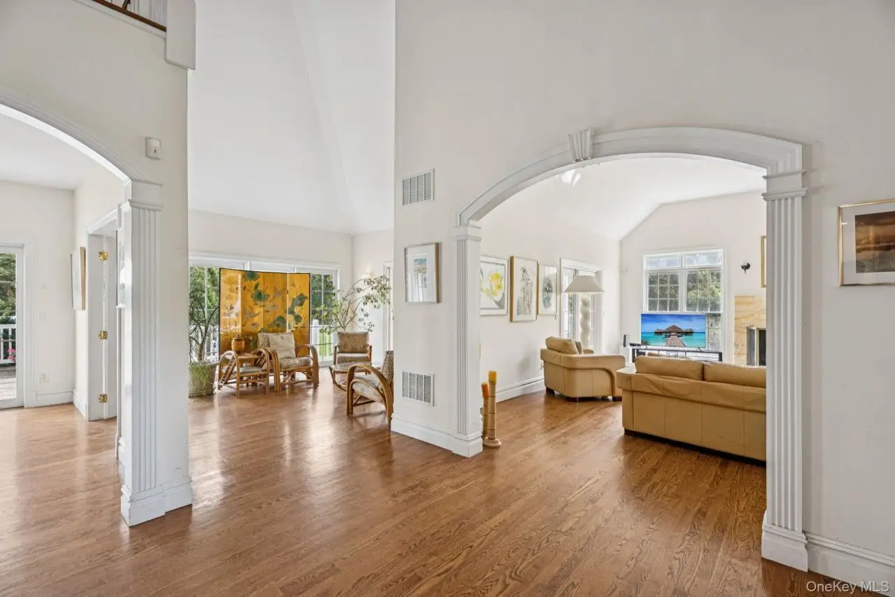 Experience the perfect harmony of sophistication and comfort in this captivating post-modern residence, where every detail has been artfully curated to elevate East End living. Comfortably set on 1.4 acres, this 3, 500-square-foot home combines architectural artistry with refined amenities. Hardwood floors extend throughout, complemented by soaring cathedral ceilings and recessed lighting that create a luminous, welcoming ambiance. Floor-to-ceiling Pella windows bathe the interiors in natural light, while expansive sliders dissolve the boundary between indoor and outdoor living. French doors provide both privacy and elegance as they open gracefully into the formal dining area, where timeless ceiling details further enhance the atmosphere of refinement. A rare focal point, the living room fireplace is encased in imported marble, striking a balance between uniqueness and grandeur. Arched passages add architectural artistry, while an additional entertainment space - complete with a surround-sound system - invites vibrancy and rhythm, allowing music and life to flow effortlessly throughout the open design. Each room is further distinguished by custom crown and base moldings, a showcase of craftsmanship at its finest. The first level presents three spacious bedrooms and two full baths, blending comfort with thoughtful design. A dedicated laundry/mudroom, complete with newer washer and dryer, enhances convenience alongside a central vacuum, a two-car attached garage, and a full walk-out basement. The chefs kitchen is both functional and striking, featuring black granite countertops, a center island, and custom cabinetry. Outfitted with a Viking stove, double oven, and new Samsung stainless steel appliances, it offers the perfect stage for culinary mastery. A sunlit breakfast nook encased in Pella windows provides a serene spot to begin the day, while the formal dining room sets an elevated stage for gatherings of every scale. Upstairs, a built-in library inspires culture and contentment, while a welcoming primary suite offers a private balcony and an additional sitting area. The ensuite bath is a true sanctuary of wellness, featuring a double vanity, an Aquatic jetted soaking tub, and an E-Steam sauna/shower designed to promote relaxation and rejuvenation. An additional upstairs bedroom provides versatility - ideal as a nursery, guest room, or private office - ensuring the home adapts gracefully to evolving lifestyles. While a classic mahogany front porch offers a gracious welcome, the backyard unfolds into a private retreat reminiscent of a landscaped park. The grounds, enriched with crepe myrtles, butterfly bushes, burning bush trees, and stately rhododendrons, are framed by PVC fencing that encloses a heated saltwater vinyl pool and inviting hot tub - providing both relaxation and recreation amidst a botanical backdrop. Whether basking in the sun or savoring tranquil evenings beneath the stars, the backyard seamlessly extends the homes aura into its natural surroundings. Beyond the property, Remsenburg offers a lifestyle unlike any otherfrom sailing at the Westhampton Yacht Squadron to sun-filled days at Pikes, Cupsogue, or Ponquogue Beach, every moment feels immersive. Whether admiring art at the historic Remsenburg Academy, enjoying live performances at the Westhampton Beach Performing Arts Center, or catching a film at the newly renovated Sunset Theater, the charm continues with local cafes, craft breweries, and the natural beauty of the Quogue Wildlife Refuge. Each day presents a new opportunity to savor coastal indulgence. Remsenburg - the hidden diamond of the East End, where elegance, community, and seamless indoor-outdoor living create a lifestyle filled with brilliance for your aspirations to shine.