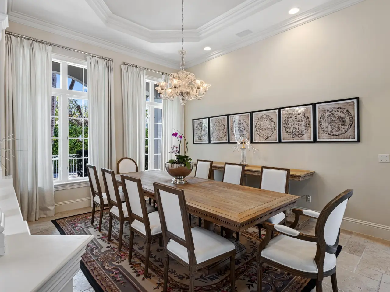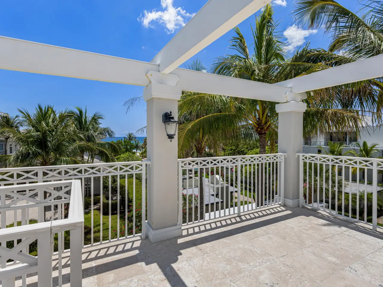 Located in a private, gated oceanfront enclave of only three homes, this elegant British West Indies-style home offers an open floor plan with large rooms and elegant interior. Unique features include third story viewing balcony, deeded beach access with a private beach pathway, formal living room and dining room, first-floor VIP bedroom, expansive balconies and large office with fireplace.
