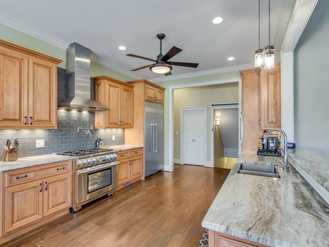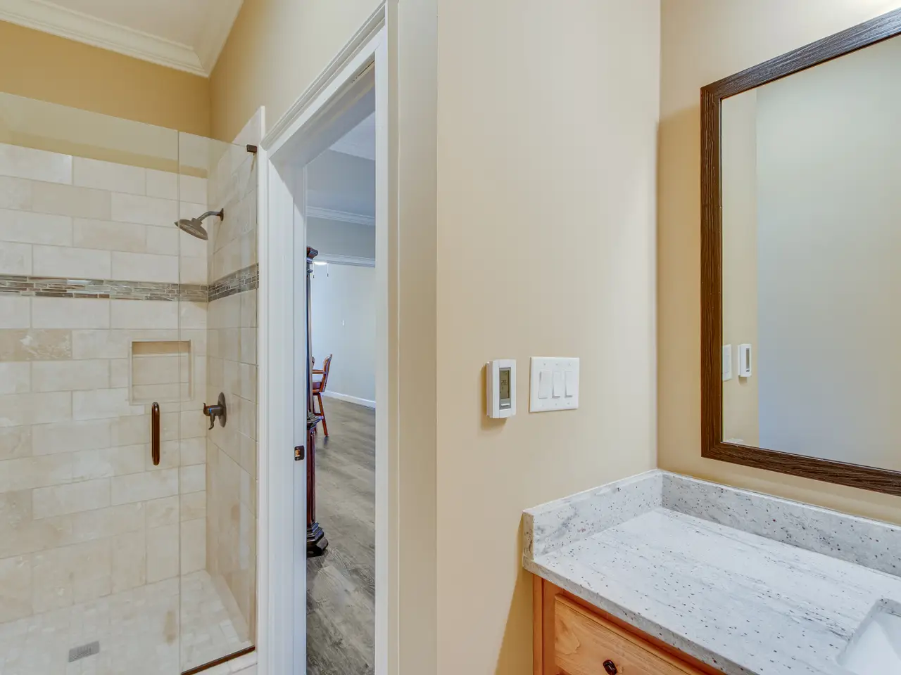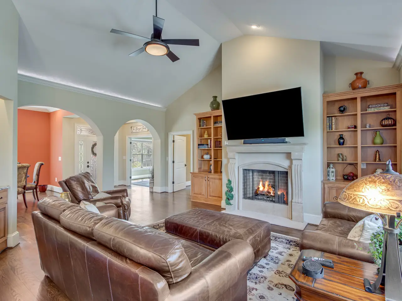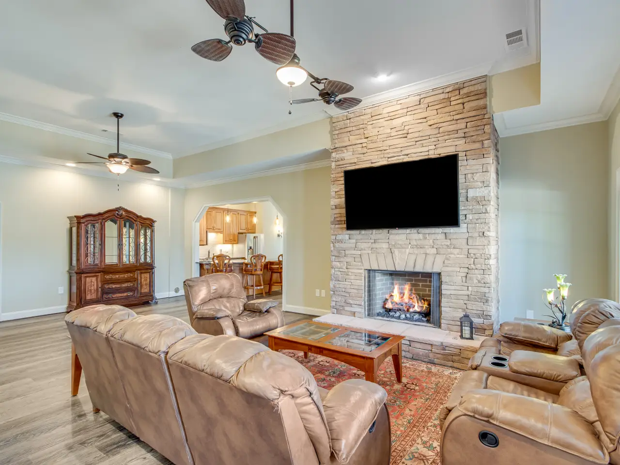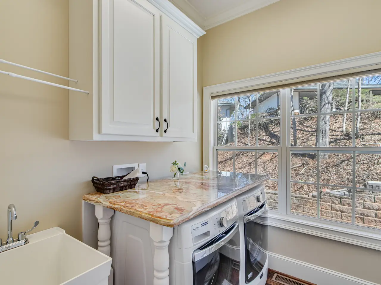 This elegant, traditional Lake Lanier home has everything you need for fine lake living! Conveniently located just 10 minutes from downtown Gainesville, The Rowing Venue, the hospital district, shopping, and restaurants, this home is designed for the ultimate lakefront lifestyle. With stunning lake views from most rooms, it also features a paved path leading to a single-slip party dock in deep, calm, no-wake waters-perfect for lounging and swimming. Situated on a double lot with a low CORPS line, the property offers a circular driveway and abundant parking, along with a drive-around access to the lower-level double garage-ideal for a golf cart, boat toys, a workshop, and extra storage. Inside, the main floor boasts an open layout with all hardwood floors. The great room, featuring a striking stone wood-burning fireplace, flows seamlessly into the kitchen, which includes granite countertops, a double gas range, and high-end Thermador appliances. A dining room and a study/office complete this space. The oversized primary suite is a true retreat, featuring a sitting area, double custom closets (one with a double-stack washer/dryer), heated travertine tile floors, a jacuzzi tub, a spacious shower, and double granite vanities. Additionally, the main level includes a second ensuite bedroom, a powder room, and a large laundry room. Upstairs, you'll find a guest bedroom, a full bath, and a large bonus room over the garage. The beautifully finished terrace level, completed in 2015, offers luxury vinyl flooring, a family room with a second stone wood-burning fireplace, a full kitchen with all appliances, a dining area, a large game room, a full guest bath, and an ensuite with its own private bath-perfect for entertaining or multi-generational living. Every bathroom is equipped with heated travertine tile floors, and the home features only hardwood and luxury vinyl flooring-no carpet. This exceptional Lake Lanier property combines elegance, functionality, and the best in lakeside living!