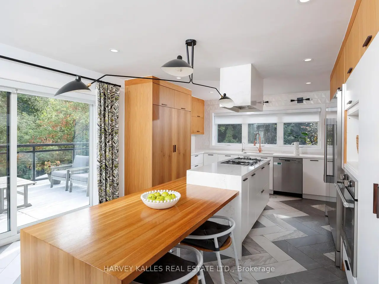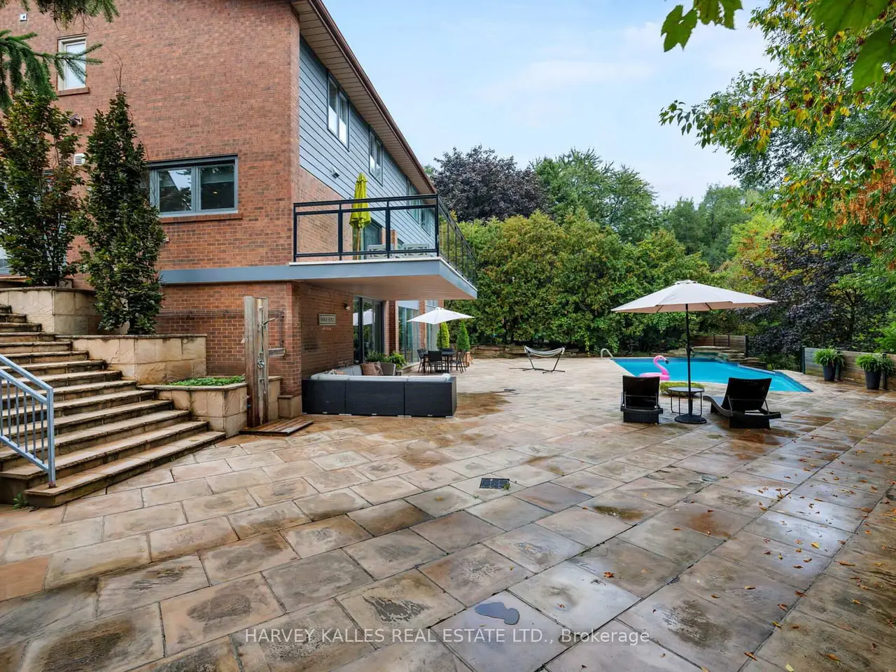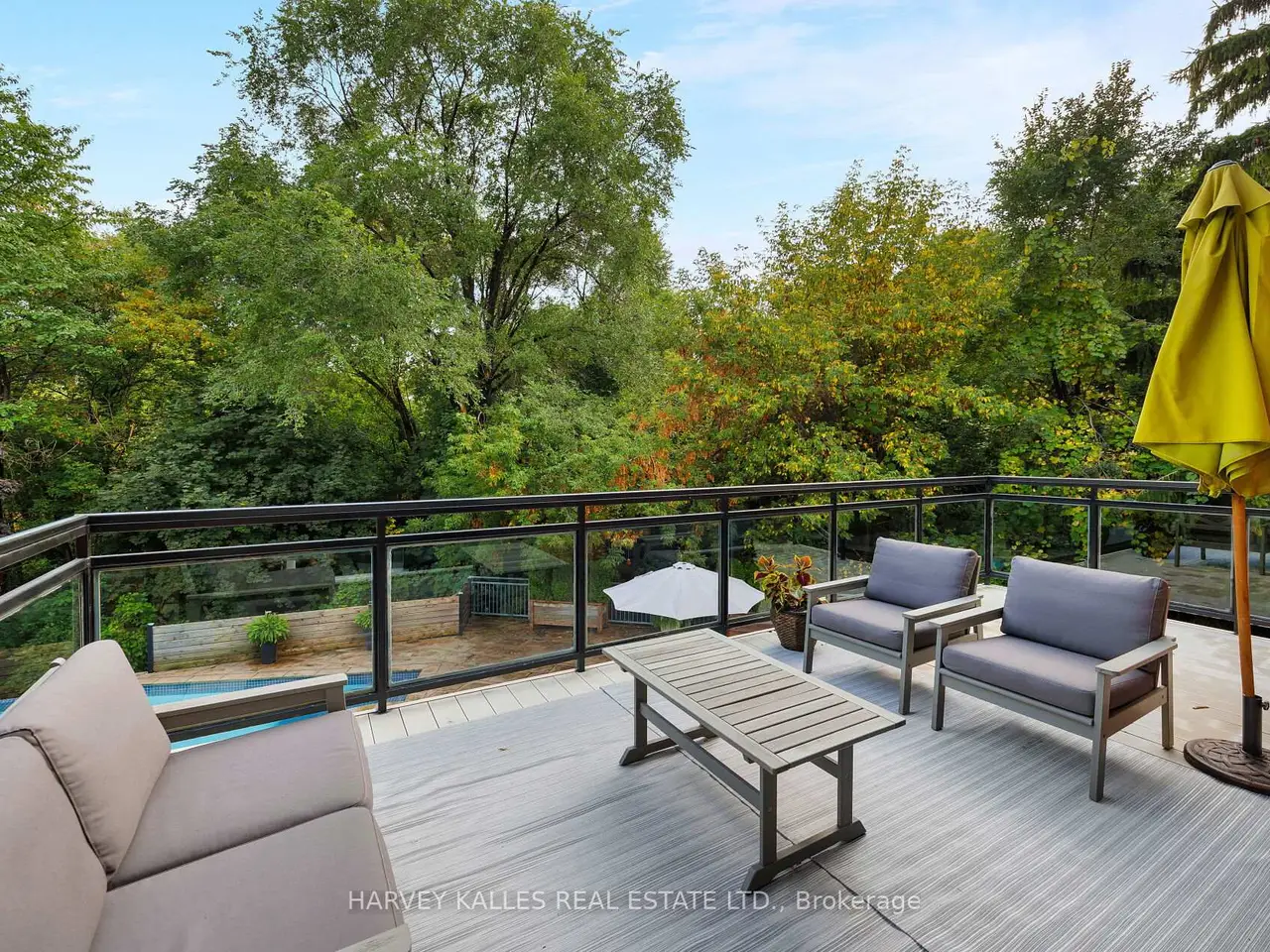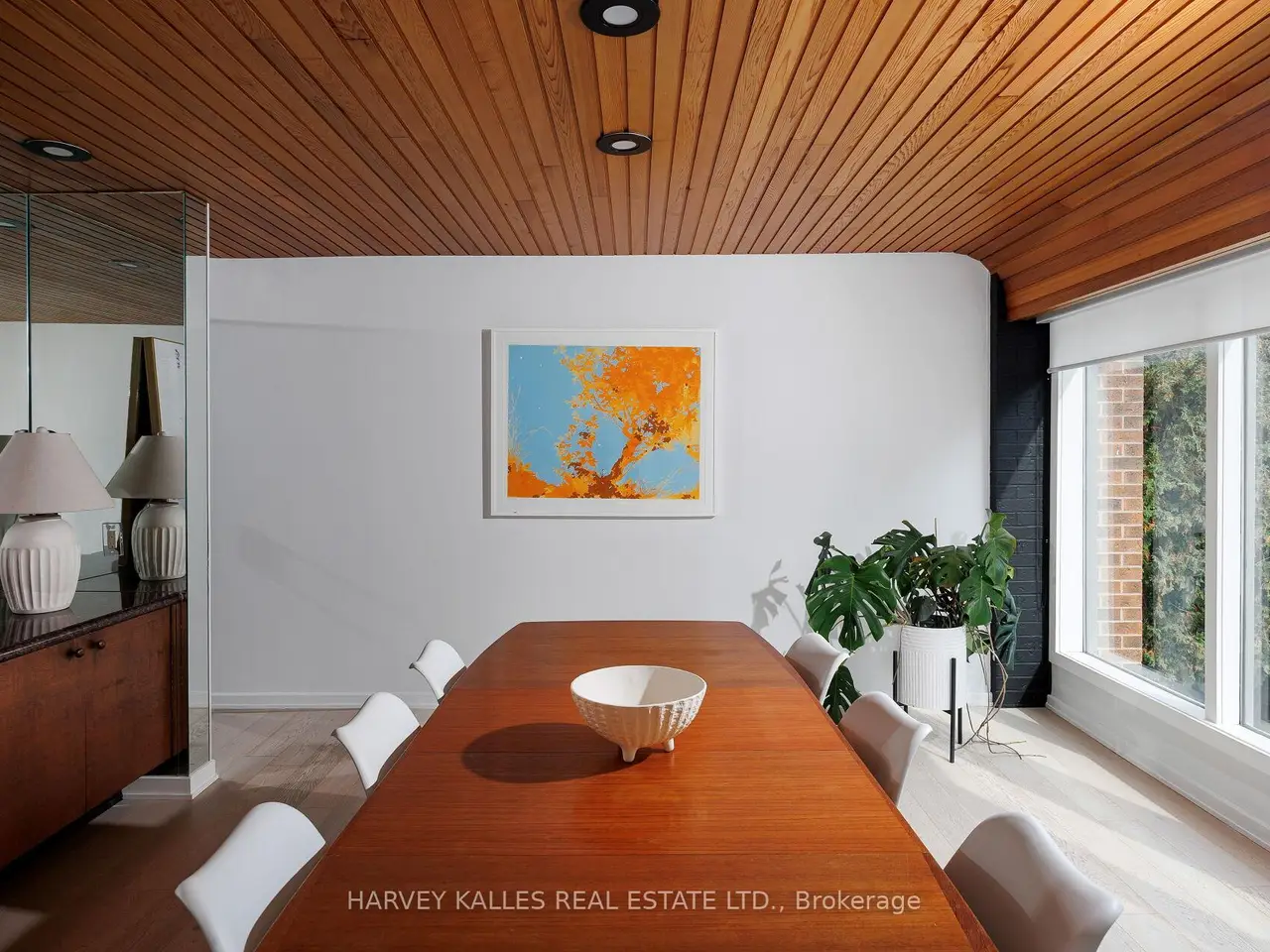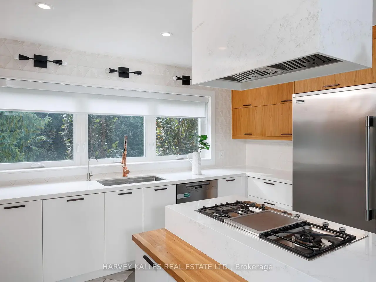 Say yes to the absolute best; this Markland Wood mid-century modern home is the pinnacle of style and comfort with unique details and a timeless aesthetic. Modern living and beautiful mid-century modern architecture? Check! Close to every amenity imaginable? You've got it! A beautiful backyard paradise on a ravine lot and an inground pool that makes you feel like you're on a tropical vacation every day, all day? Naturally. A brand-new mud room with direct access to the garage and side entrance? Oddly specific ask, maybe but yes, that too! Your new dream house offers so many perks that you may never need to board an airplane again. Designed by Award Winning Architect, Anthony Ferracuti (Global Architects), this 4+1 bedrooms, 3.5 bathrooms, plus a half bath home provides room to spare. The eat-in kitchen comes with professional-grade Frigidaire and Miele appliances, while a walkout basement makes entertaining a breeze, with its own kitchen, dining area, lounge spaces and sauna. Community features include Neilson Park Creative Centre, Markland Woods Golf Club, and walking/bike trails along the Etobicoke Creek Ravine (and CF Sherway Gardens, of course!) The home is also in the catchment area of top-rated schools, including St. Clement Catholic School. With an oversized pie-shaped lot, opportunities for outdoor enjoyment open up. This home was made for making memories. With an expansive primary bedroom complete with its own sitting area and a four-piece ensuite, it's hard to pick a favourite feature in this glorious oasis. This is your perfect home for everyday luxury.
