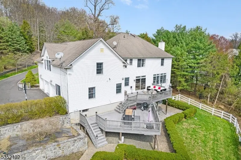 Discover timeless elegance in this breathtaking 4,039 sq ft Custom Colonial, nestled on a serene cul-de-sac in the prestigious Beacon Hill neighborhood of Chester Township, NJ. This 13-room masterpiece offers 5 spacious bedrooms, including a discreet 1st-floor suite with full bath, perfect for guests, and 4.5 luxurious bathrooms. Step inside to find rich custom moldings, stylish lighting, soaring volume ceilings, abundant closet space, and gleaming hardwood floors throughout. The inviting gas fireplace adds warmth to the open, airy floor plan, ideal for both everyday living and grand entertaining. The sprawling finished lower level, complete with a full bath and walkout access, provides endless possibilities for recreation or relaxation. Outside, enjoy a resort-like lifestyle with a sparkling heated in-ground saltwater pool, a private tennis court, and expansive composite deck and patio areas perfect for al fresco dining or lavish gatherings. The 3-car attached garage with gated driveway offers ample parking, while night accent lighting and an underground sprinkler system enhance the home's impeccable curb appeal. Set on a private, picturesque lot, this showcase property is just minutes from the charming, historic Chester town center. Mendham High School is renowned for its International Baccalaureate (IB) program. Don't miss this rare opportunity to own a luxurious retreat in one of Chester's most coveted neighborhoods!