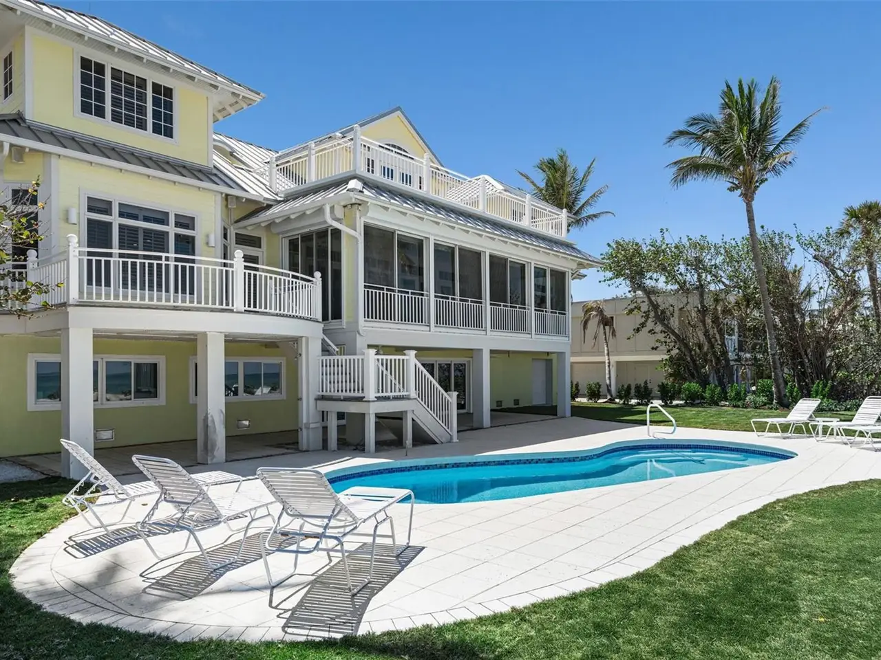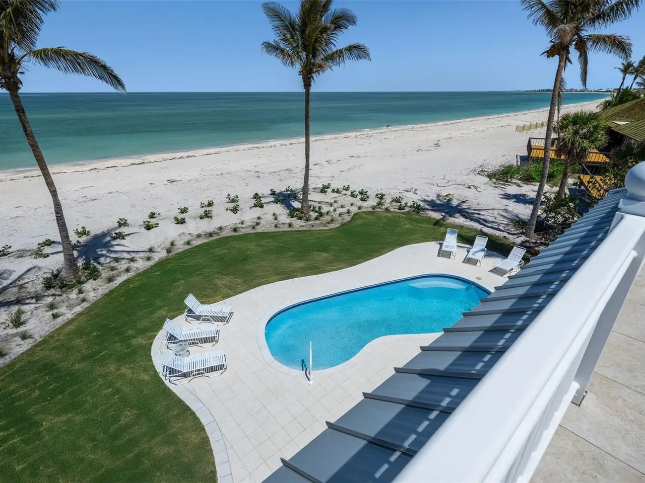 Welcome to a truly exceptional retreat, nestled perfectly between Charlotte Harbor and the pristine shores of the Gulf of Mexico. This stunning Gulf-front residence epitomizes coastal living, offering a seamless blend of traditional elegance, modern sophistication and communion with Boca Grande's Old Florida lifestyle. The generous 1.16- acre lot which includes ownership of the adjacent eastern lagoon is situated on one of the Islands premier private roads improved with only gulf front homes and exclusive beach access. This traditional coastal-style residence is complete with 5 bedrooms and 6.5 baths and its custom construction is a true masterpiece of design and craftsmanship. The spacious and open floorplan provides breathtaking Gulf or Harbor vistas from almost every room and all three levels of the residence are accessible by stairs or elevator which are in close proximity to both garage facilities. The gourmet kitchen is beautifully outfitted with custom wood cabinets, twin Sub-Zero refrigerators, Sub-Zero beverage drawers, Wolf cooktop, double ovens and a multitude of fine custom finishes. The main living floor also includes a luxurious primary bedroom with separate dual baths, large custom closet and direct access to an elegant den/office. The second living level includes three generously sized guest suites, each with their own bath, as well as a second laundry room, a study, and a comfortable living room with gorgeous waterfront porches. The residence enjoys a refined aesthetic complete with beautiful hardwood floors, smooth drywall finishes, faux painting, custom built-ins and beautiful wood moldings all of which are enhanced by the properties whole house Lutron lighting system. The grounds are beautifully landscaped and highlighted by an in-ground pool and private beach access. This stunning outdoor oasis is perfect for serene quiet time, family gatherings and entertaining friends. This Boca Grande gem is more than just a home; it's a lifestyle. With its prime location, stunning views, and unparalleled craftsmanship, this beachfront estate presents a singular opportunity to own a truly exceptional piece of Gulf Coast luxury.