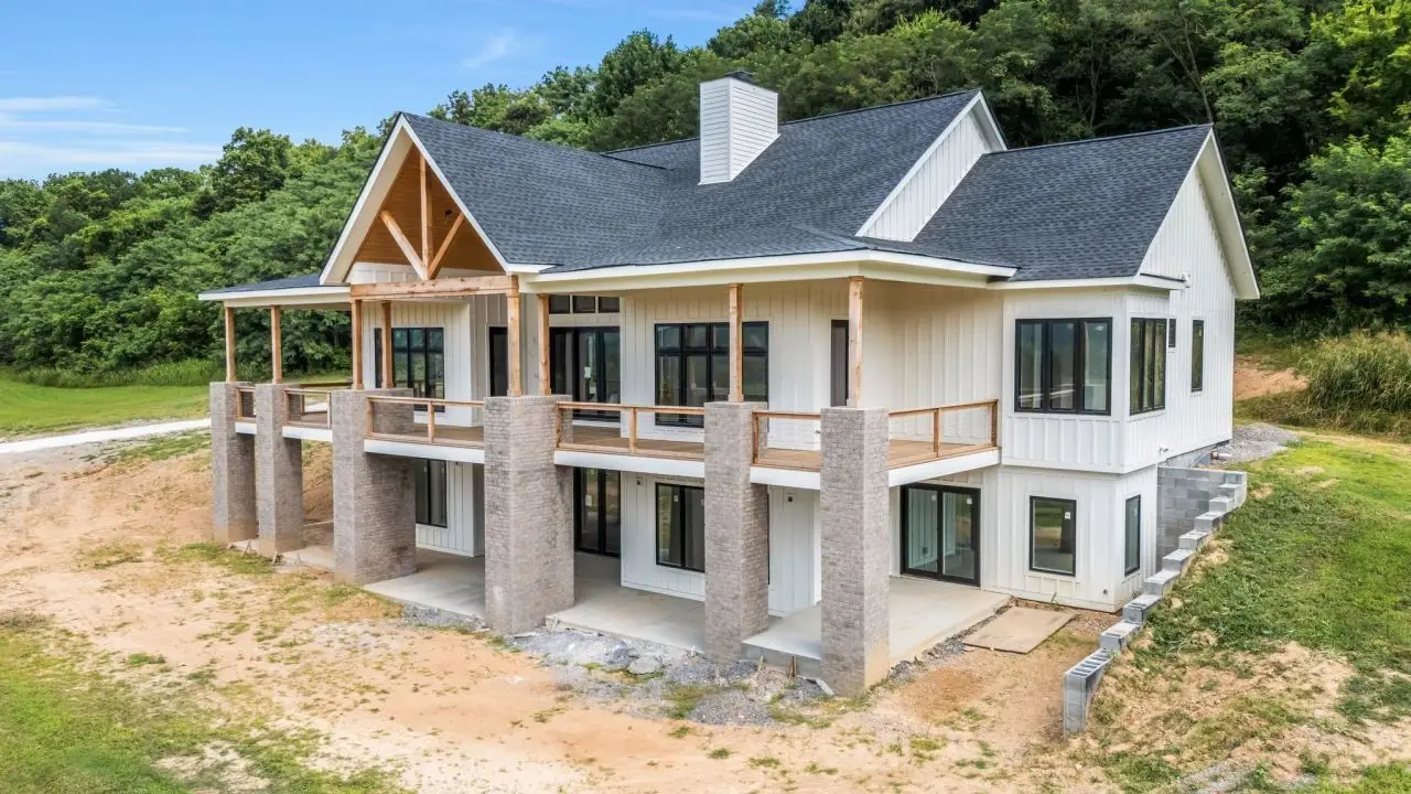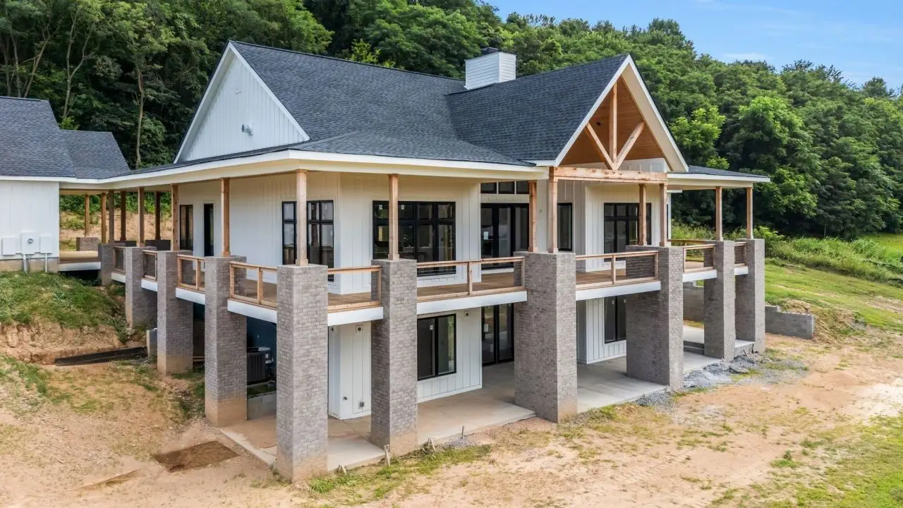 Soak in the expansive and serene views from over 2100 square feet of covered wrap around deck - Sitting on almost 9 acres, this amazing home is perched at the top of a hill taking advantage of the country setting and rolling hills of Thompsons Station - Conveniently located 10 minutes from downtown Franklin and 5 minutes from Interstate 840, you can experience the stillness and seclusion of the landscape while being only a short drive from all your desired amenities - Per most recent bank inspection, home is 78% complete, giving you the opportunity to add your own finishing touches - Thanks!