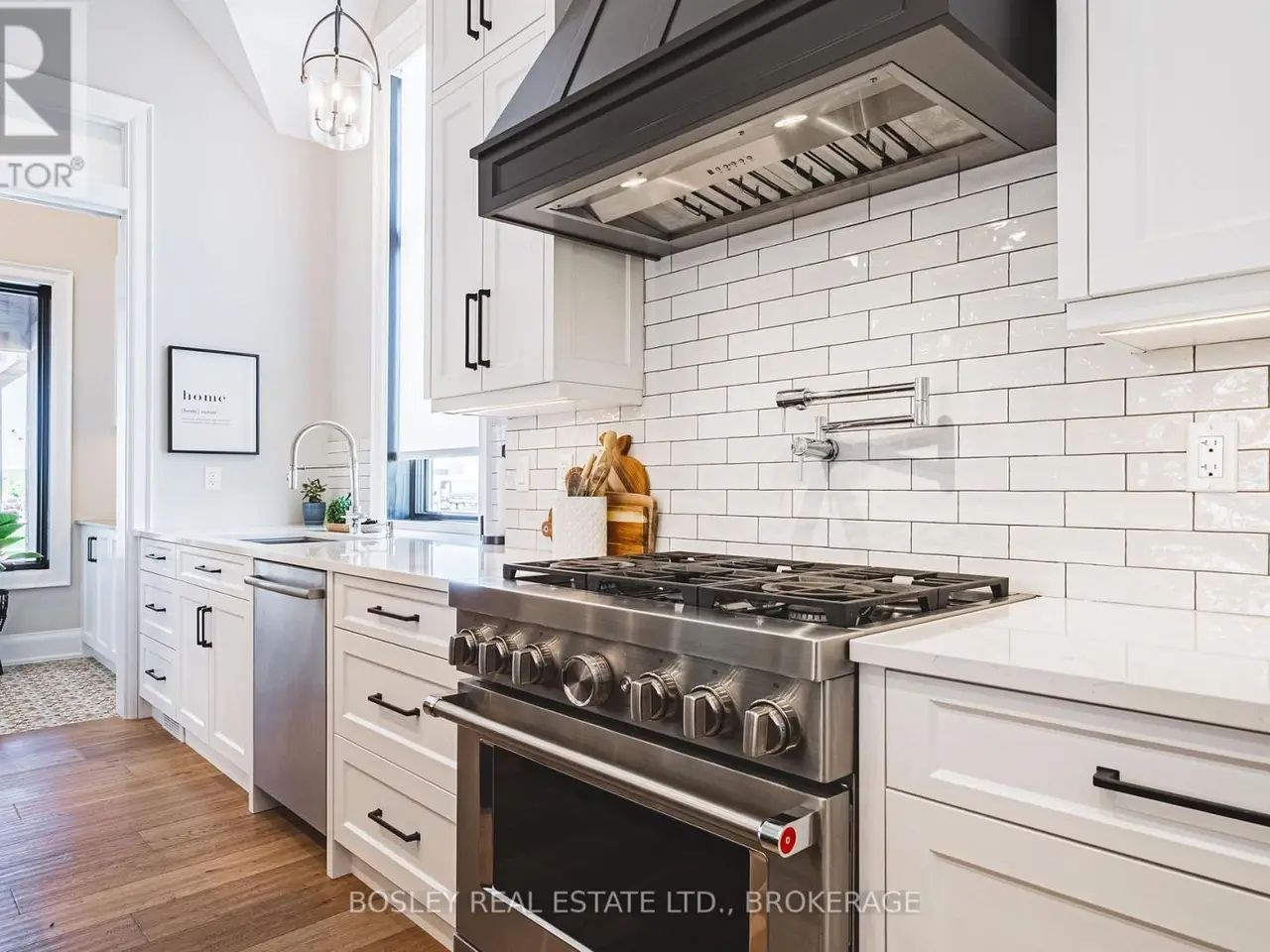 Discover 110 Millpond Road, a stunning custom-designed bungalow built by Ridgeline Homes, one of Niagara's local boutique builders. Located in the charming Village of St. David's, Niagara-on-the-Lake, surrounded by award-winning wineries, restaurants, and golf courses, all just minutes from Highway 405. The property features professional landscaping, hardscaping and irrigation system, plus a double-wide aggregate driveway and elegant stone walkways leading to multiple tranquil sitting terraces perfect for relaxation. Inside, the open-concept kitchen, living, and dining room is simply breathtaking. The gourmet kitchen boasts custom cabinetry, a massive island, and a stylish butler's pantry. The living room features a gas fireplace with modern mantle surround, while the inviting dining area is ideal for hosting large gatherings. The attention to detail throughout this home is remarkable. Impressive ceiling heights, unique architectural angles and arches, expansive windows flood every space with natural light, creating an airy and sophisticated ambiance. The primary bedroom is a serene retreat with a spacious walk-in closet and a luxurious five-piece ensuite bath, including in-floor heating, a custom double-sink vanity, a deep soaker tub, and a spacious walk-in glass shower. The equally gorgeous second bedroom features vaulted ceilings and warm hardwood flooring, along with a convenient three-piece ensuite privilege bath. The main floor is completed by a highly functional mudroom with ample custom cabinetry and a well-designed laundry room. The lower level is unfinished but fully insulated, offering a fantastic opportunity to create an additional living space of your own creation.