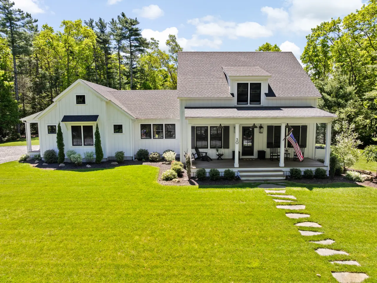 This bespoke 2019 Modern Farmhouse, built by renowned Lars V. Olson Fine Homebuilding, blends timeless elegance with cutting-edge craftsmanship. With designer interiors, the open-concept floor plan boasts a chef’s kitchen, dramatic great room, wet bar, and butler’s pantry. The main-level primary suite is a serene retreat with spa-style bath and custom walk-in closet. Upstairs offers 3 spacious bedrooms, a luxe full bath, and reading loft. The fully finished lower level includes a high-end media room, fitness studio, and full bath. Set on 1+ acre of manicured grounds with irrigation and outdoor shower, this exclusive residence includes access to a private clubhouse, dock, and boat ramp with direct access to sparkling Aucoot Cove.